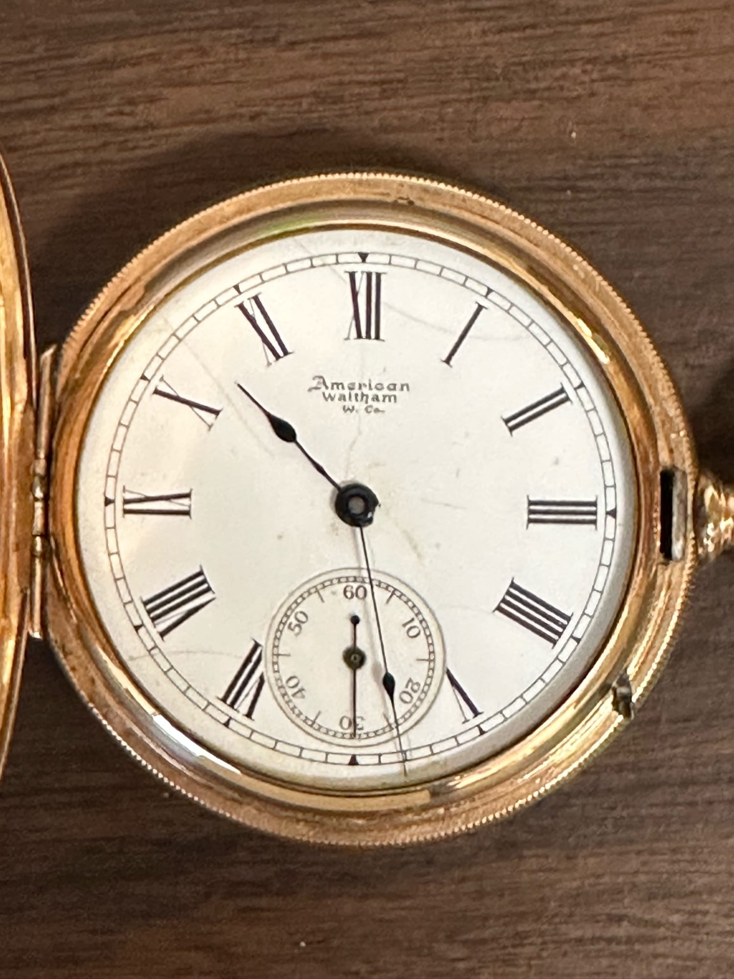 41 American Waltham W-Co Pocket-watch missing glass gold plated