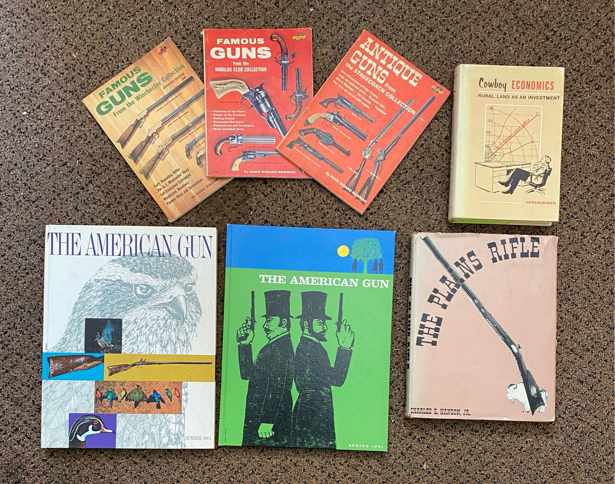 68 4 hardback books and 3 paperback books on Antique Guns, Famous Guns, Cowboy Economics, The American Gun, The Plains Rifle