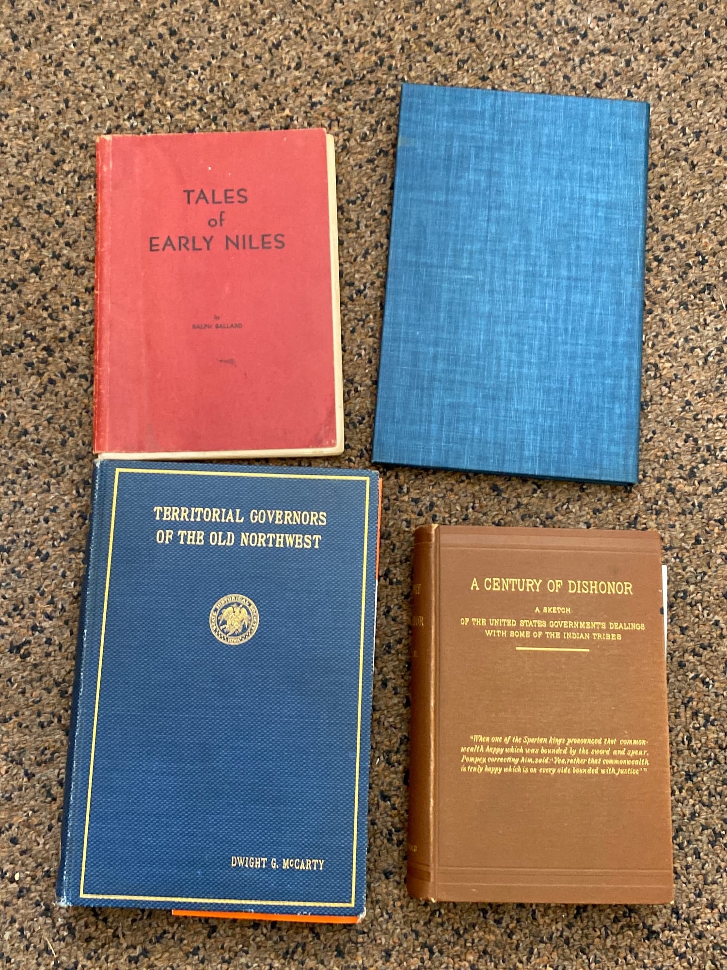 71 3 Hardback and 1 Paperback Book-Territorial Governors of the Old Northwest, Tales of Early Niles, Temovr Indians Westward, A Century of Dishonor