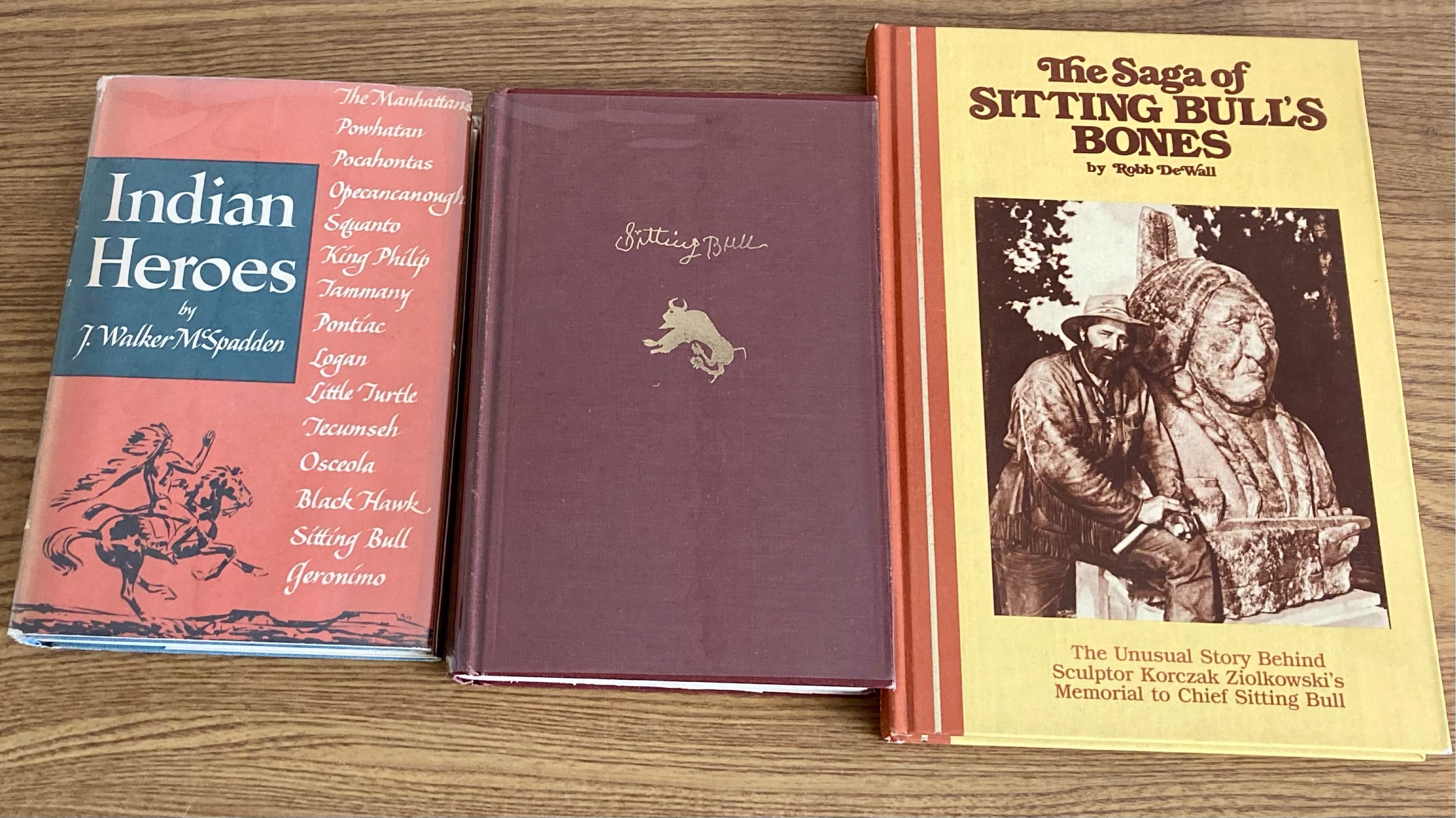 80 3 Hardback books- Indian Heroes by J.Walker McSpadden,Sitting Bull, The Saga Of Sitting Bull’s Bones by Robb DeWall