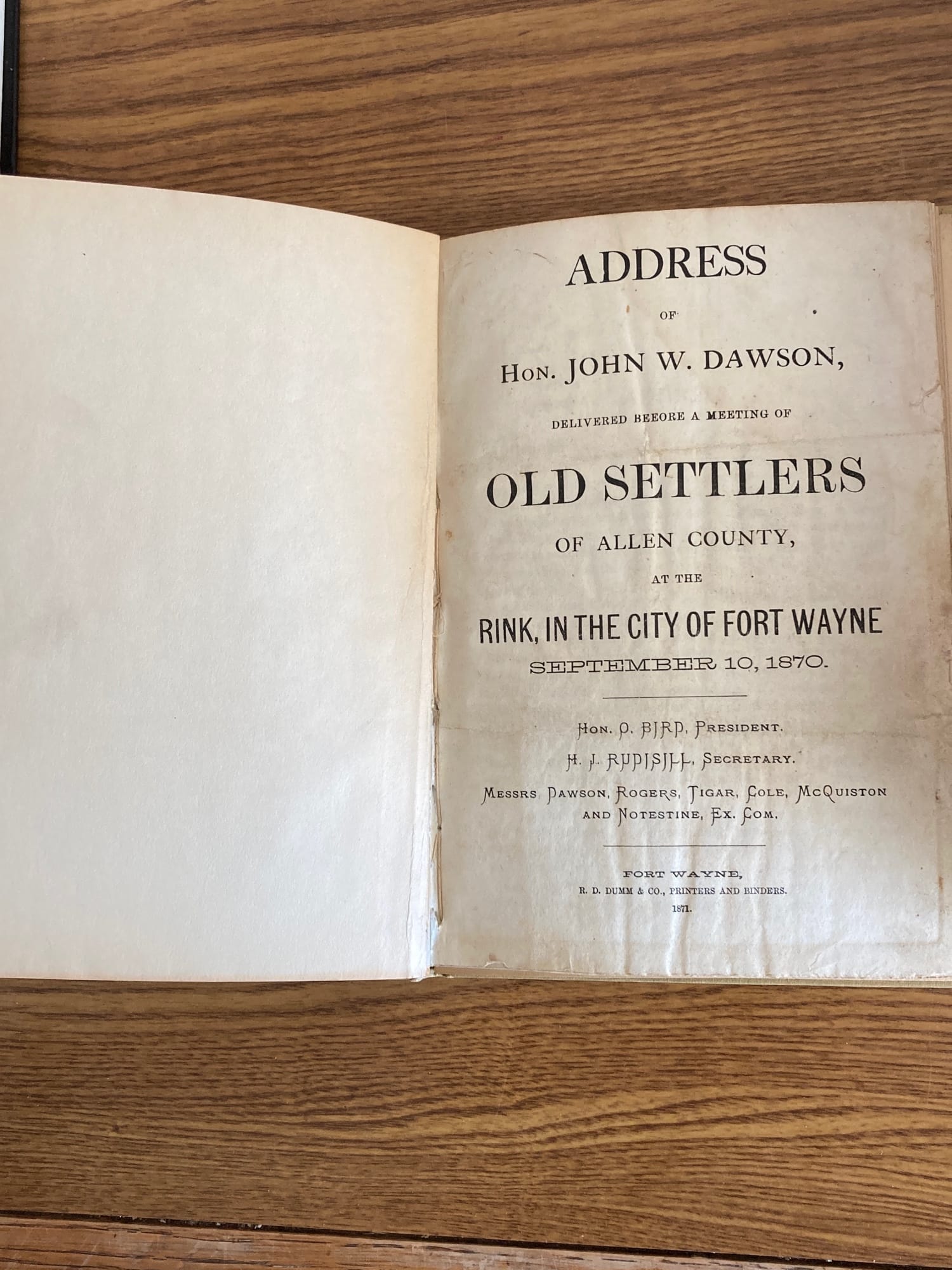 84 3 Hardback Books- Dawson Address To Old Settlers Ft Of Synergy 1871,History of Indiana from 1816-1856, Forked Tongues and Broken Treaties