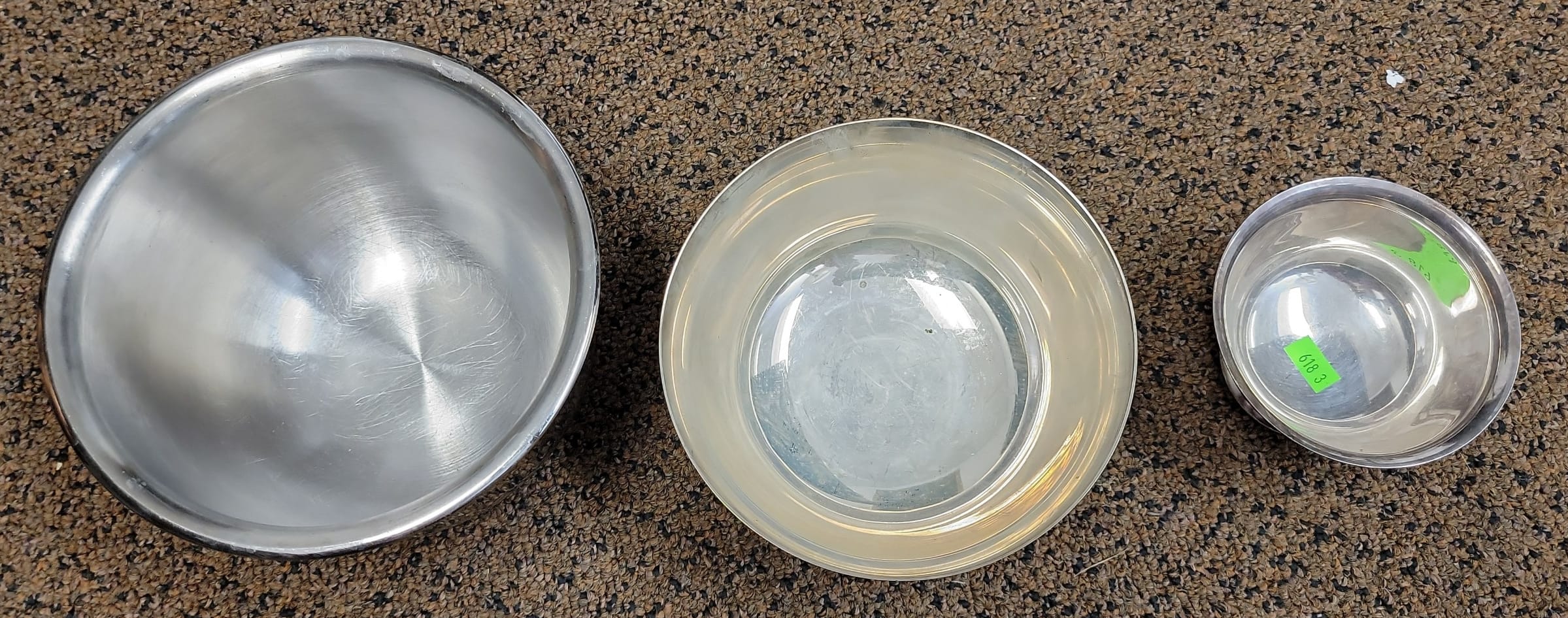 618 3 Poodle Silver plate bowls, 4"H x 6.5" D, 3.5"H x 6" D, 2"H x 4"D