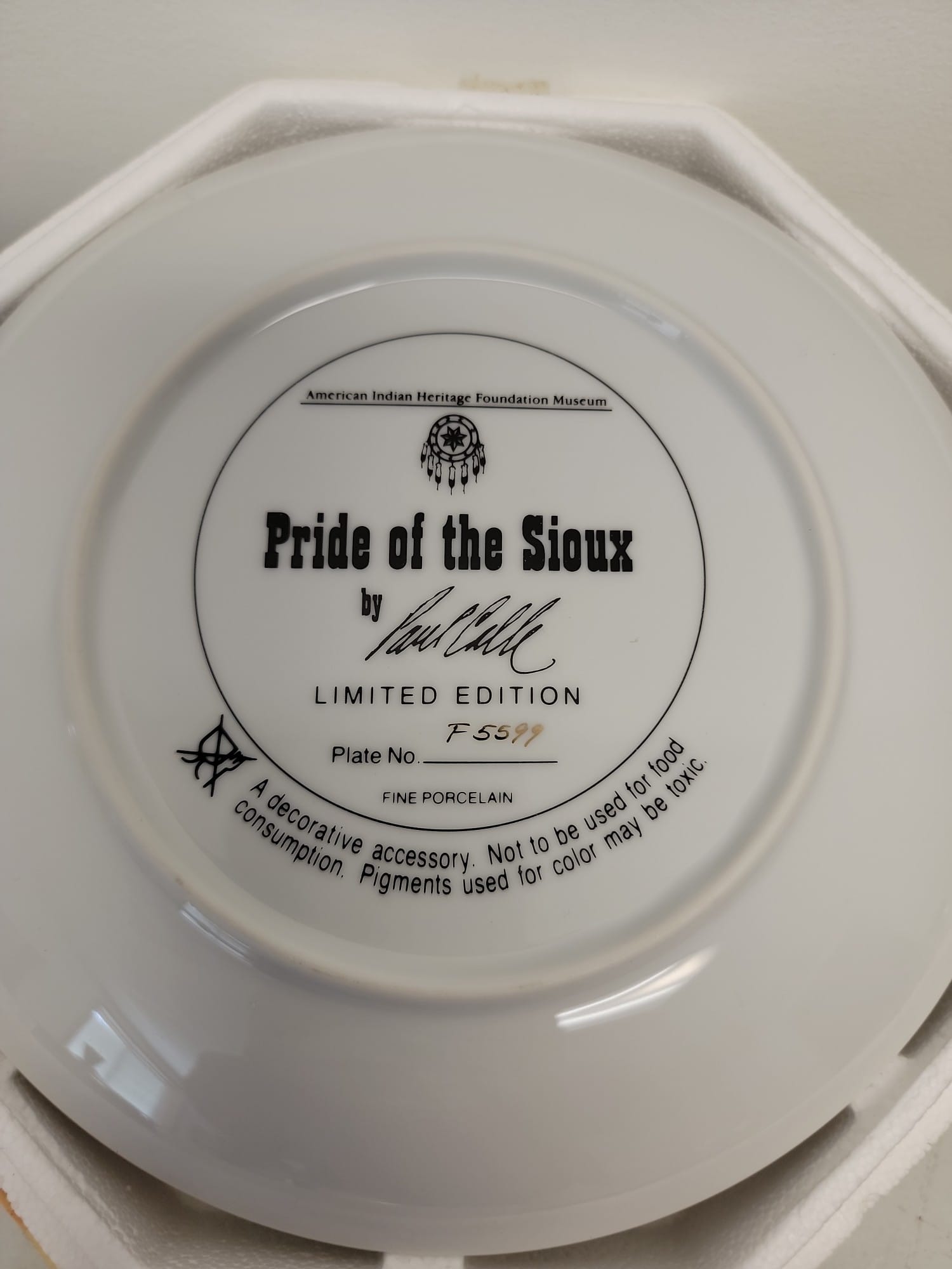 620 Franklin Mint American Indian Heritage Foundation Museum "Pride of the Sioux" plate 8"D