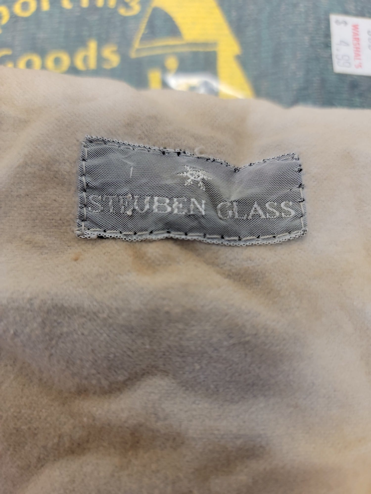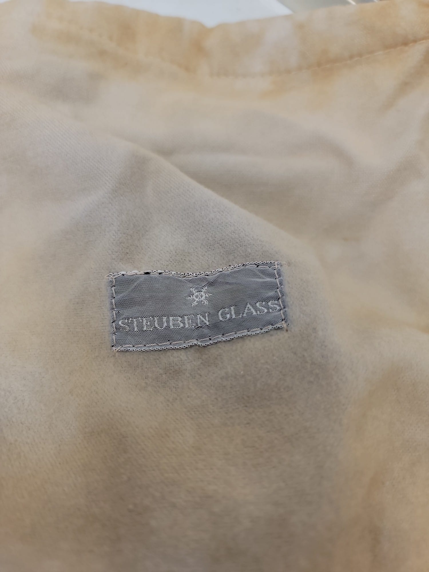 631 Steuben Glass Bowl, 7.5"H x 10"L x 8"W with cloth cover