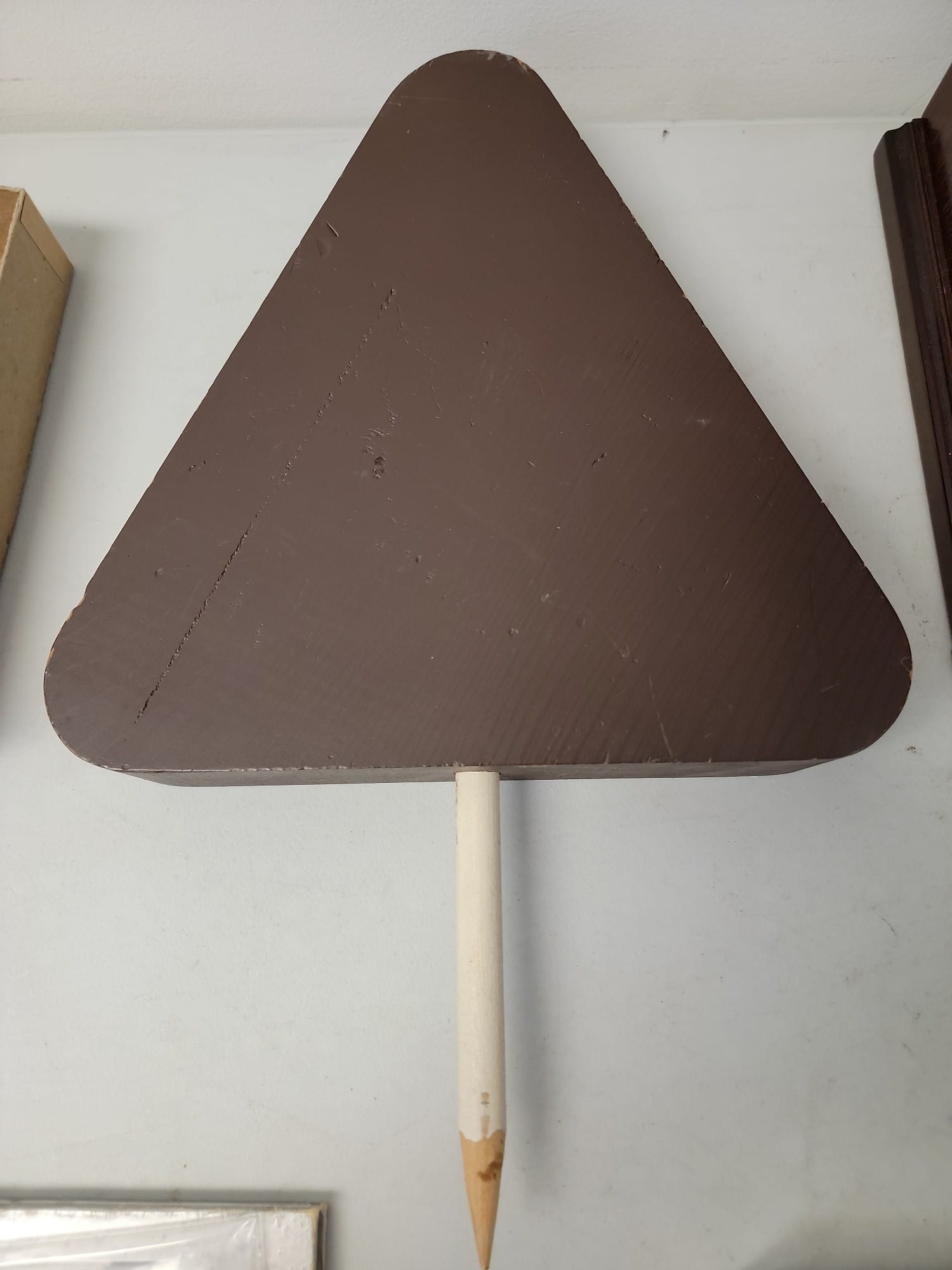 637 1969 U.S. Open wooden lawn sign, 9.5" triangle, 1.75" Deep,