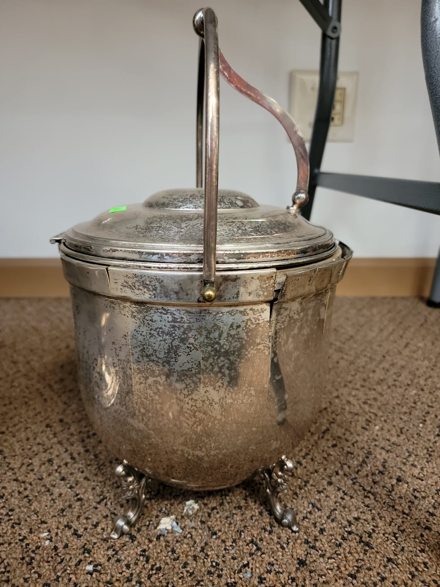 647 Silver Plated Ice Bucket, cracked, 9"H x 9"Diameter