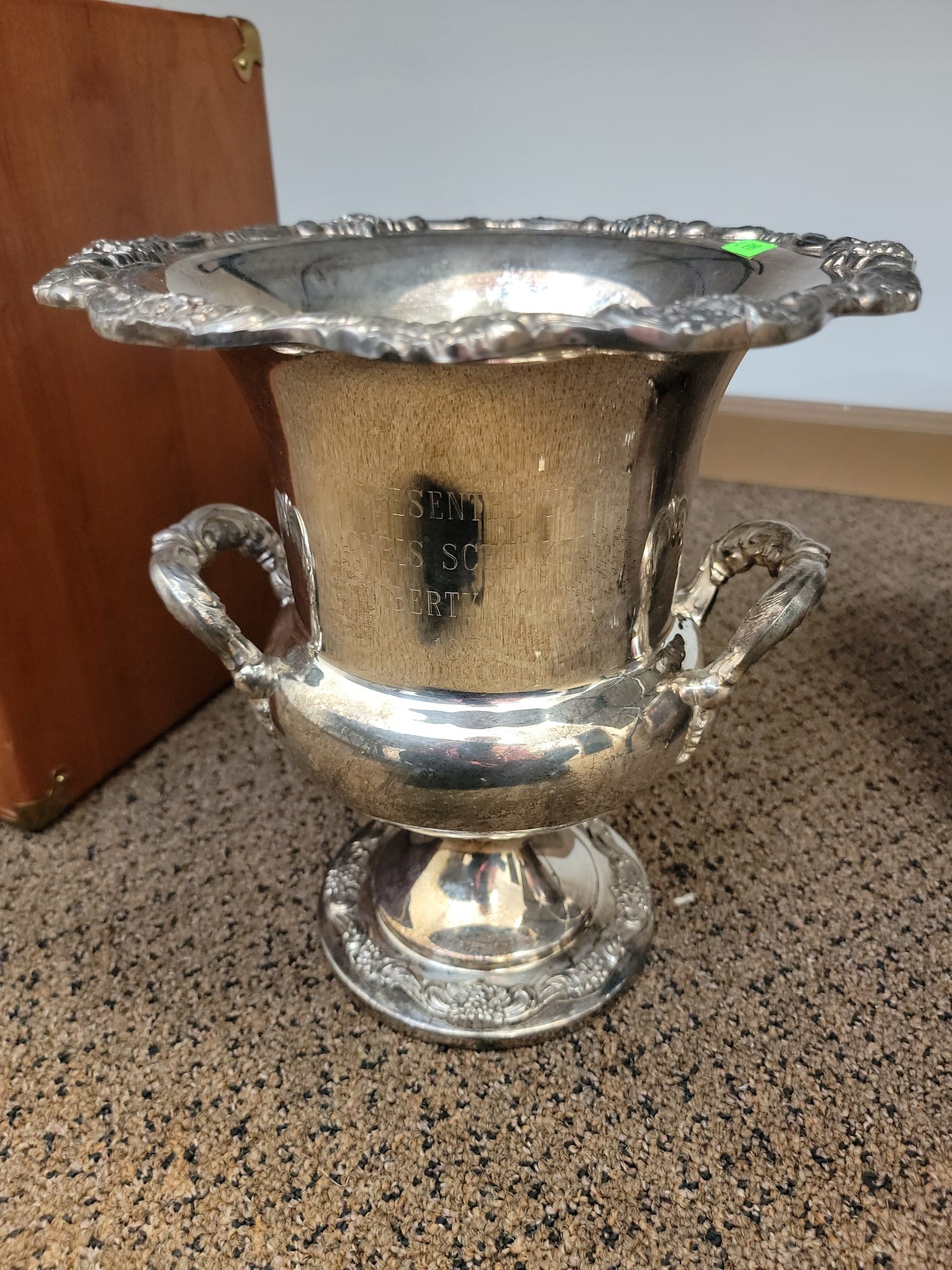 648 Chris Schenkel Liberty Bowl Trophy 1973, Silver Plated, 11"H x 10" Diameter, Engraved