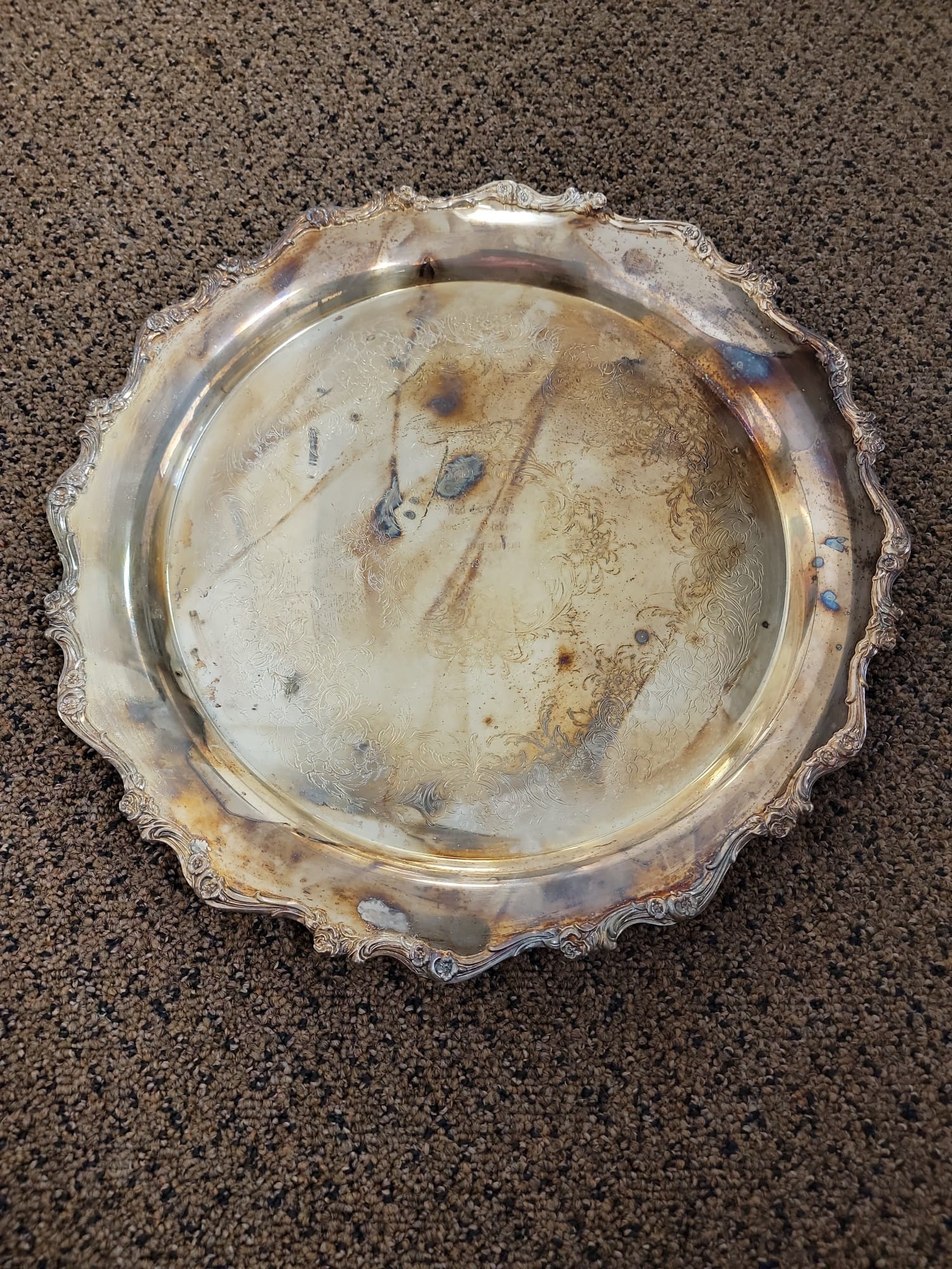 724 Webster Wilson International Silver Co. American Rose Engraved Tray "Mad Anthony's Hoosier Celebrity Golf Tournament 1969" 15 in. Diameter