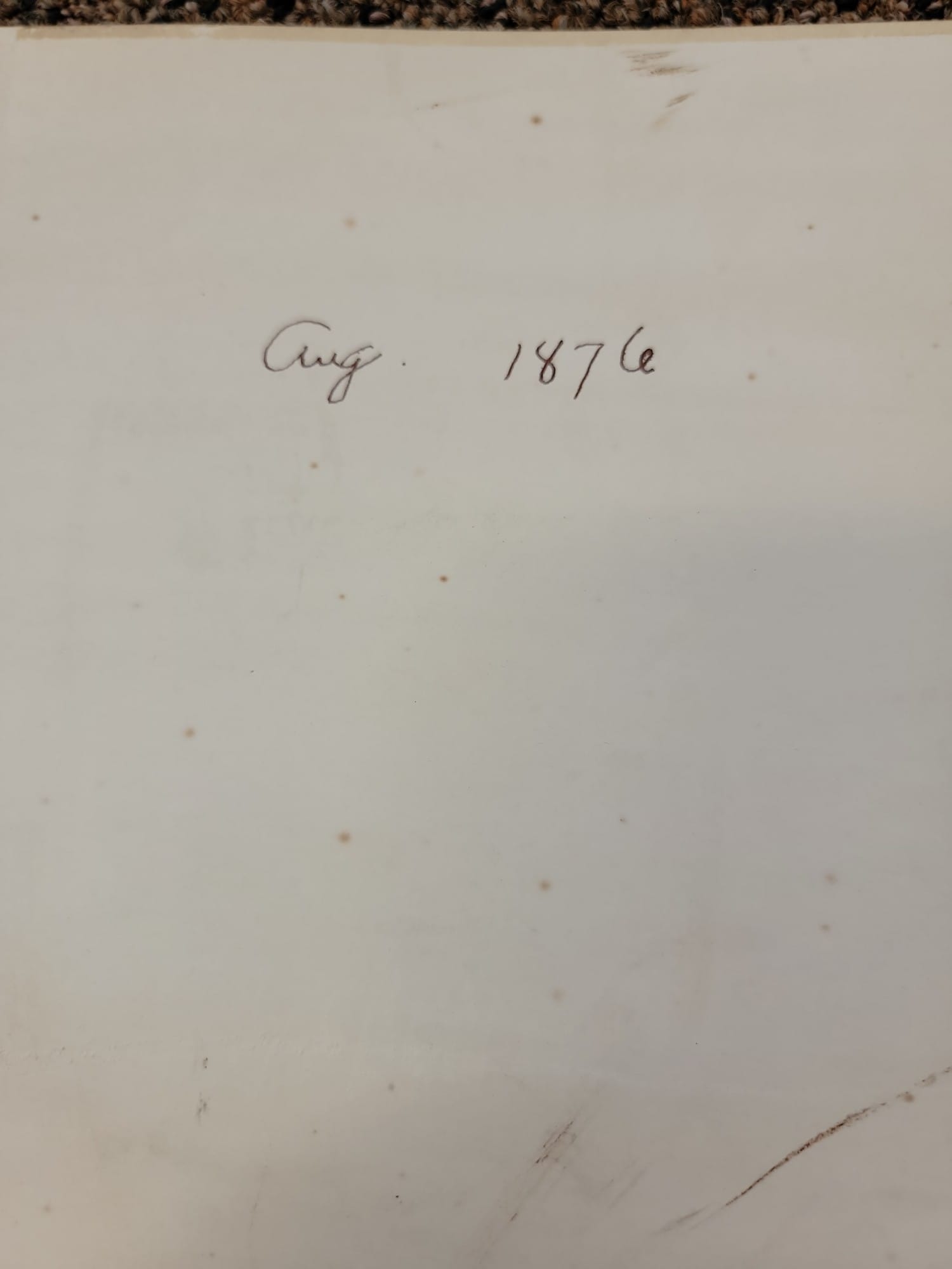 805 August 1876 photo with detached mat, 10.5" x 11" cracked photo with 16" x 20" mat