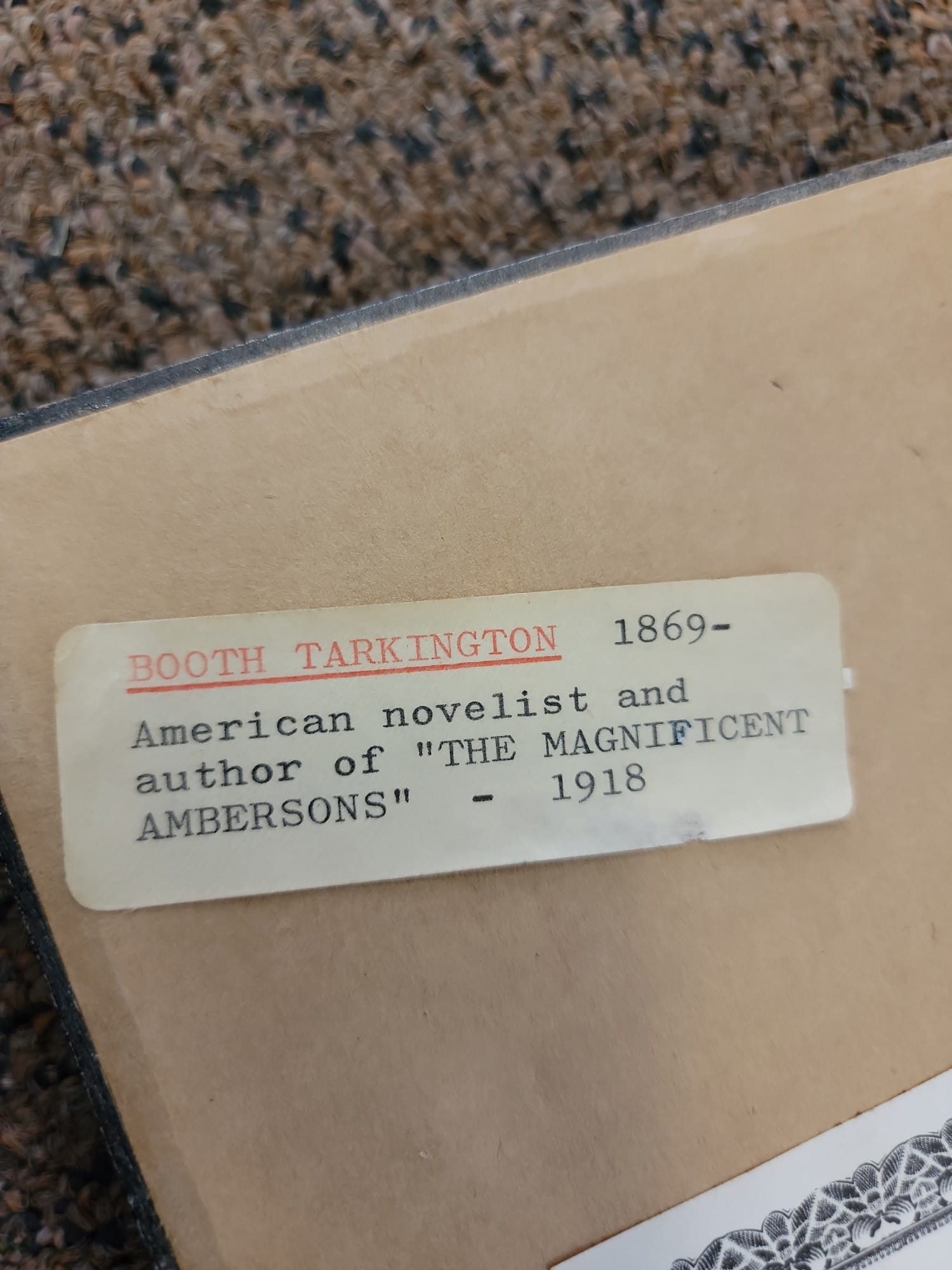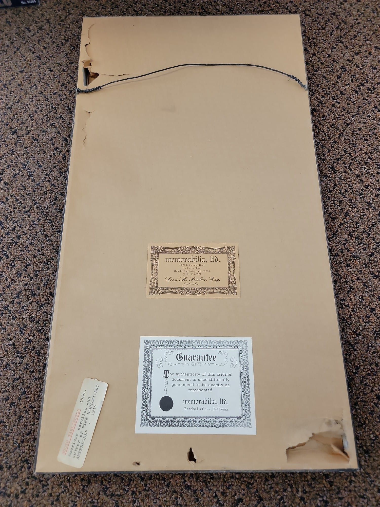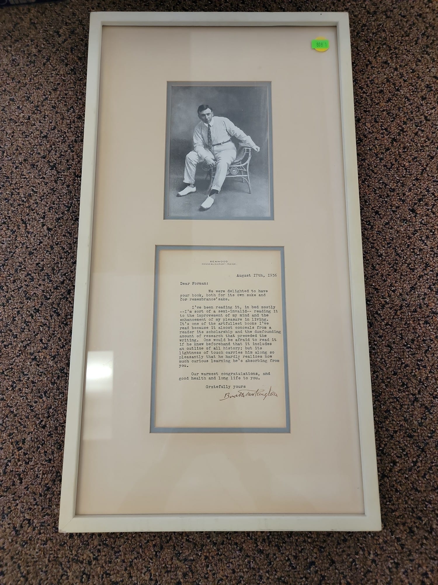 808 Booth Tarkington Photo and 1936 letter framed, 5" x 7" photo, 6" x 8" letter, 12" x 22" frame