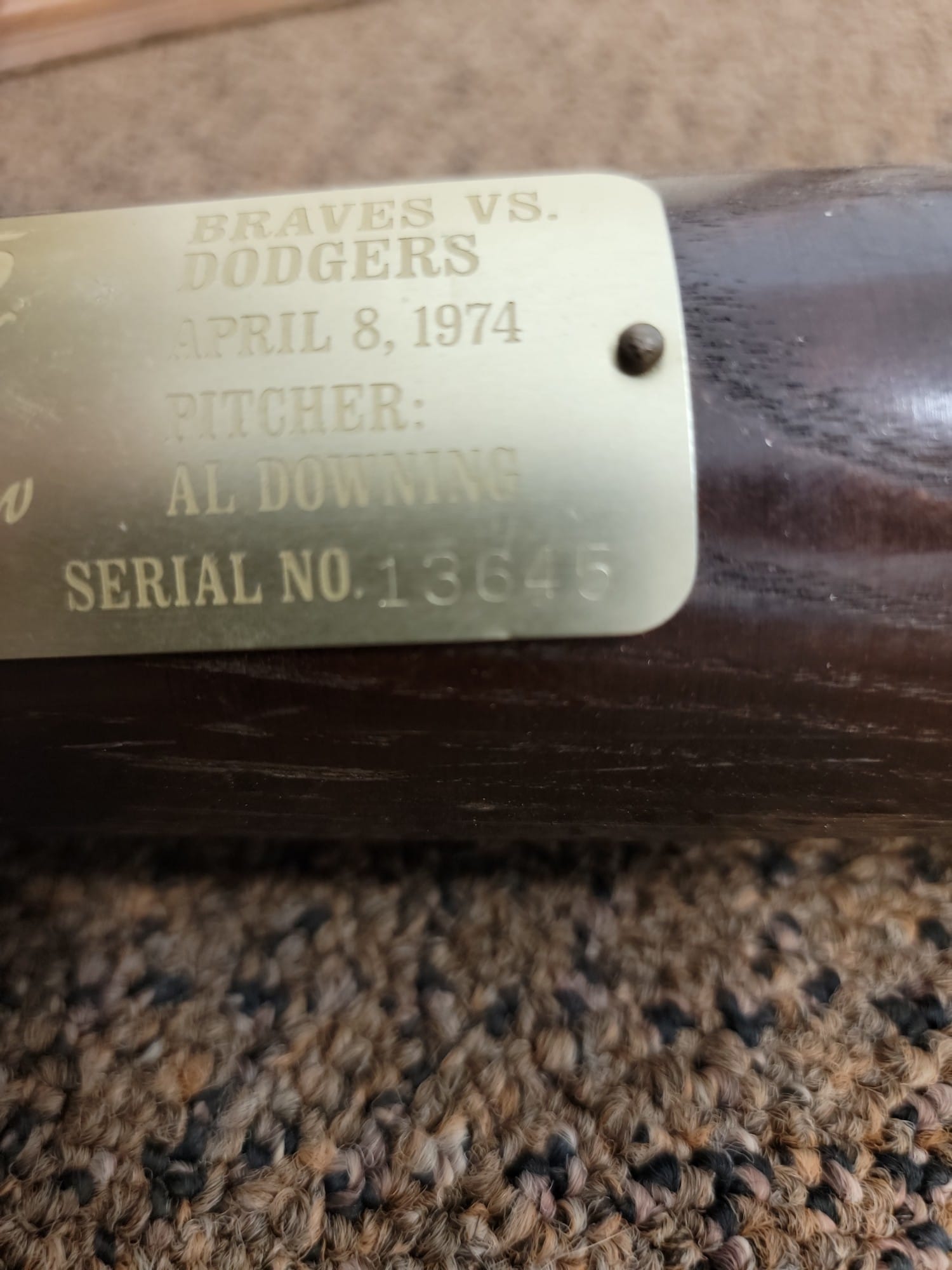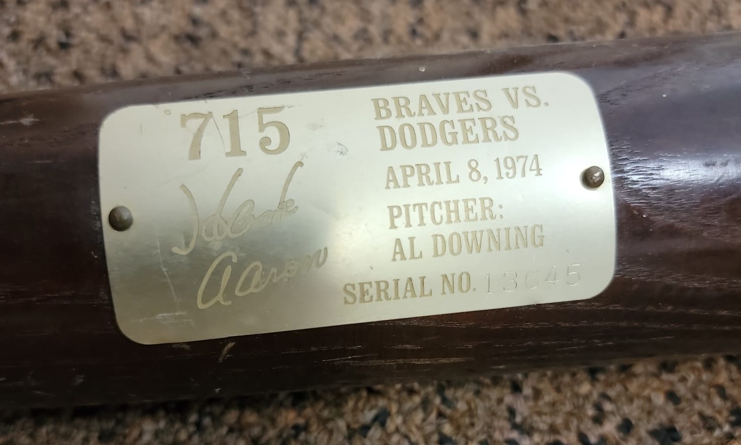 823 Louisville Slugger 715 Braves vs. Dodgers April 8, 1974 Henry Aaron Commemorative Bat
