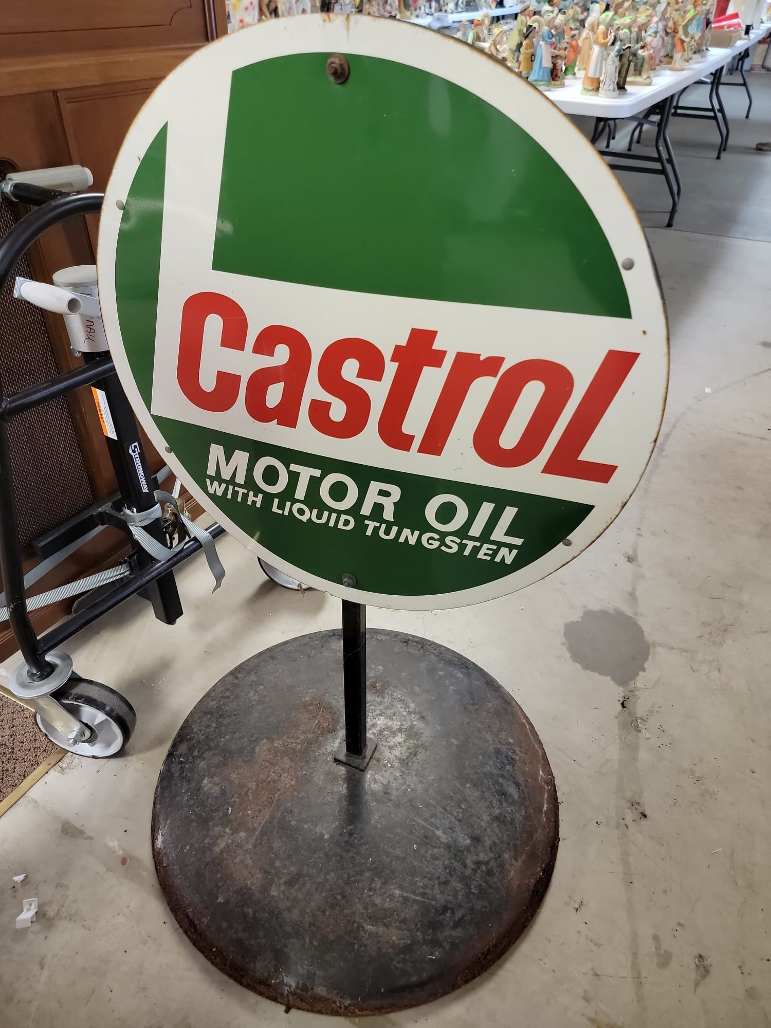 1a Double-sided Castrol Motor Oil Sign with Base, 40"H with base, metal sign is 24" Diameter