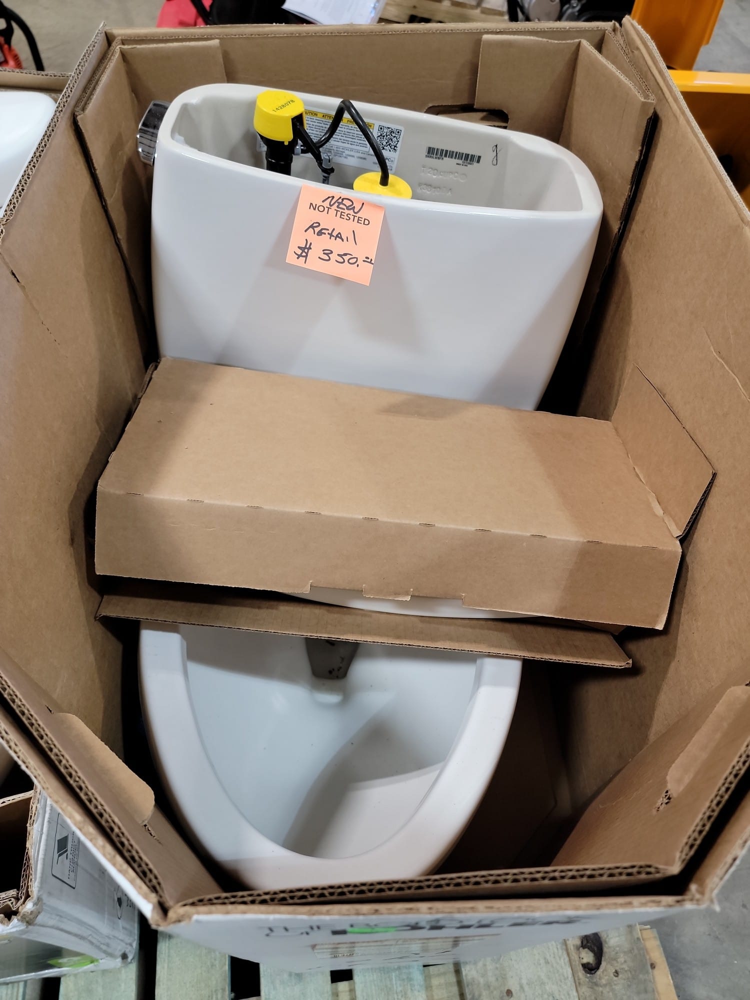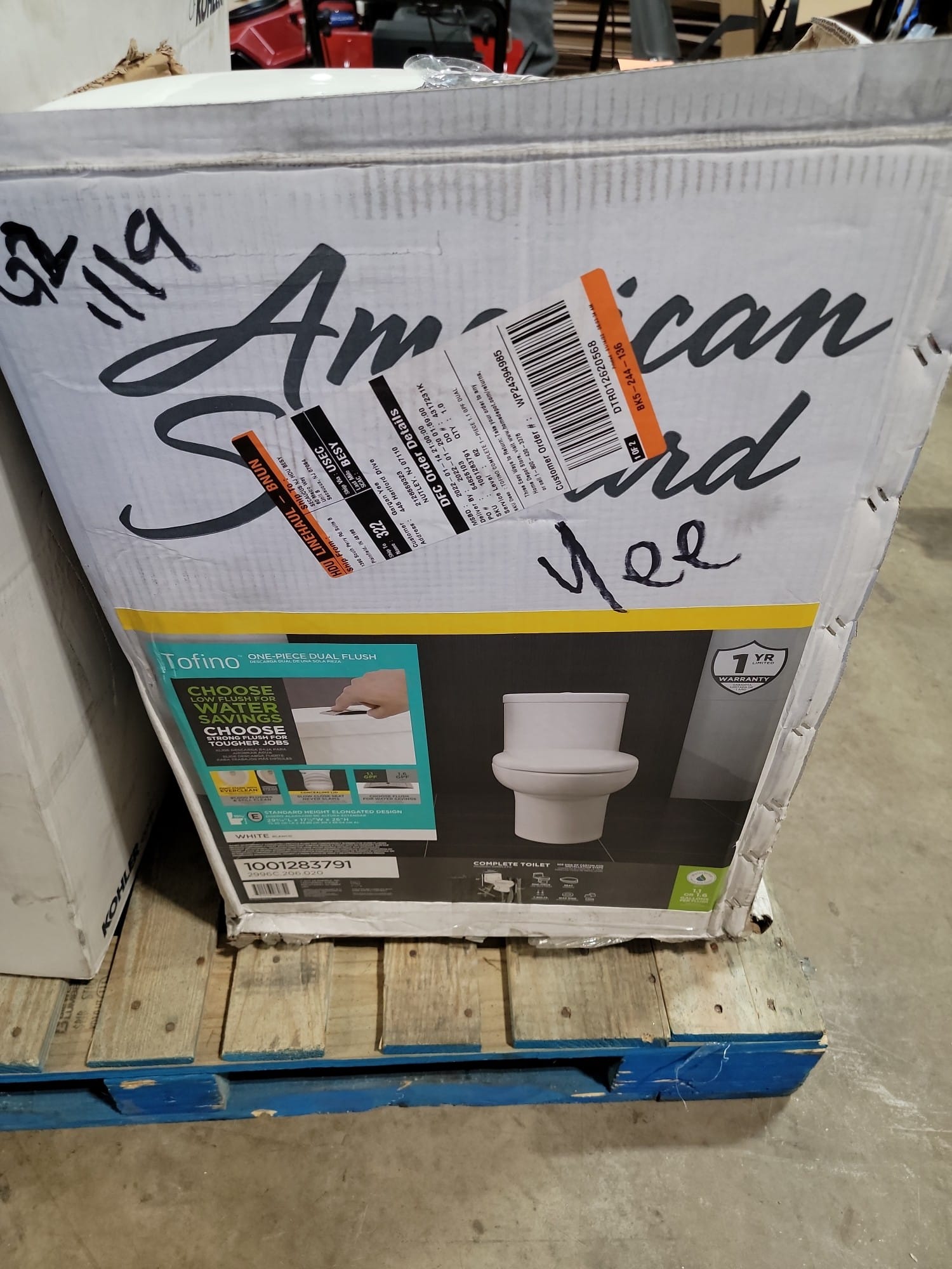 14 "American Standard Tofino Complete 1-Piece 1.1 GPF Dual Flush Elongated Toilet in White with Slow Close Seat"