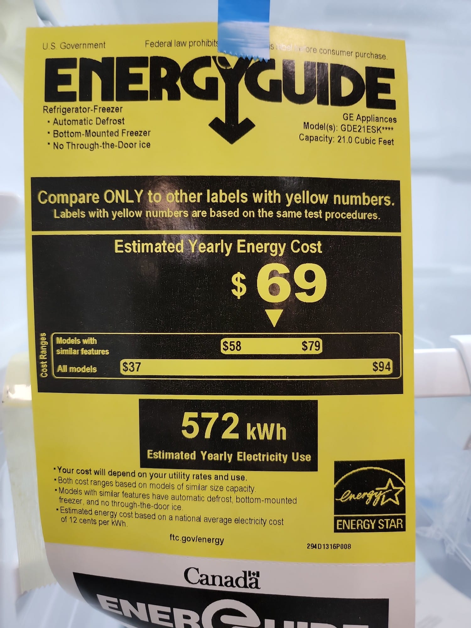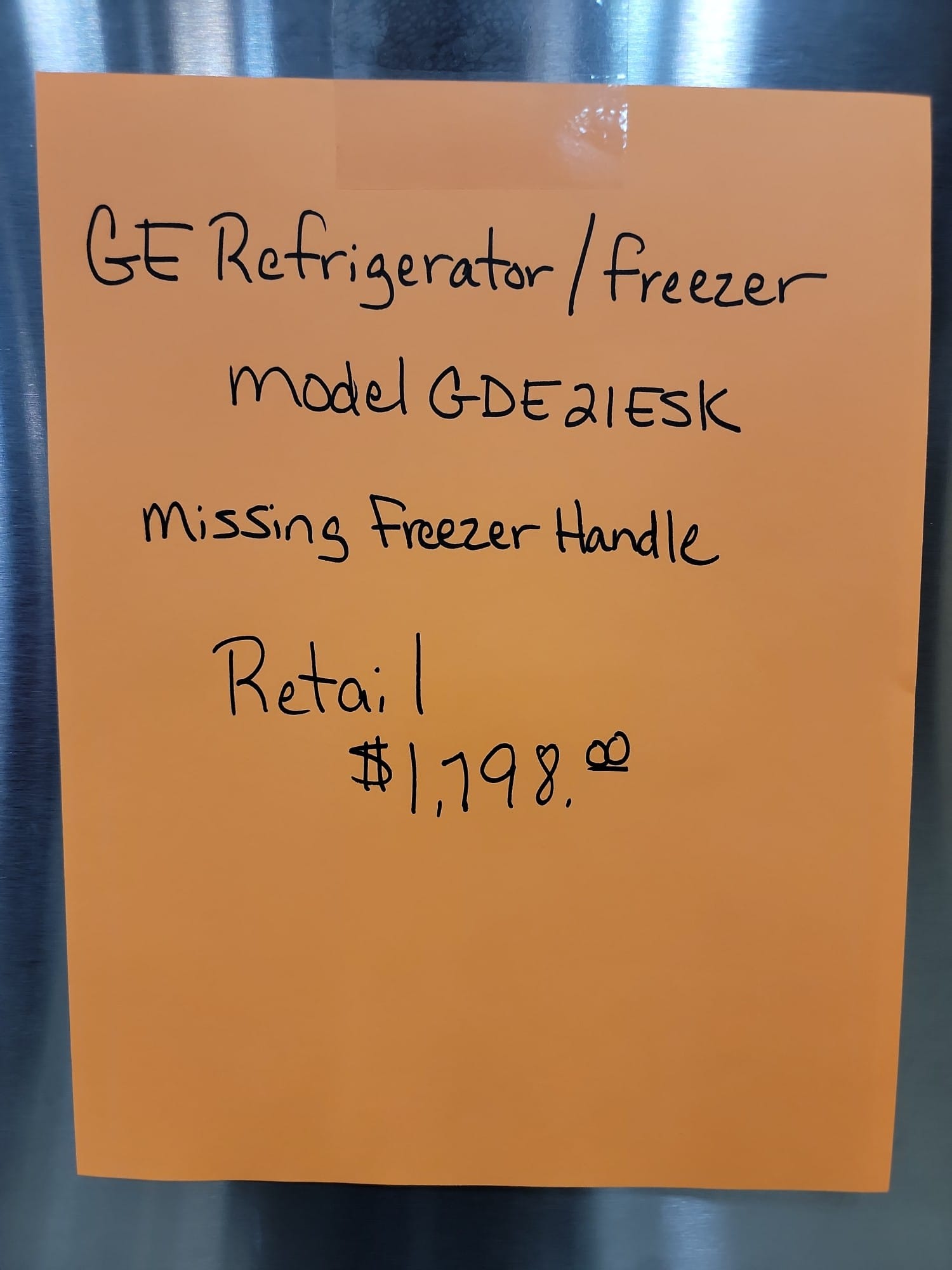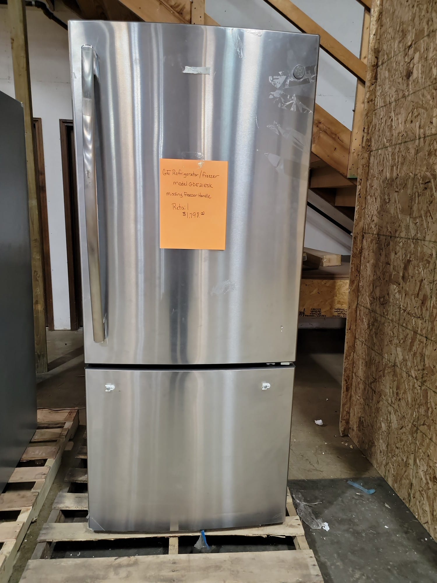 20 GE Model GDE21ESK 20.8-cu ft Bottom-Freezer Refrigerator (Stainless Steel) ENERGY STAR, missing freezer handle