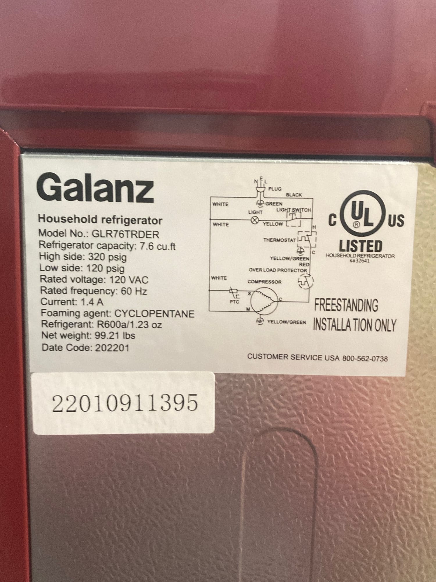 21 Galanz Compact Refrigerator/Freezer Model GLR76TRDER