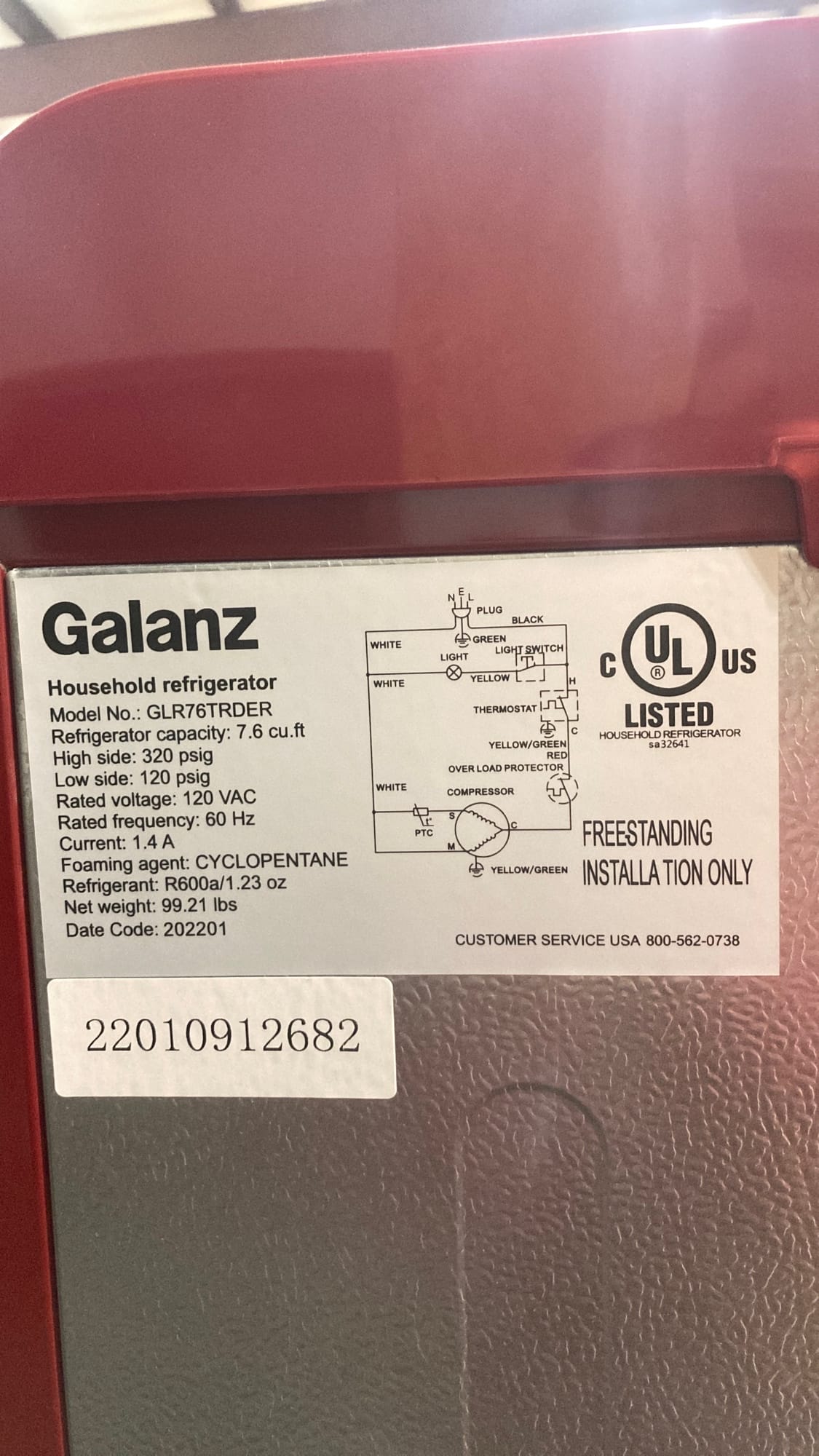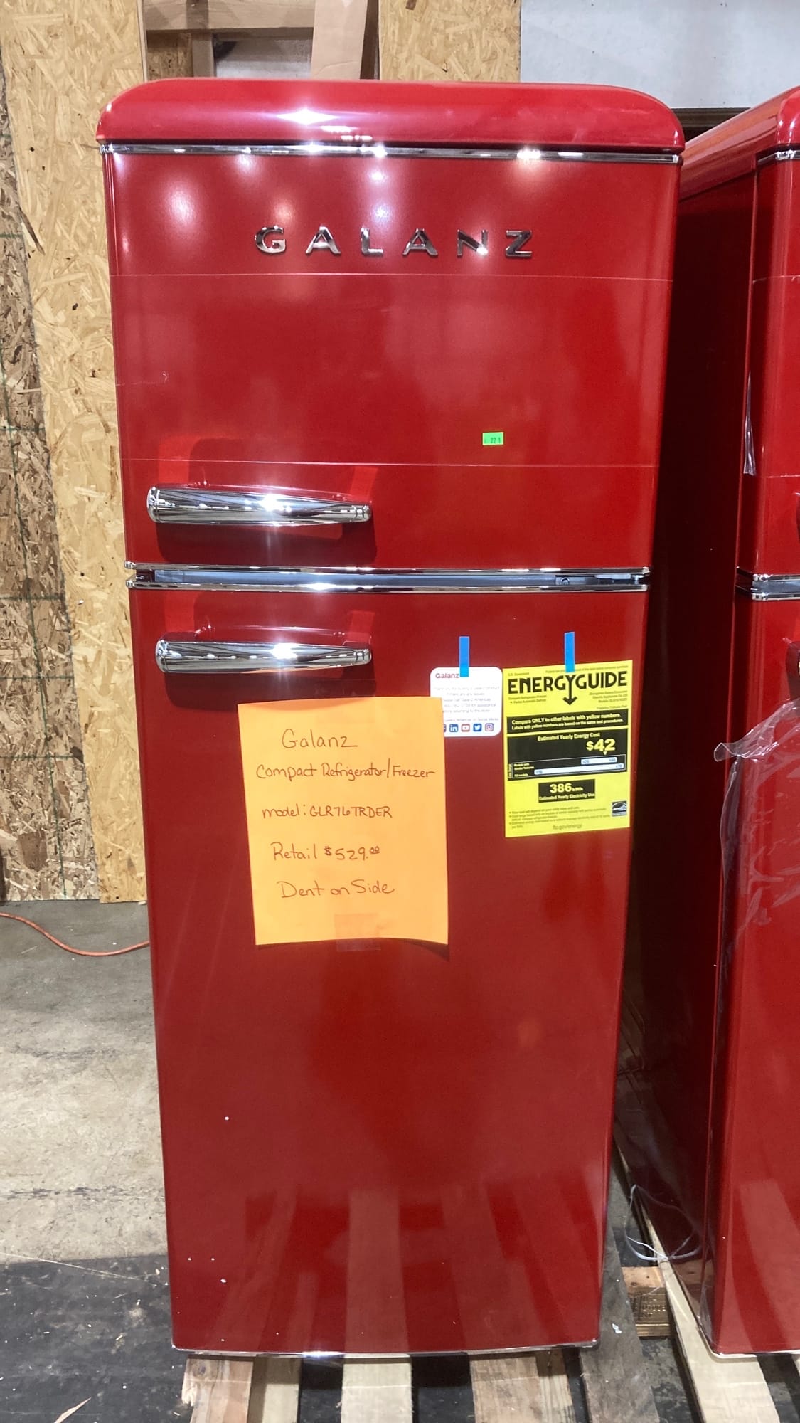 22 Galanz Compact Refrigerator/Freezer Model GLR76TRDER Dent On Side
