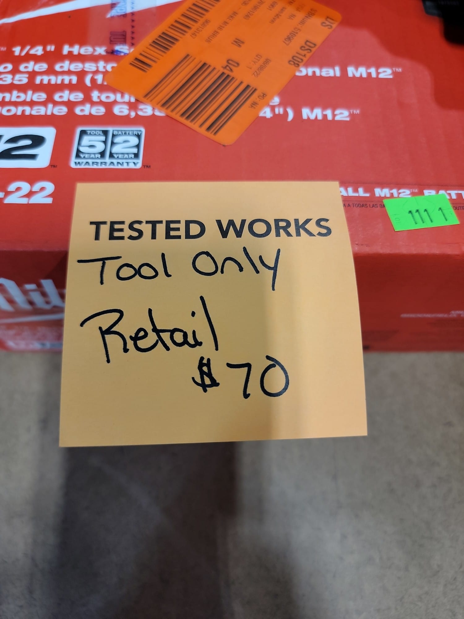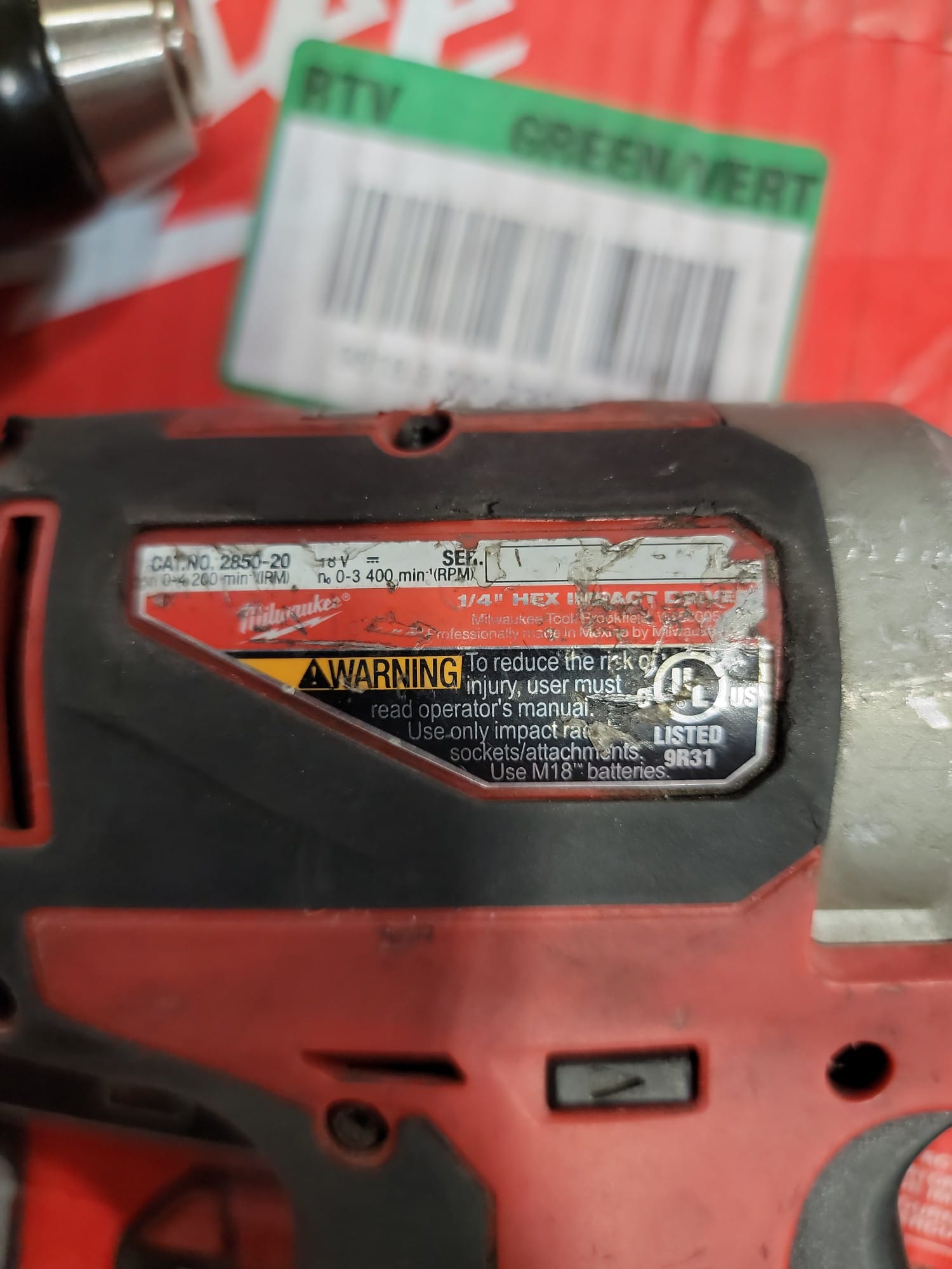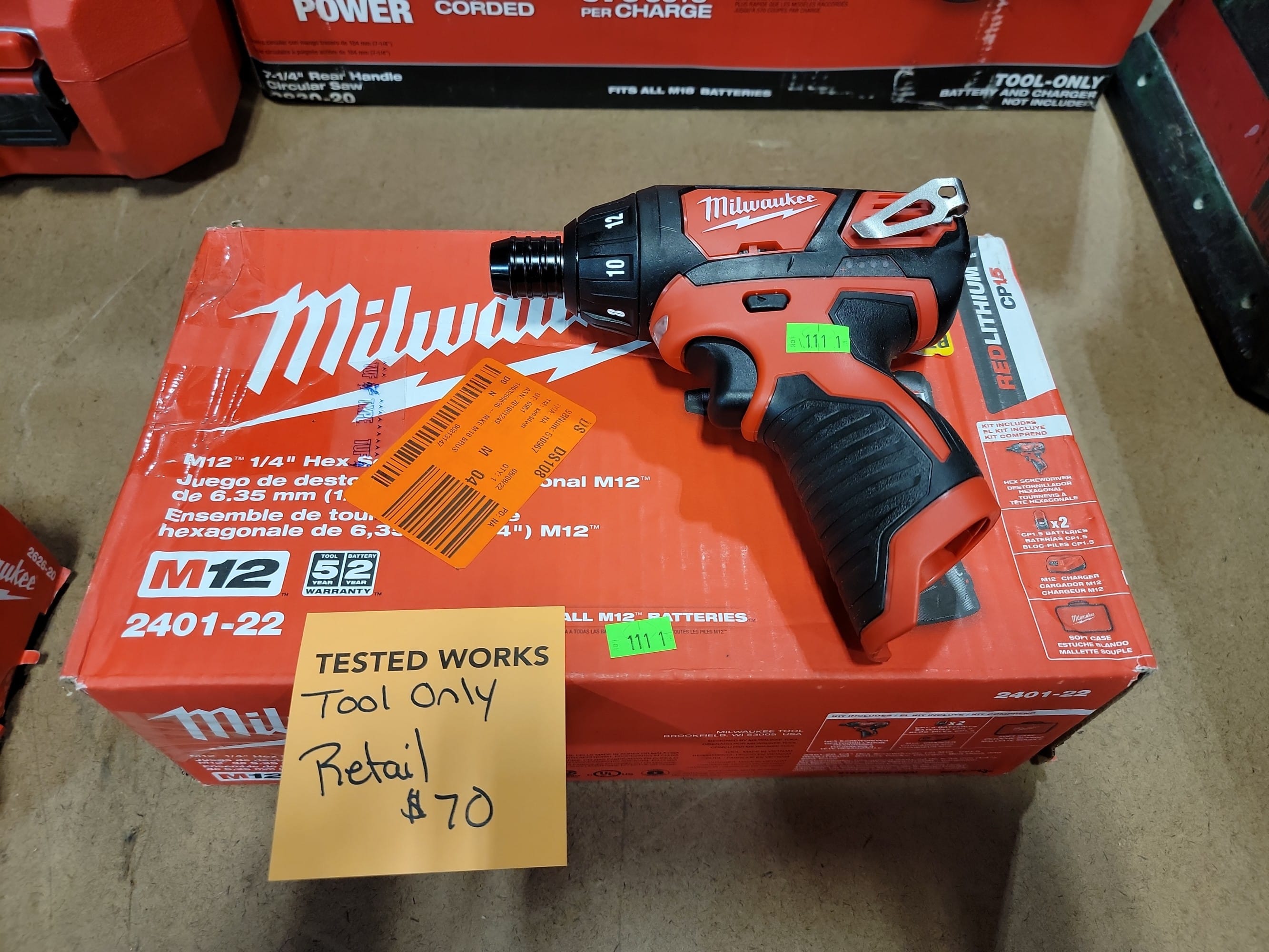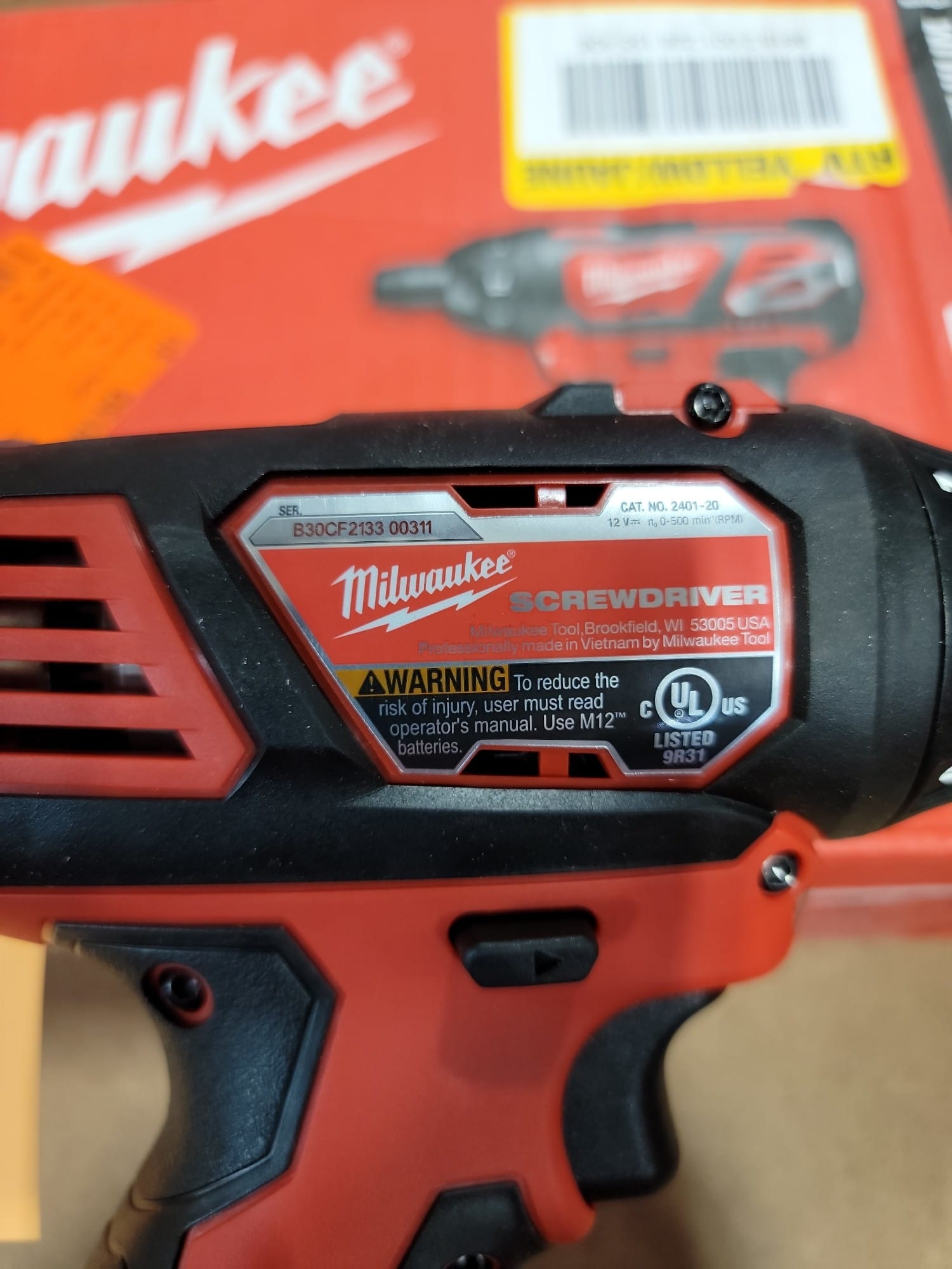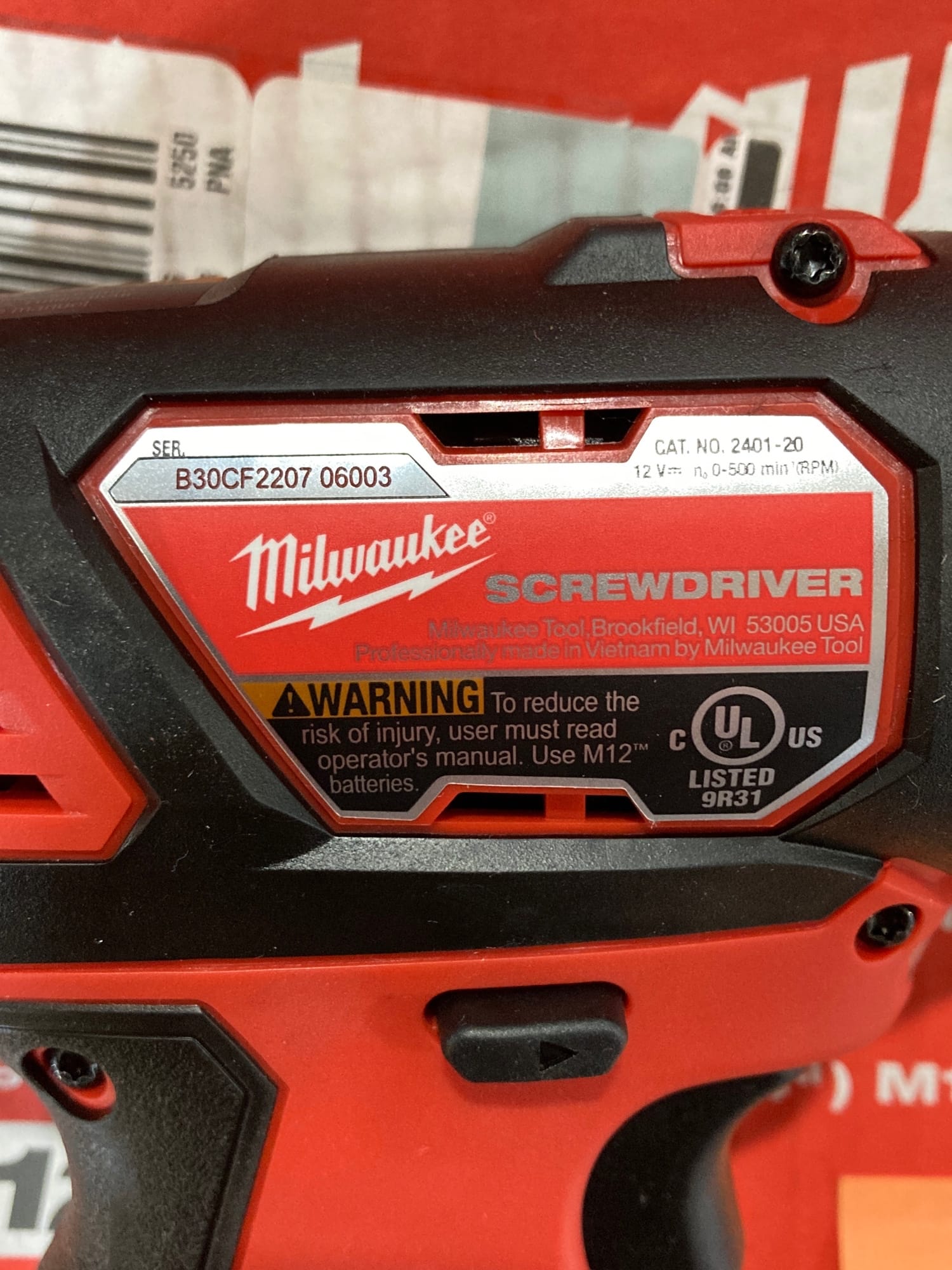 111 Milwaukee 2401-22 M12 1/4" Hex Screwdriver, tool only