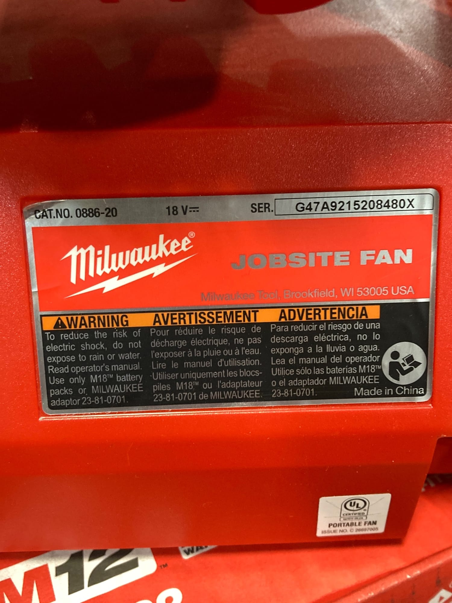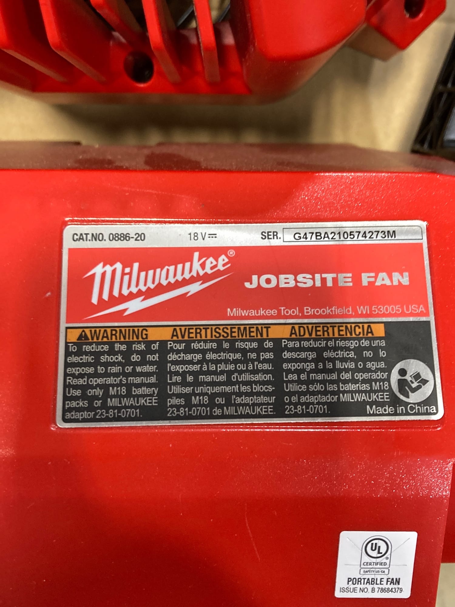 108 Milwaukee M18 Jobsite Fan, (Tool Only)