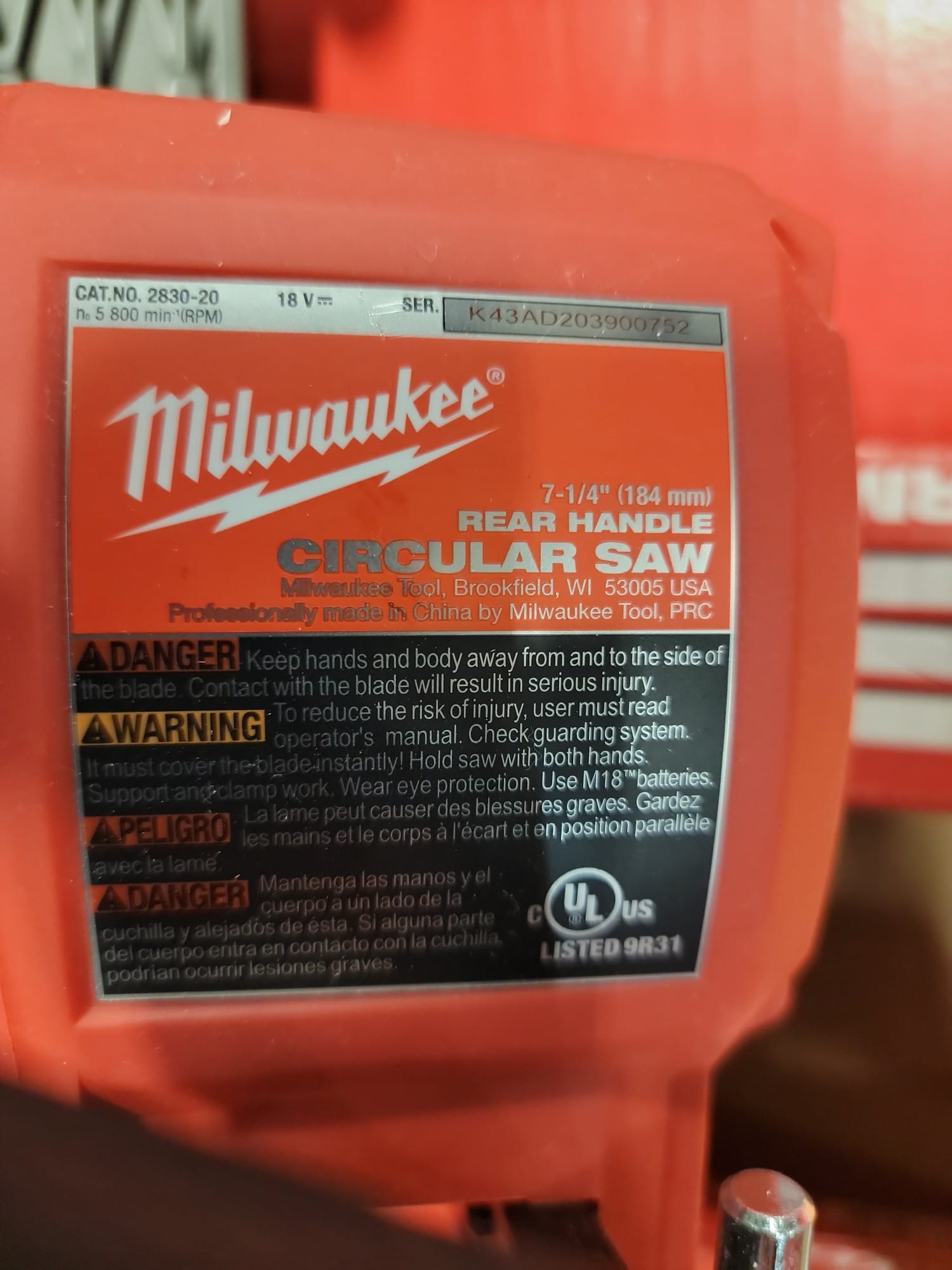 112 "Milwaukee M18 FUEL 18V Lithium-Ion Cordless 7-1/4 in. Rear Handle Circular Saw (Tool-Only)"