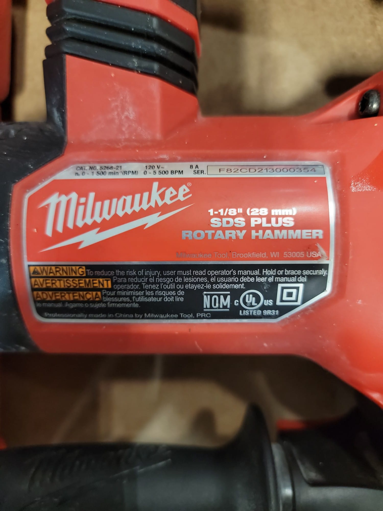 114 Milwaukee 5268-21 1-1/8" SDS Rotary Hammer