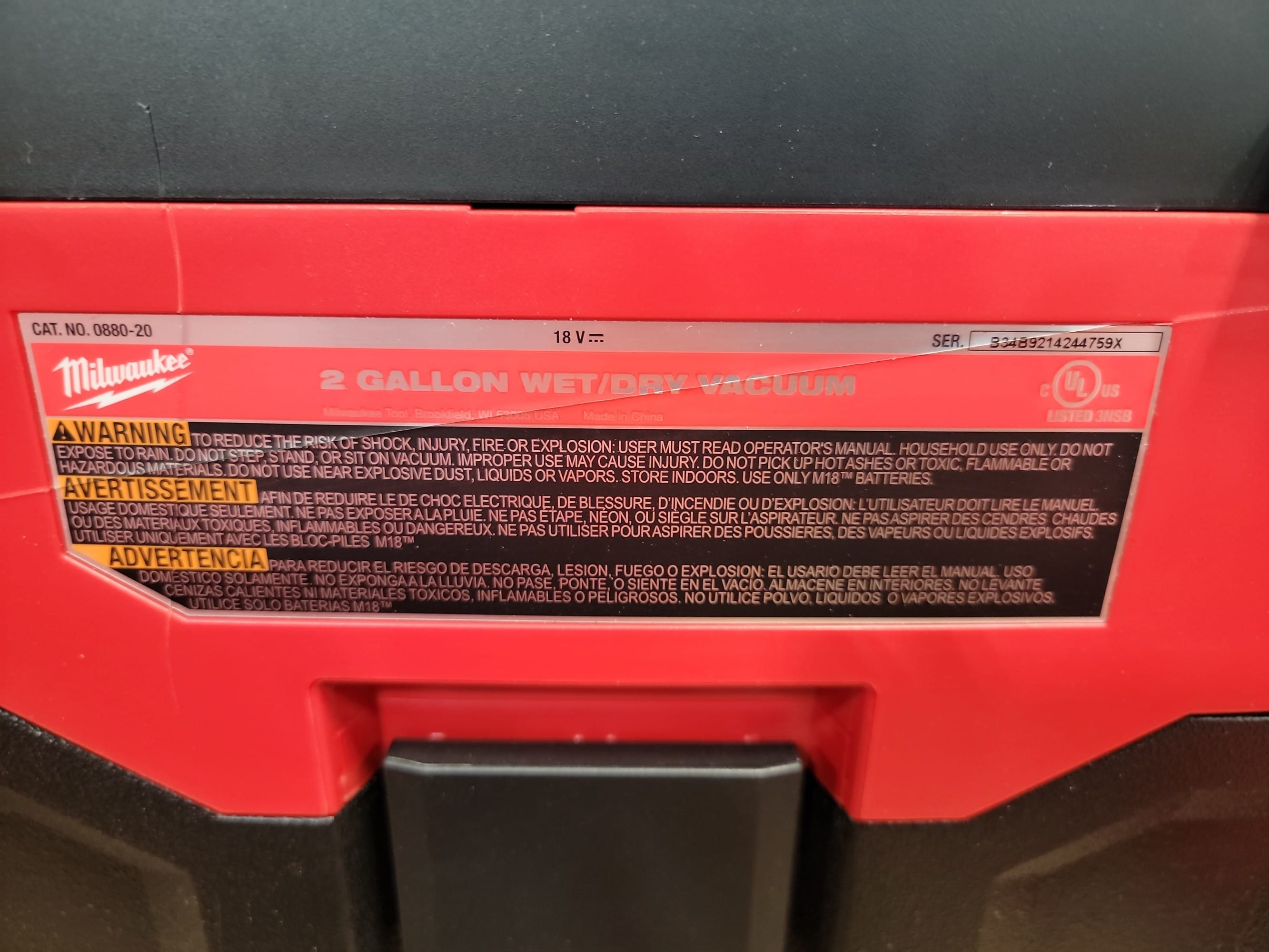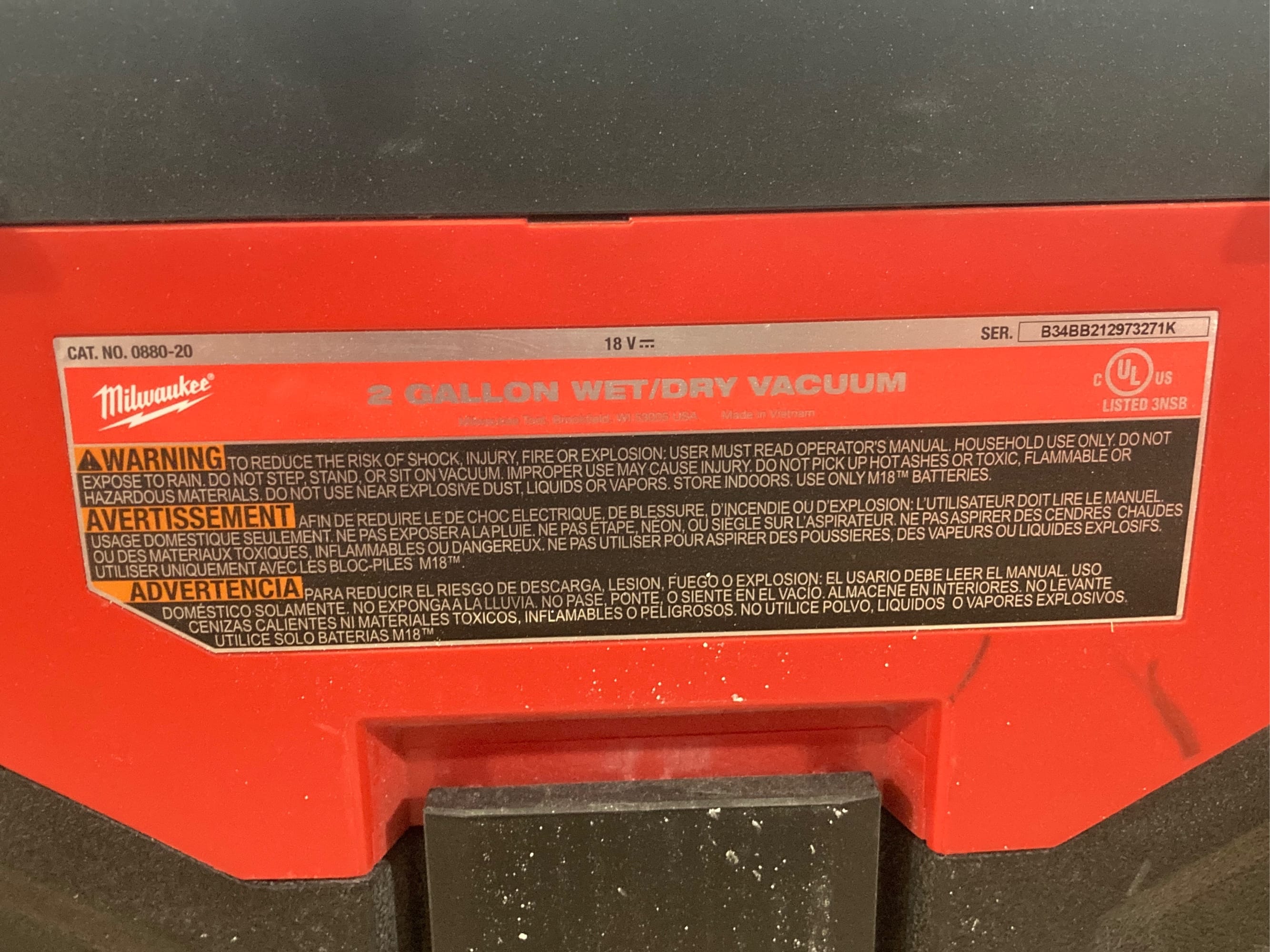116 "Milwaukee M18 18-Volt 2 Gal. Lithium-Ion Cordless Wet/Dry Vacuum (Tool-Only)"