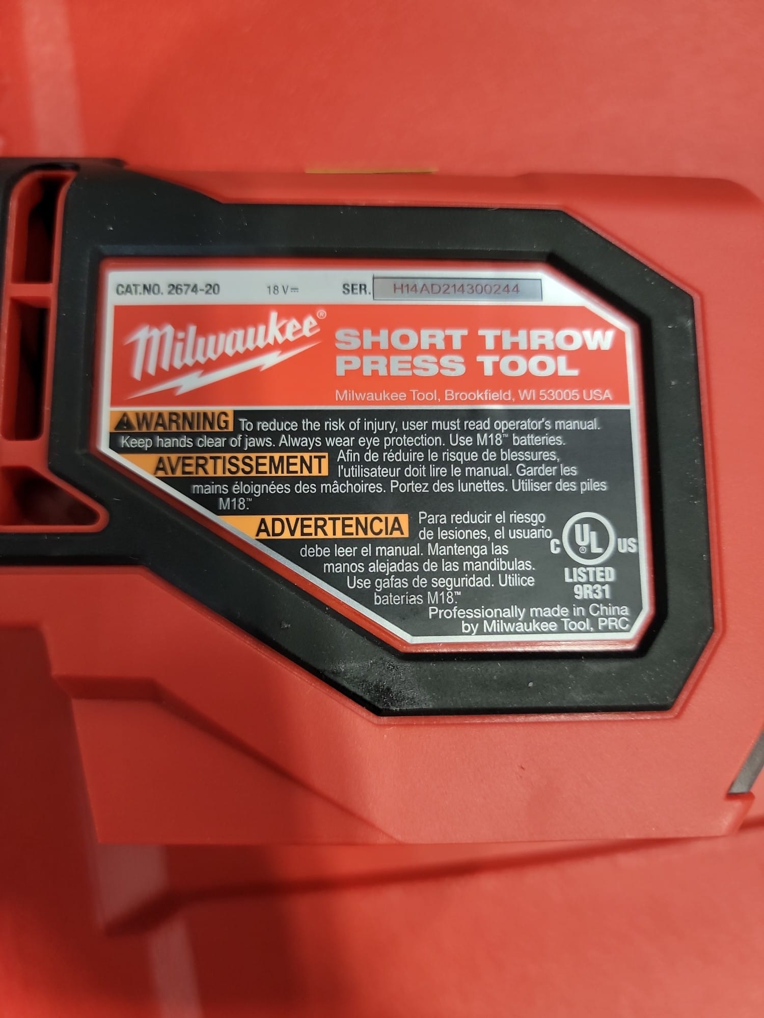 118 "Milwaukee M18 18-Volt Lithium-Ion Cordless Short Throw PEX Press Tool Only"