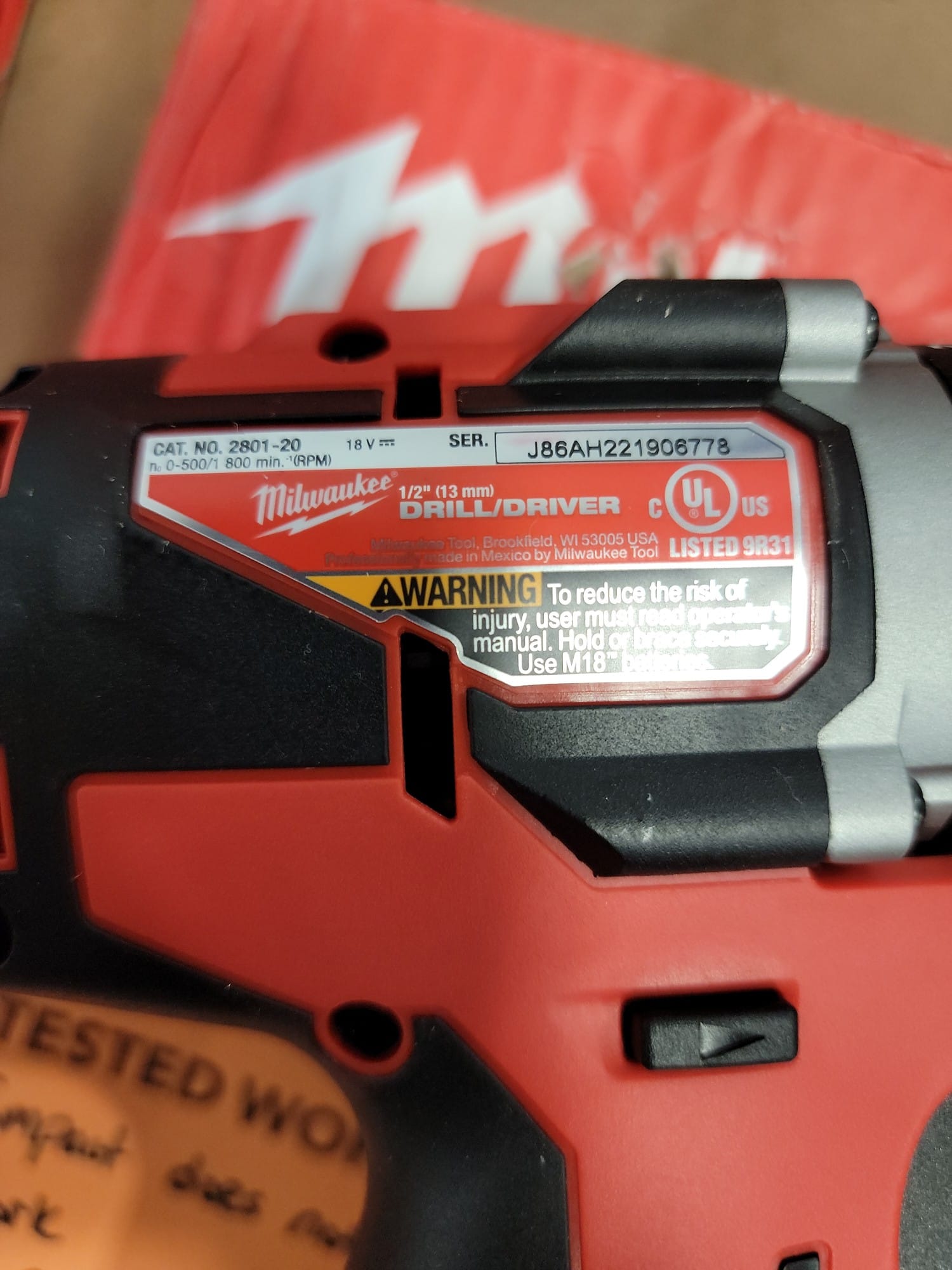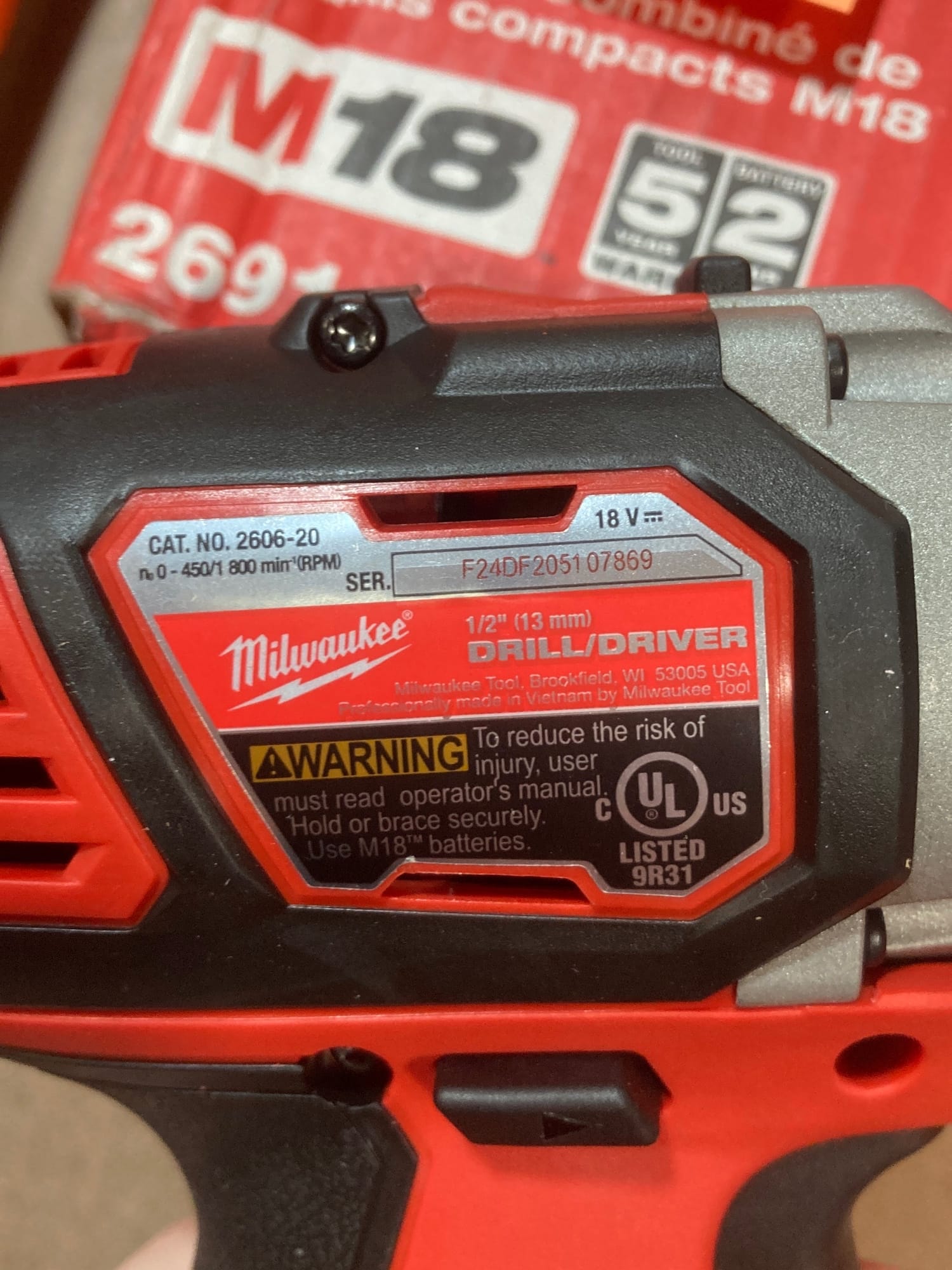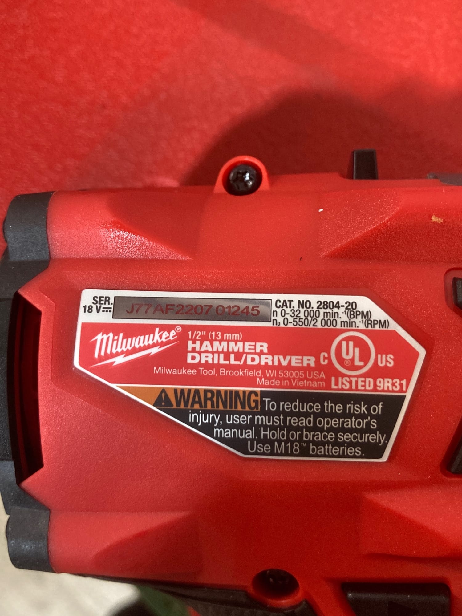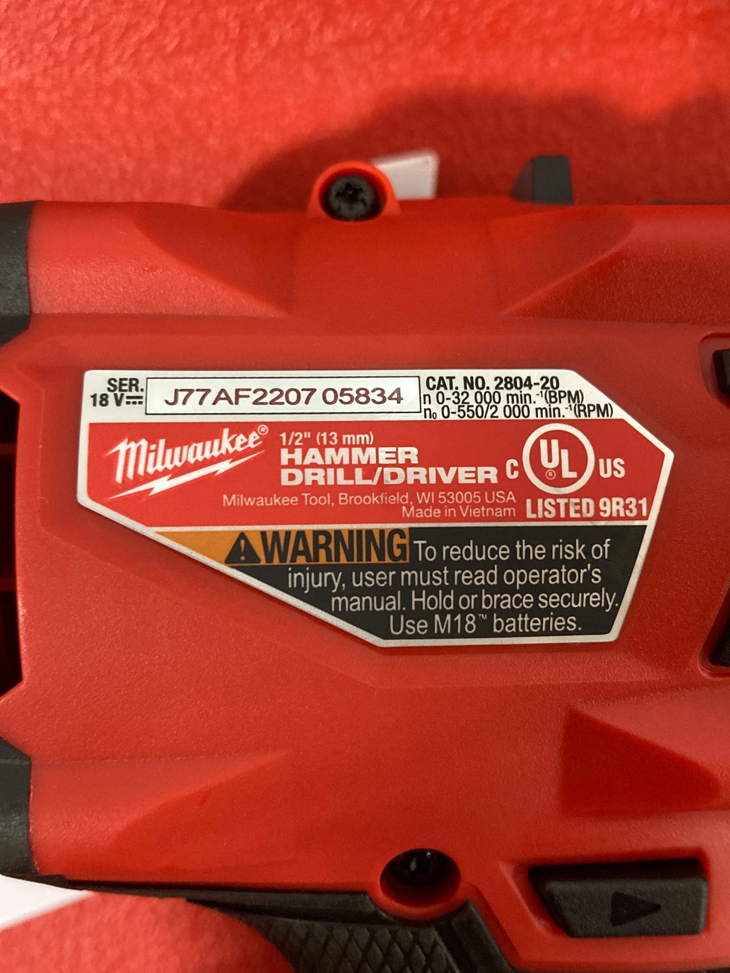 135 Milwaukee M18 1/2” Hammer Drill/Driver Tool Only