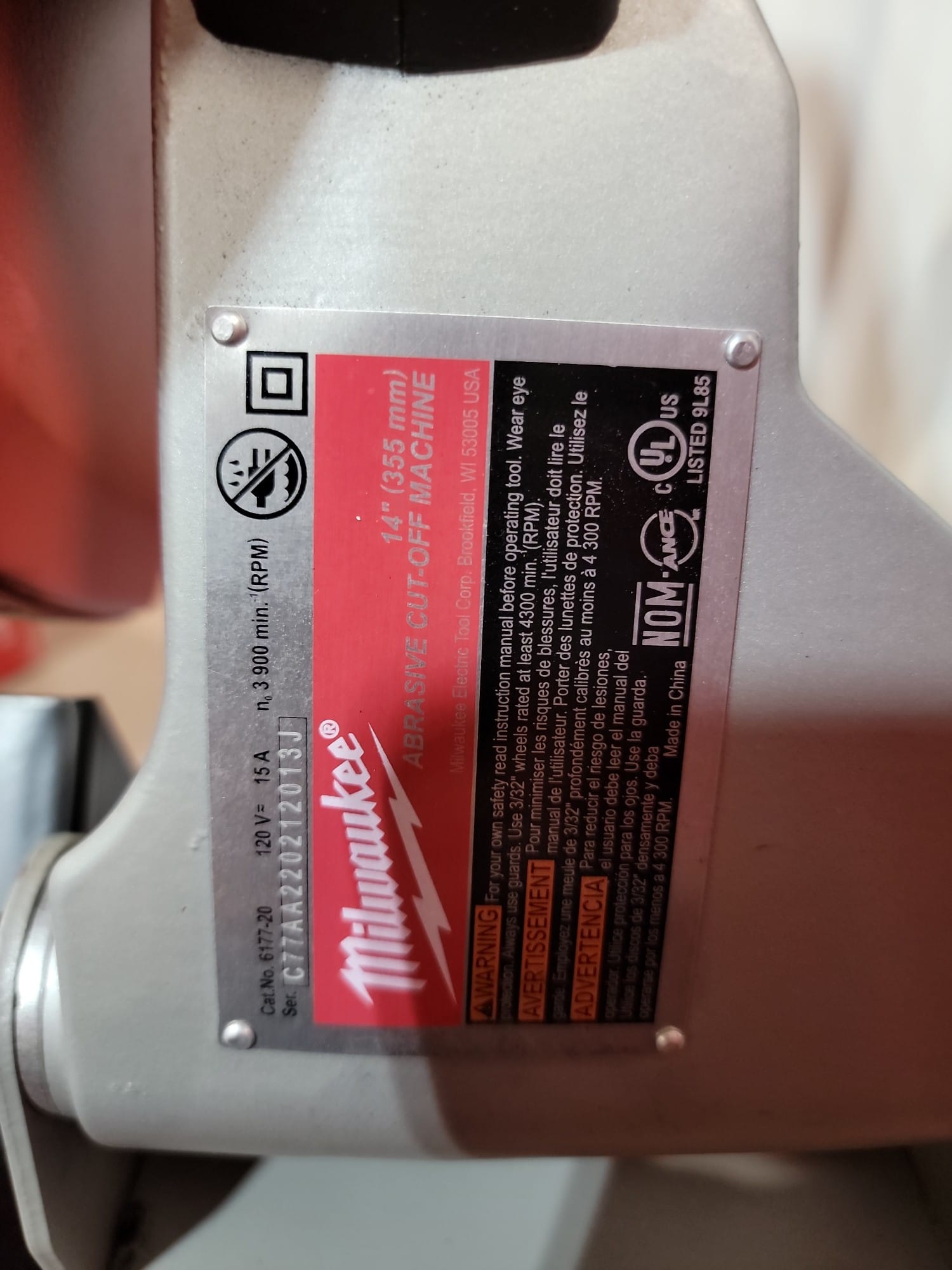 124 "Milwaukee 14 in. 15 Amp Abrasive Cut-Off Machine"
