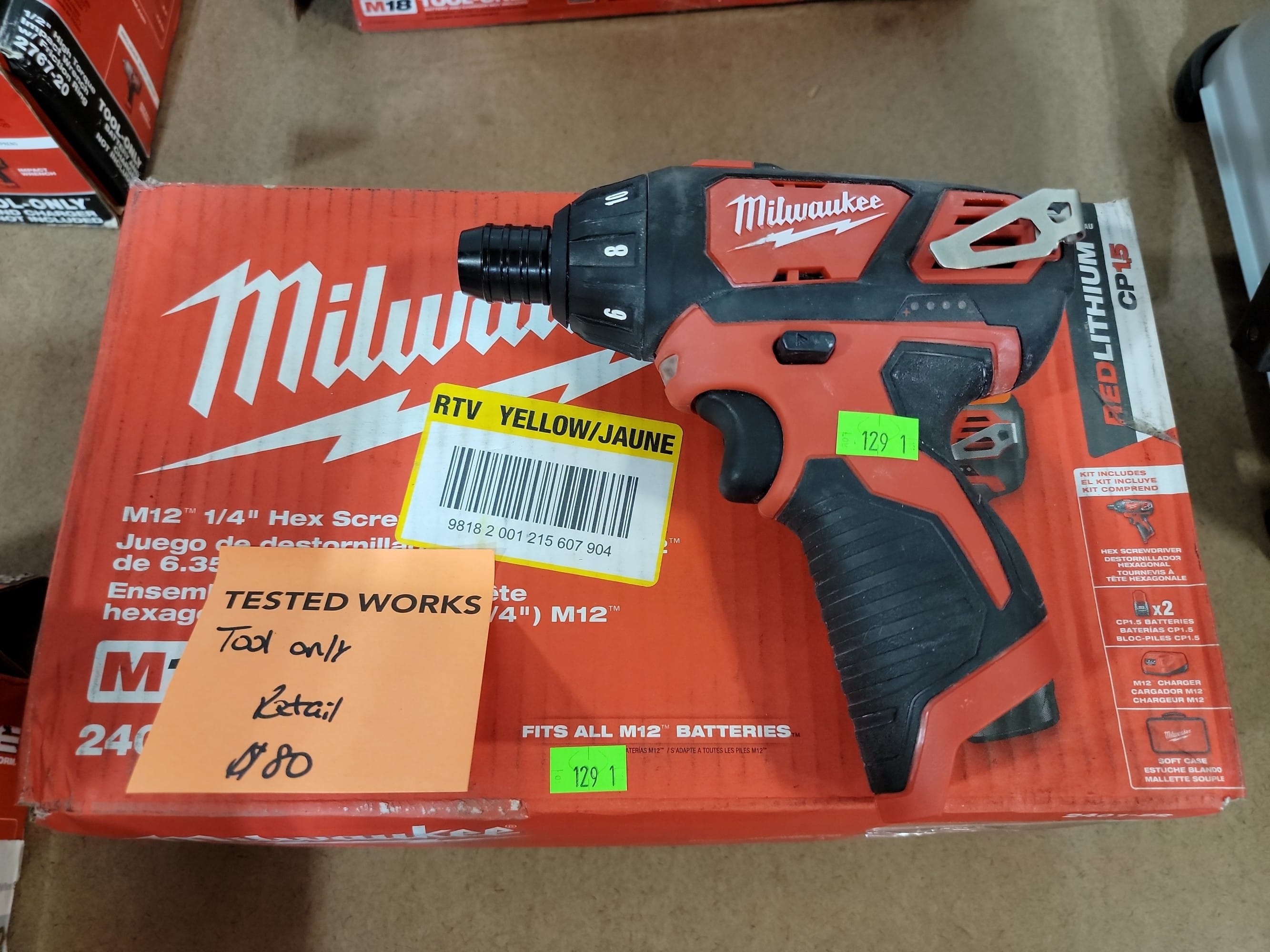 129 "Milwaukee M12 12V Lithium-Ion Cordless 1/4 in. Hex Screwdriver, tool only"