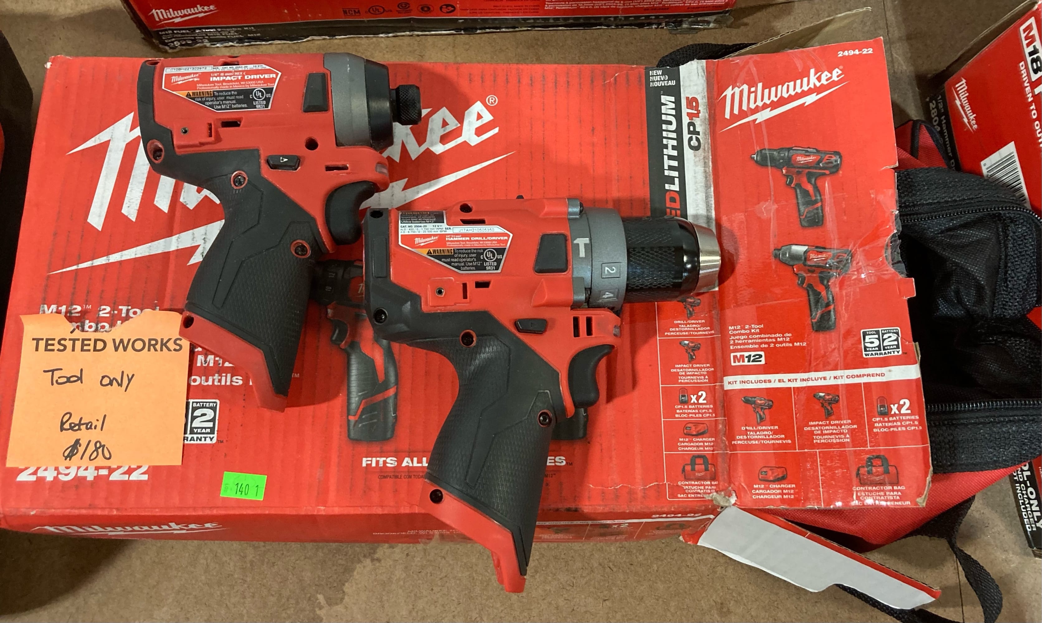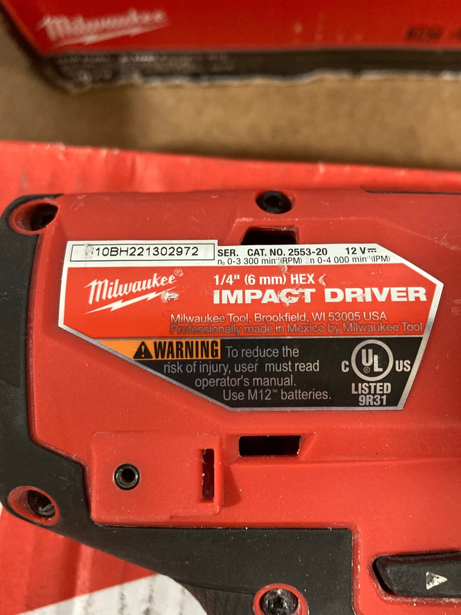 140 Milwaukee M12 12V Lithium-Ion Cordless Drill Driver/Impact Driver, (Tool Only)