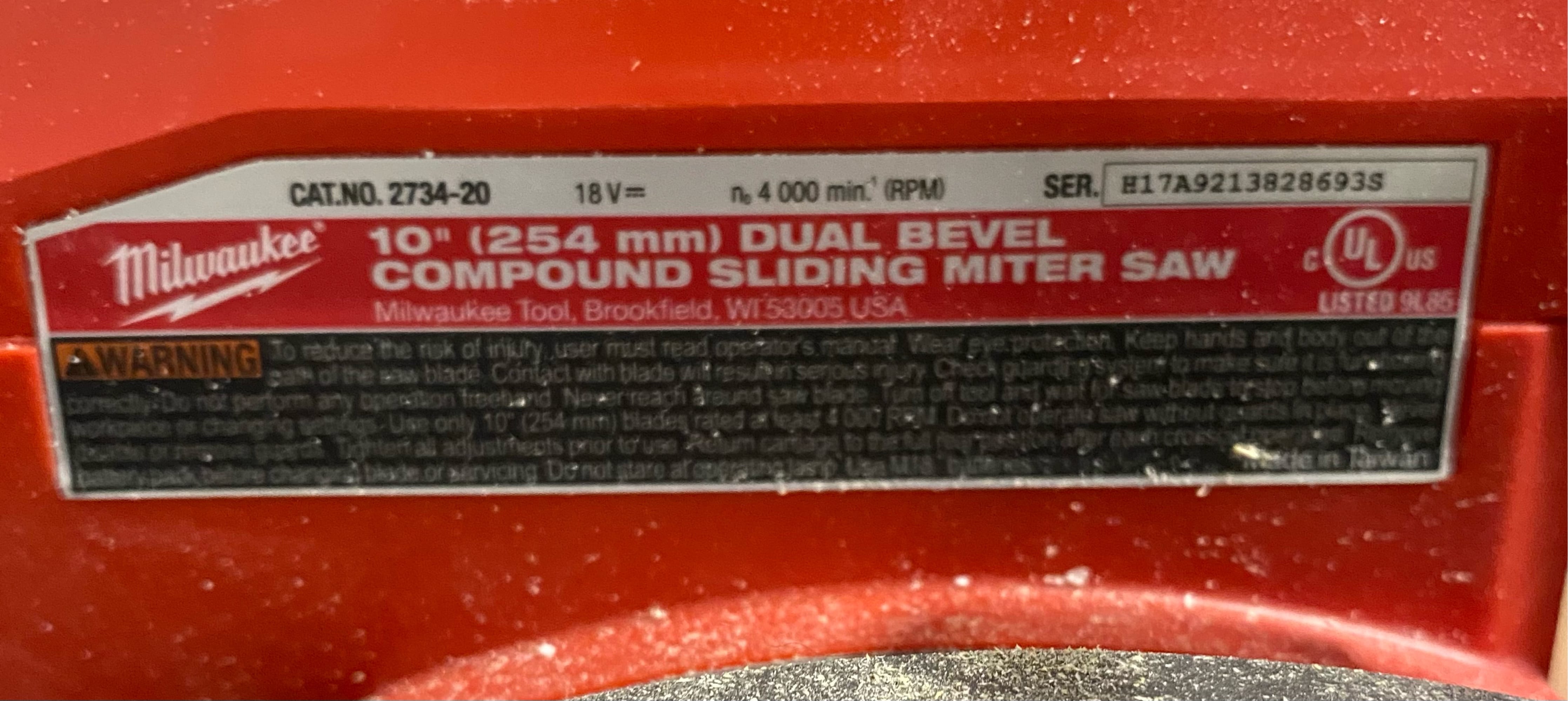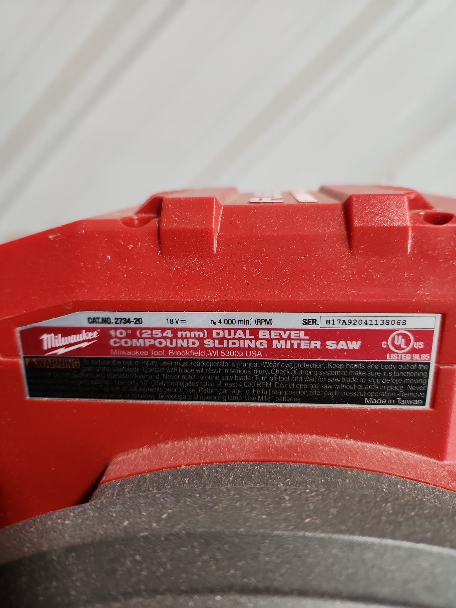 161 Milwaukee M18 10” Dual Bevel Sliding Compound Miter Saw, Tool only