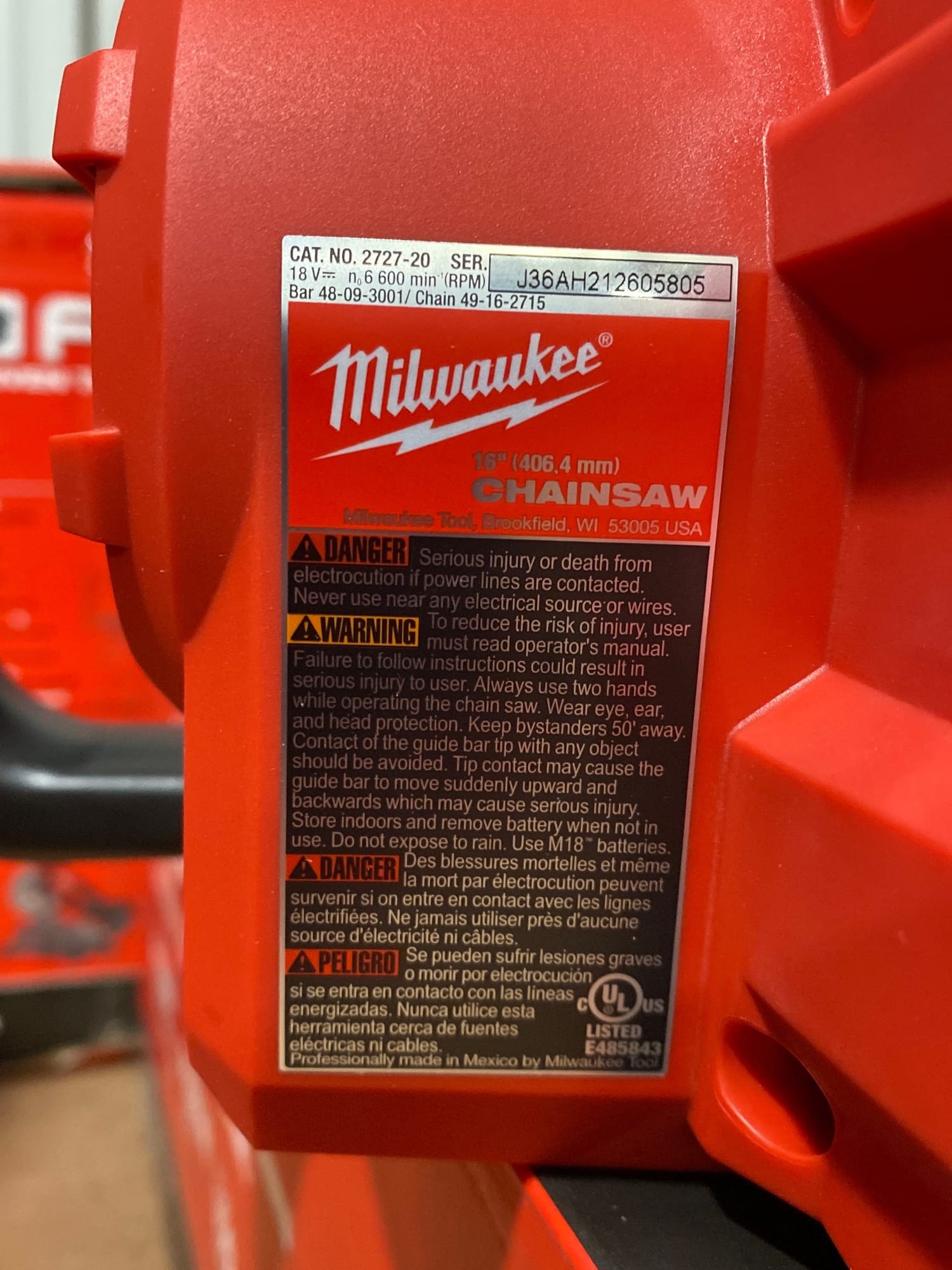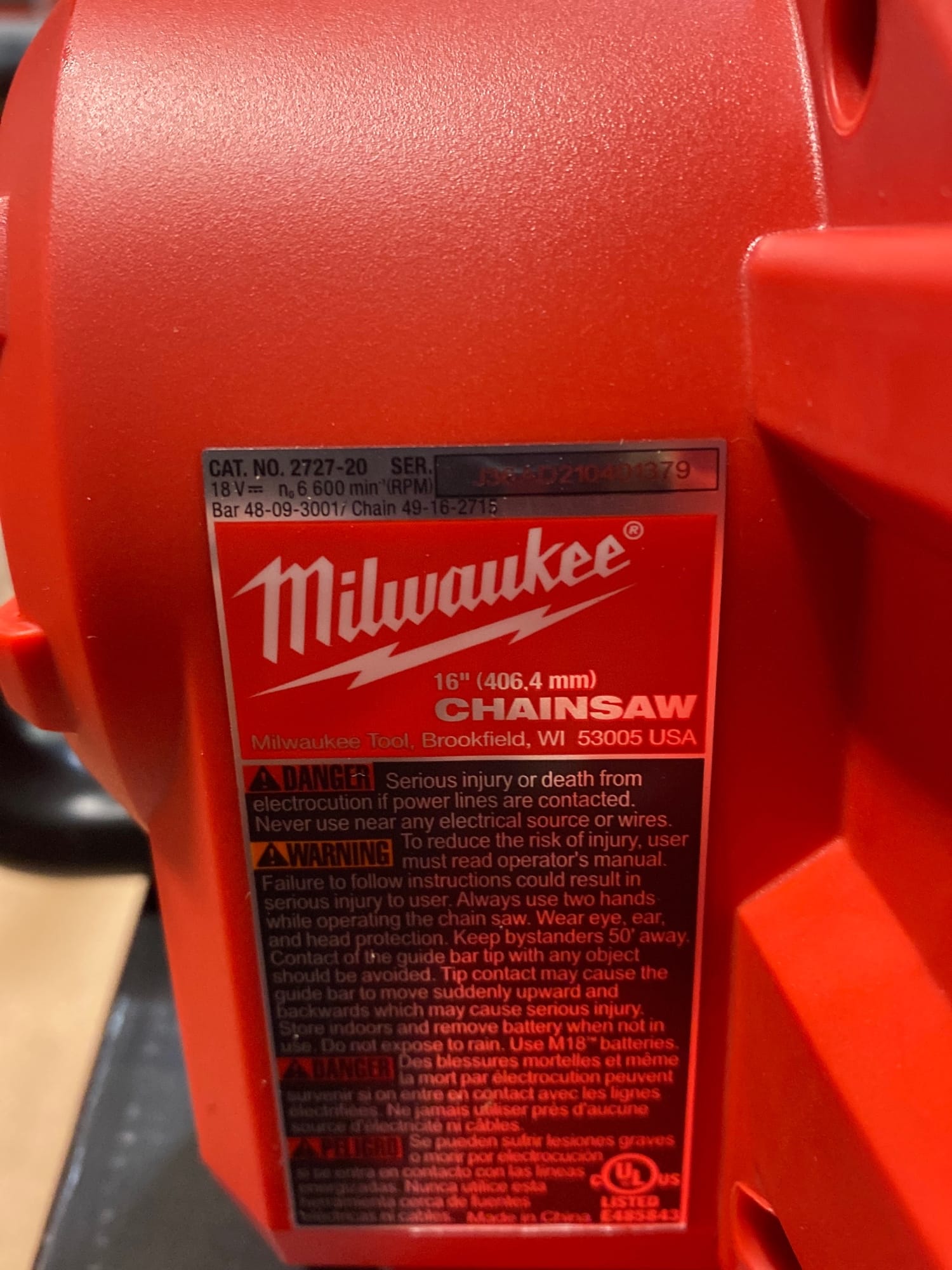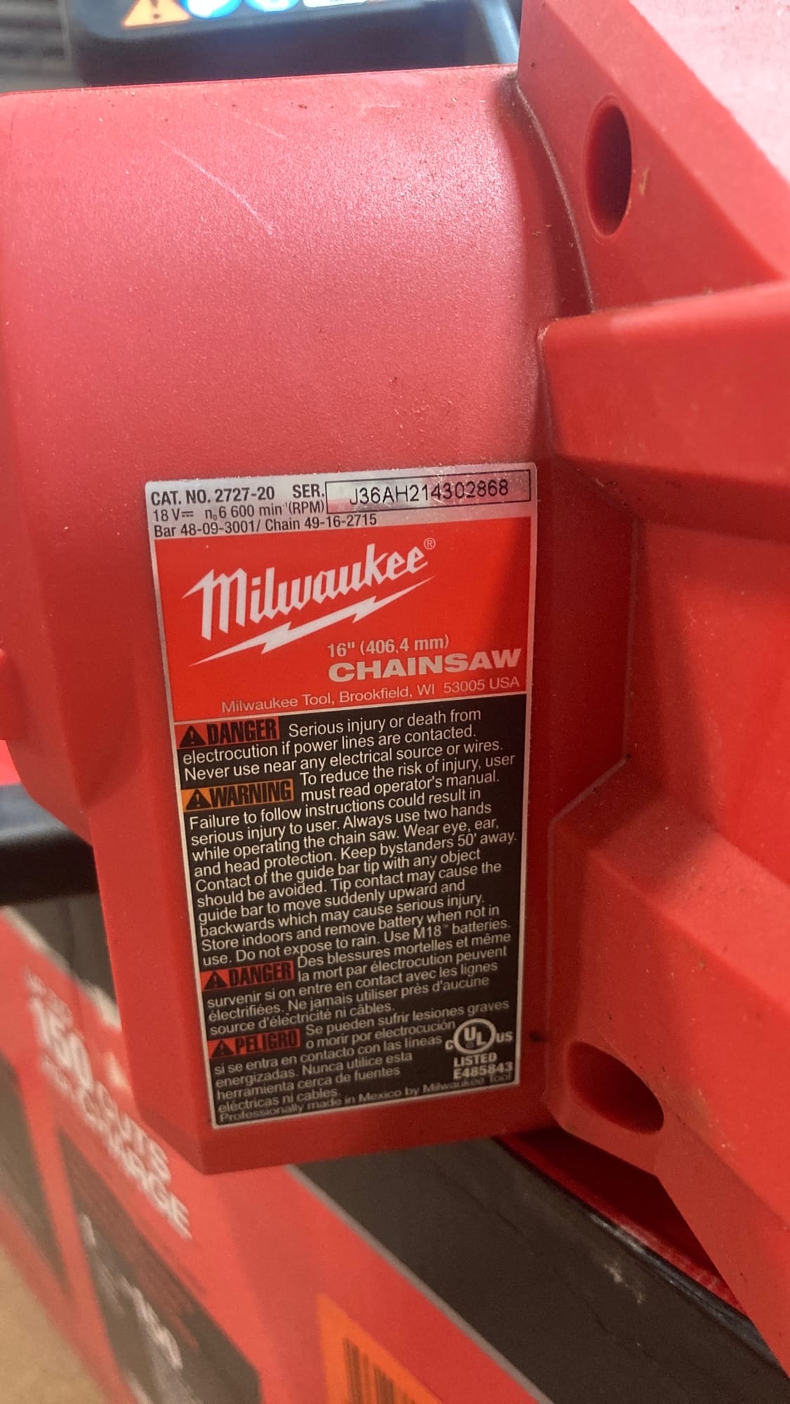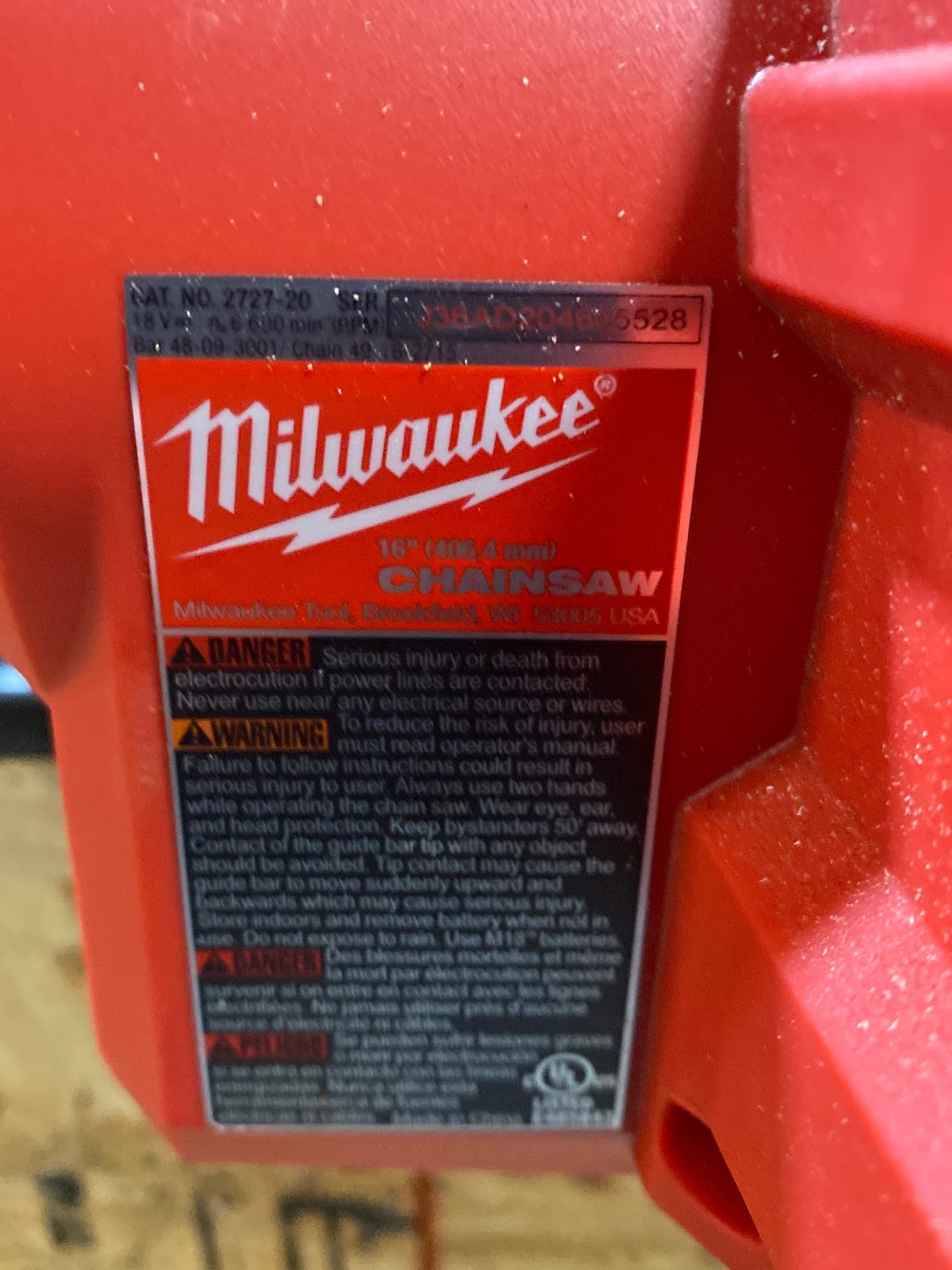 159 Milwaukee M18 Model:2727-20 16” Chainsaw, Tool Only