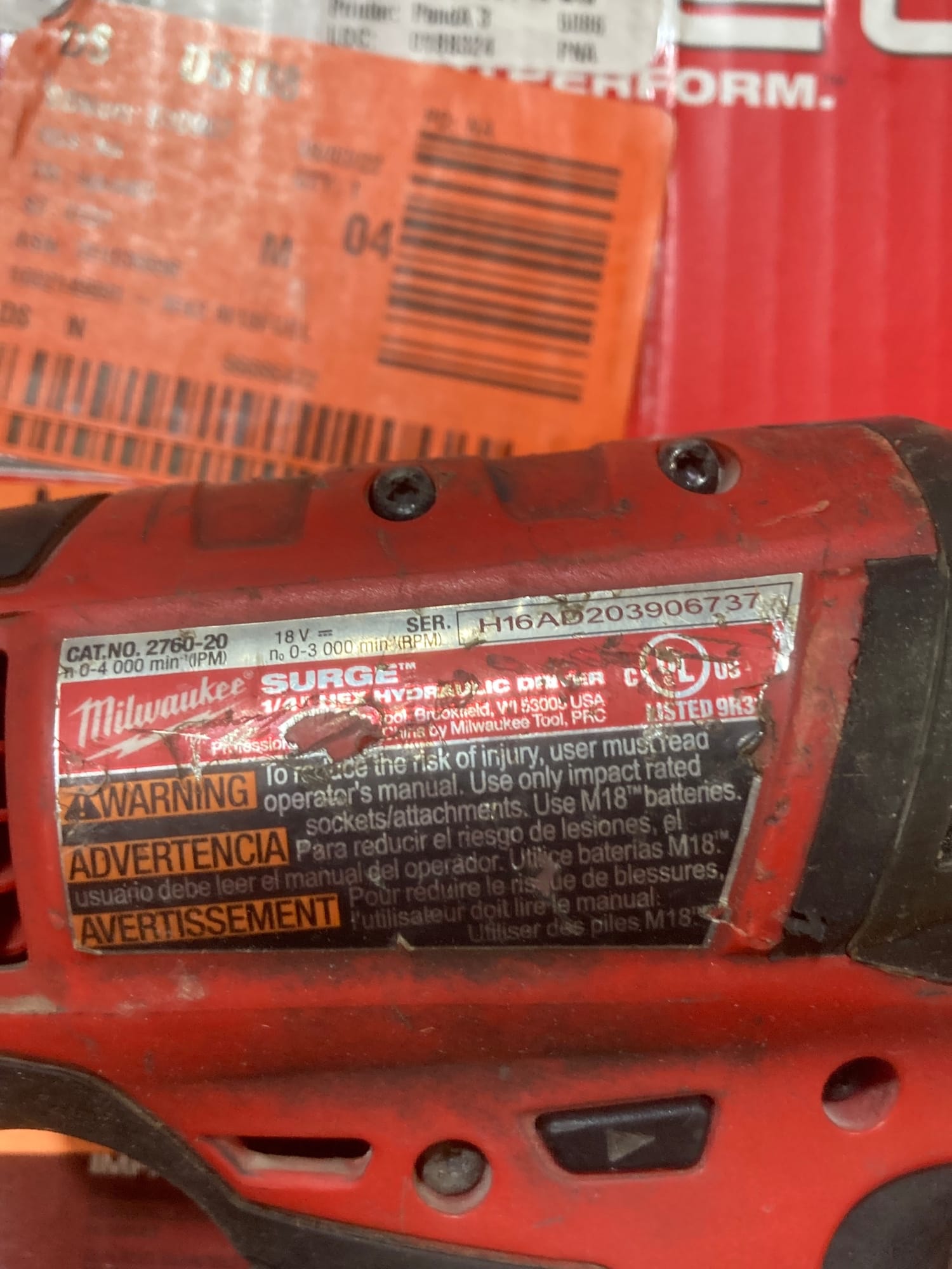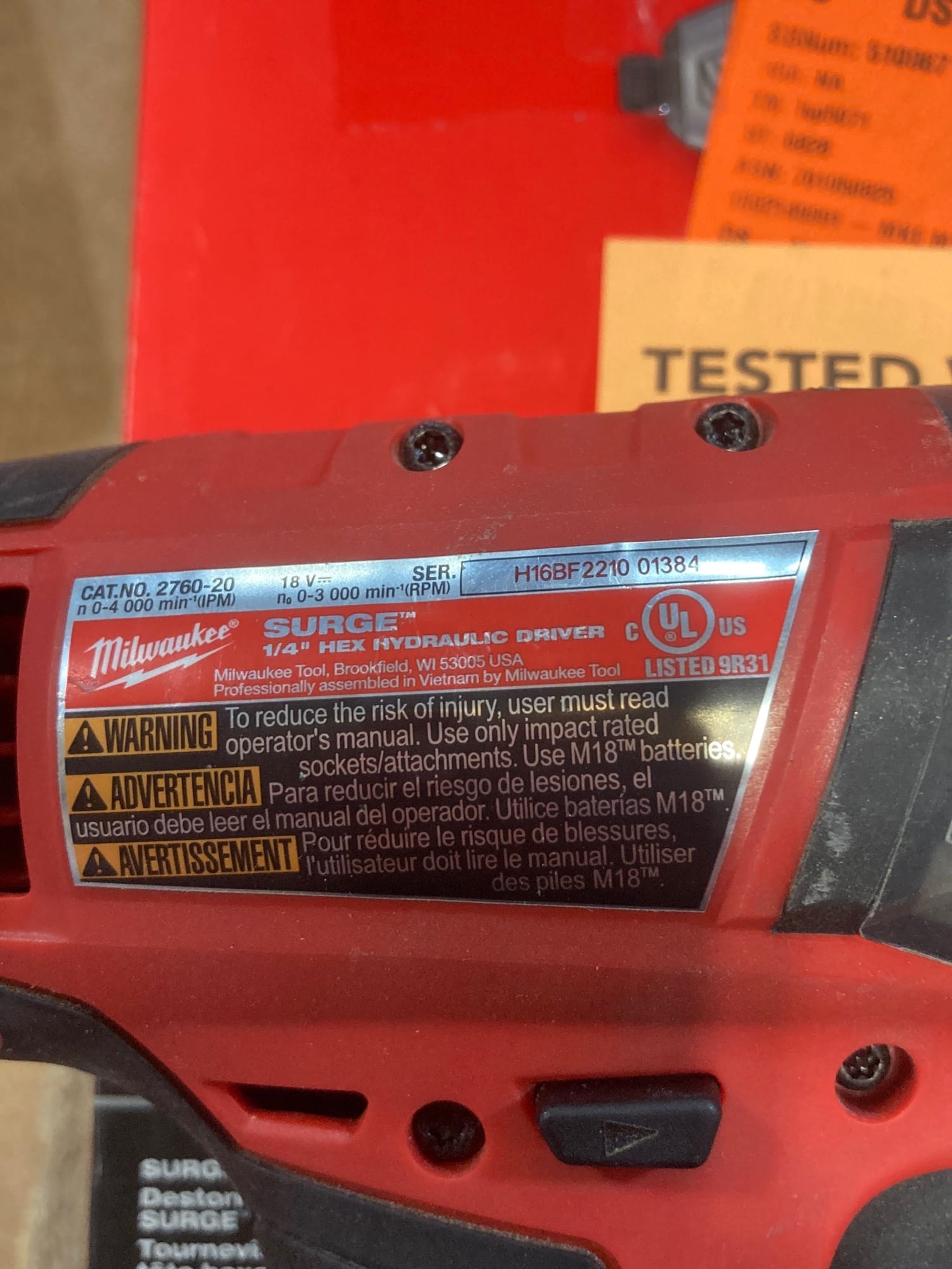 501 Milwaukee M18 Surge 1/4” Hydraulic Driver Tool Only