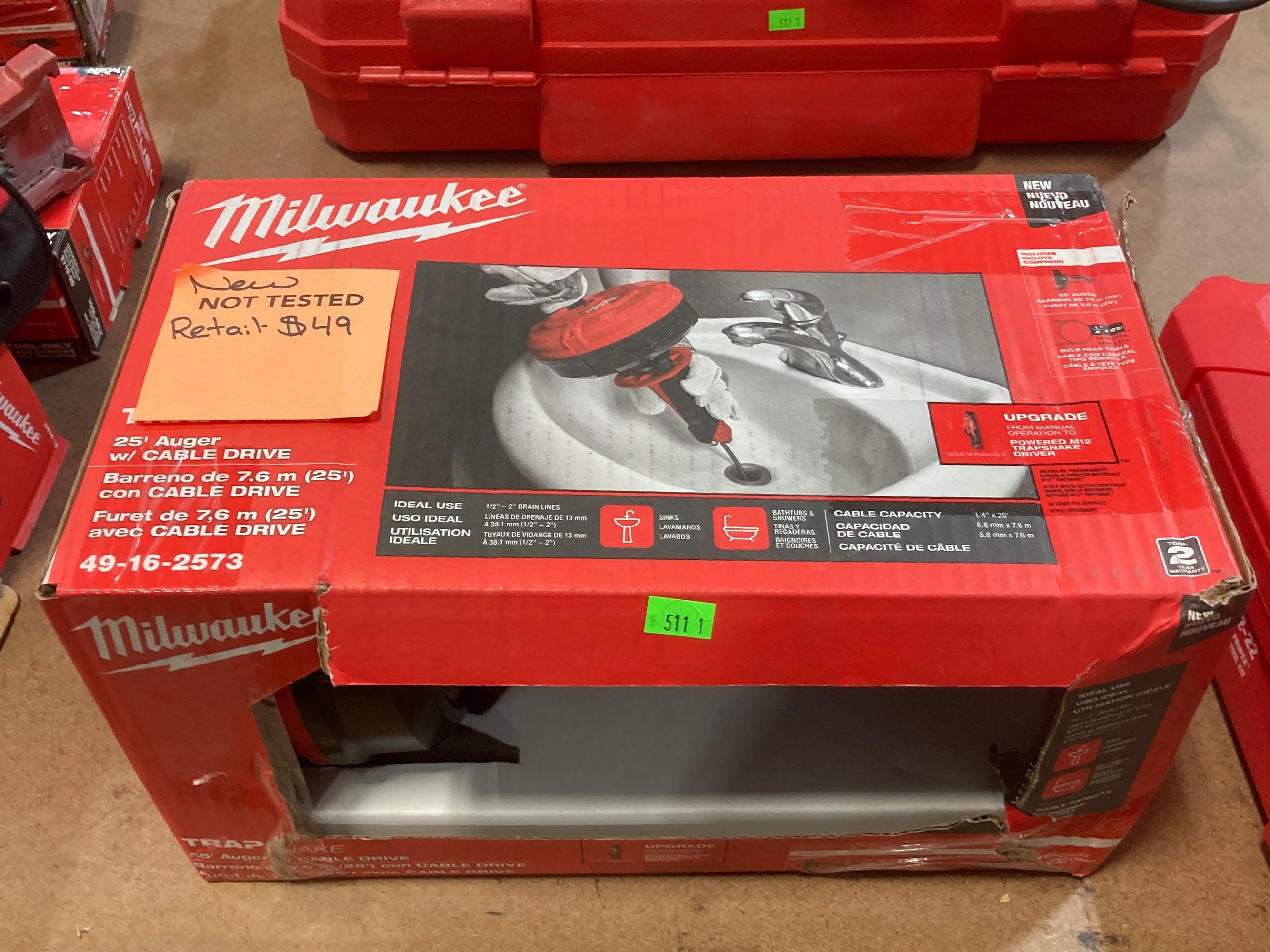 511 Milwaukee 25’ Trap Snake Auger Drain Cleaning kit