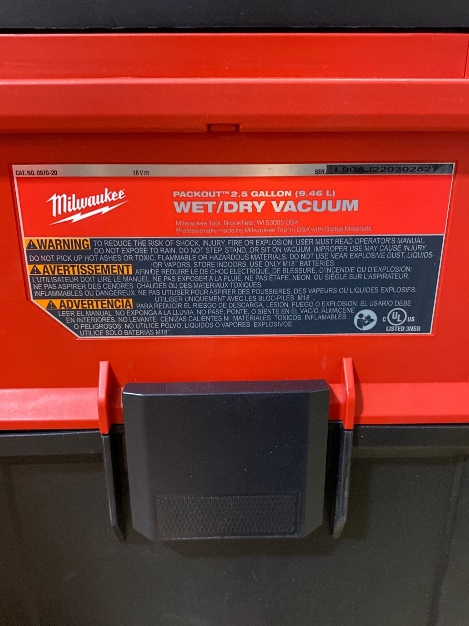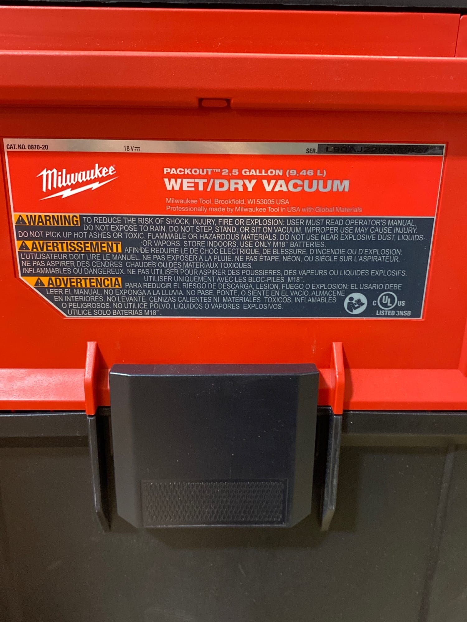 149 Milwaukee M18 Model:0970-20 Packout 2.5gal Wet/Dry Vacuum, tool only