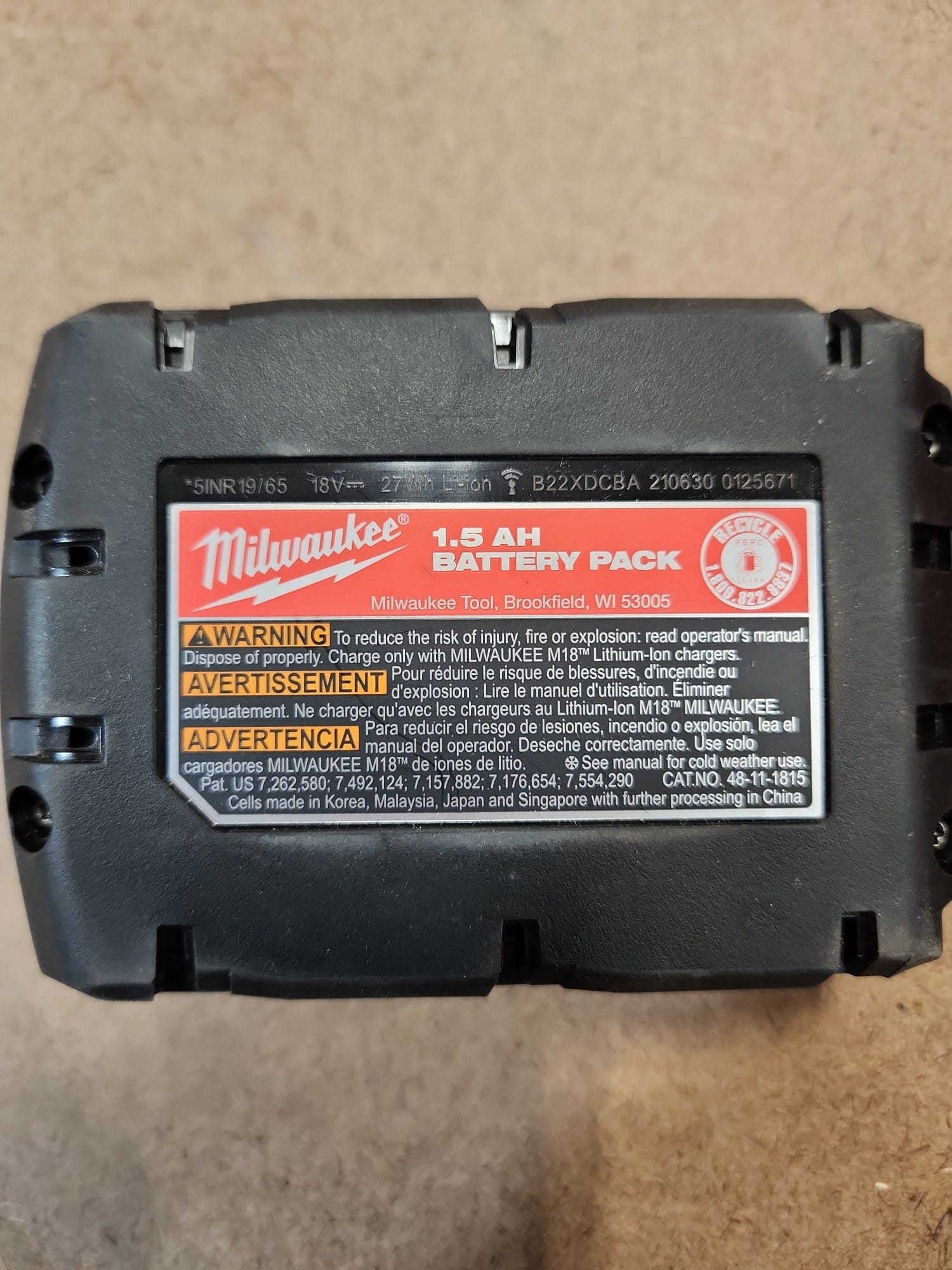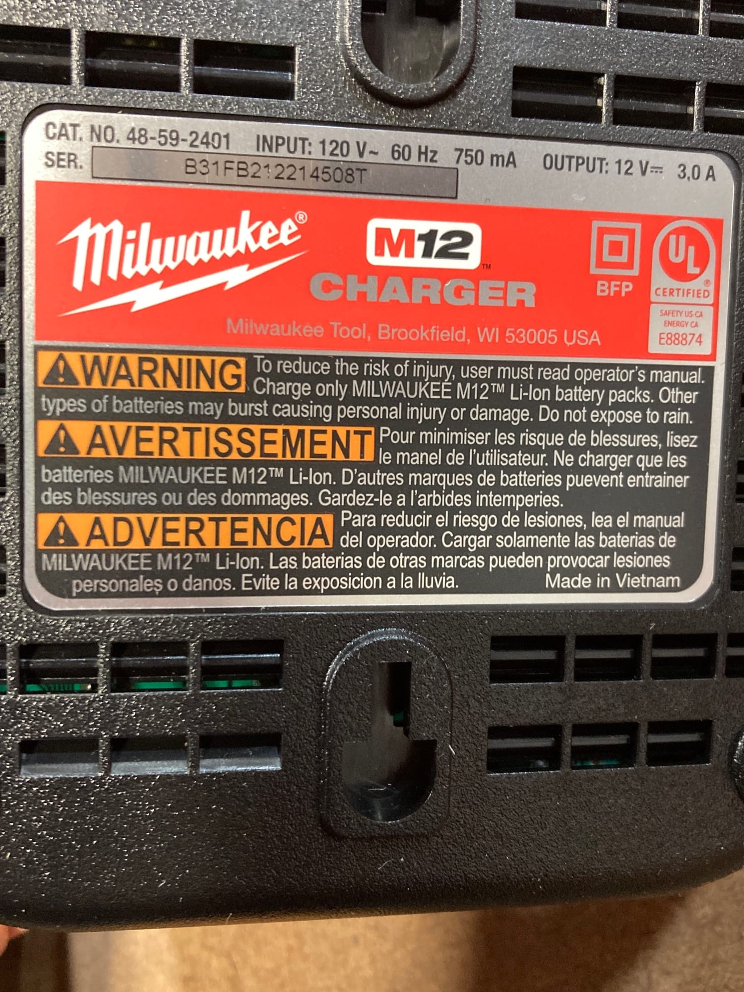 151 Milwaukee M12 Charger with Milwaukee M12 1.5ah Battery
