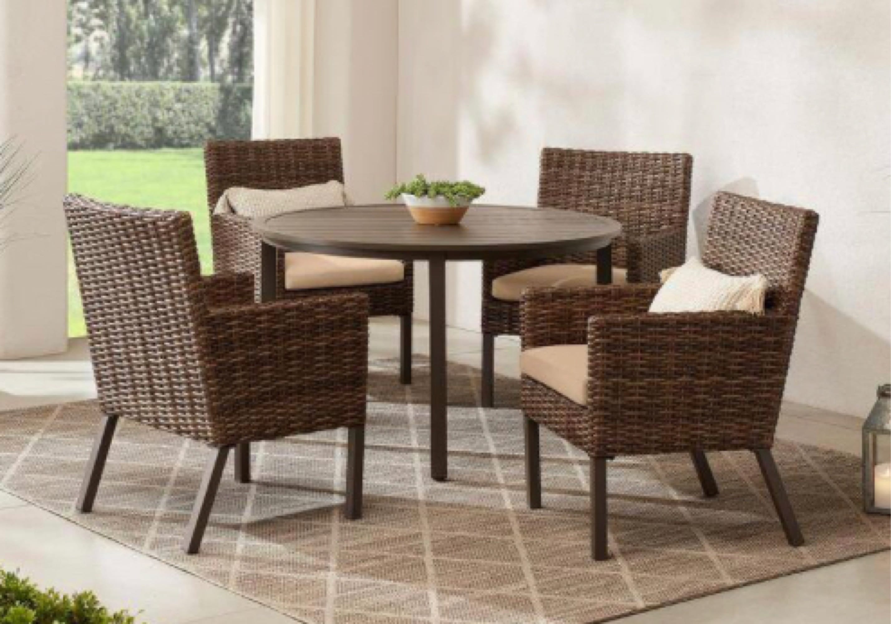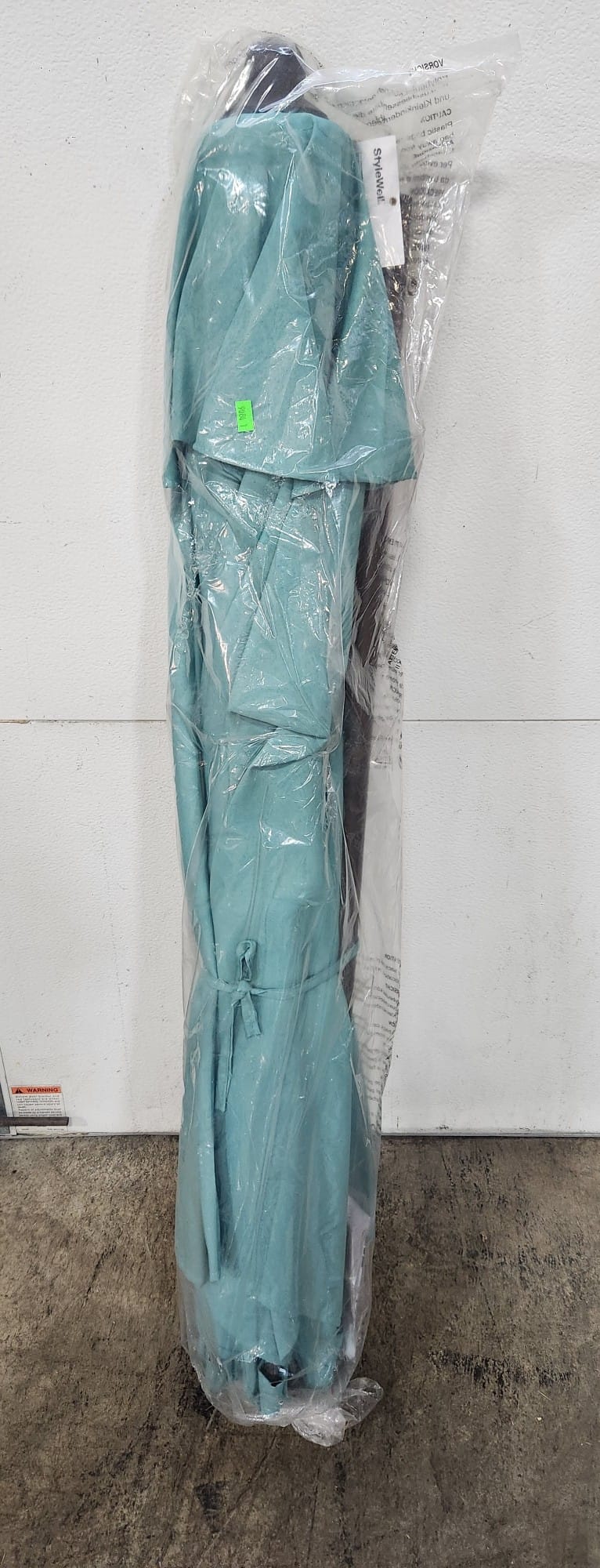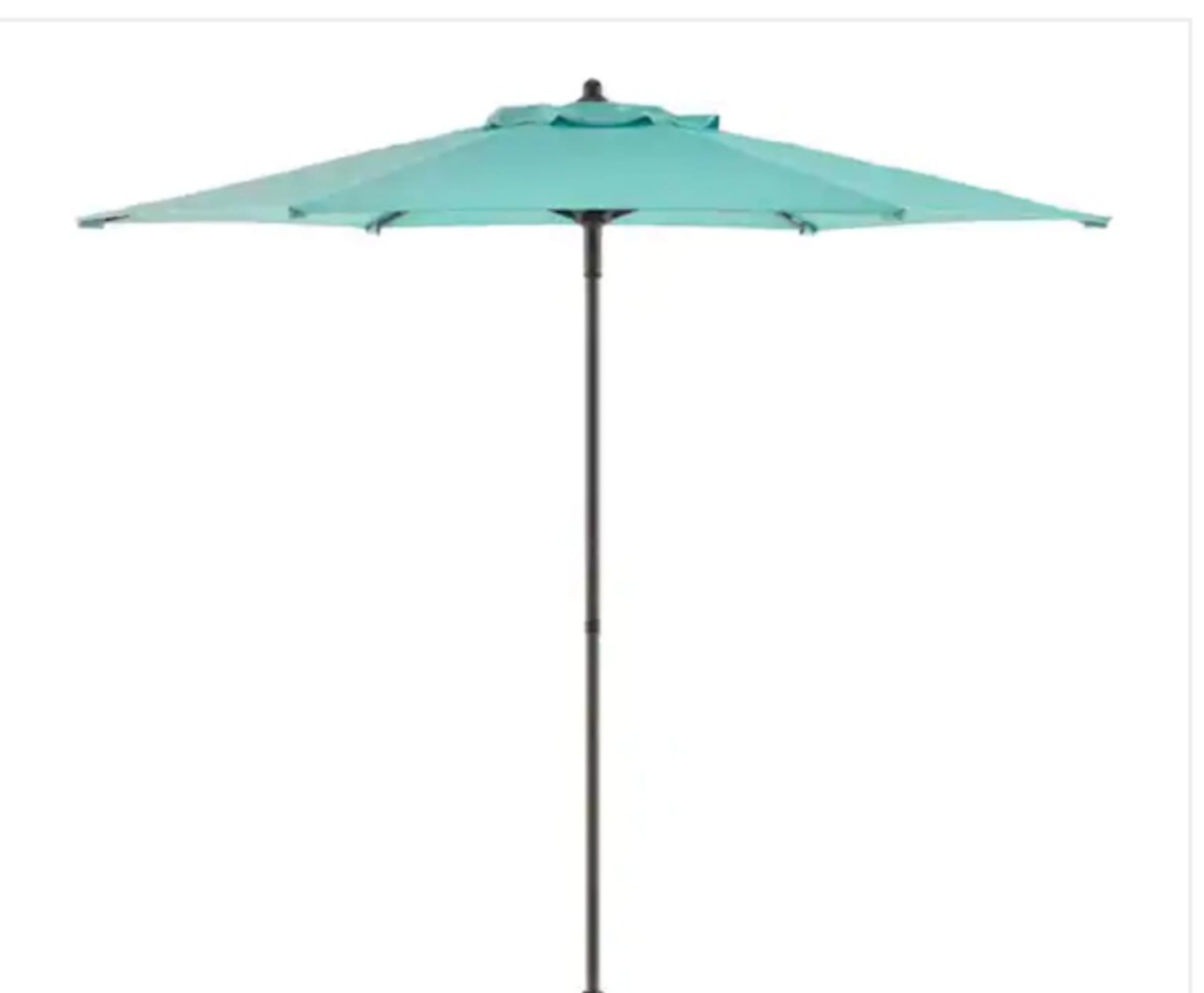 9084 "StyleWell 7.5 ft. Steel Market Outdoor Patio Umbrella in Haze Teal Blue"