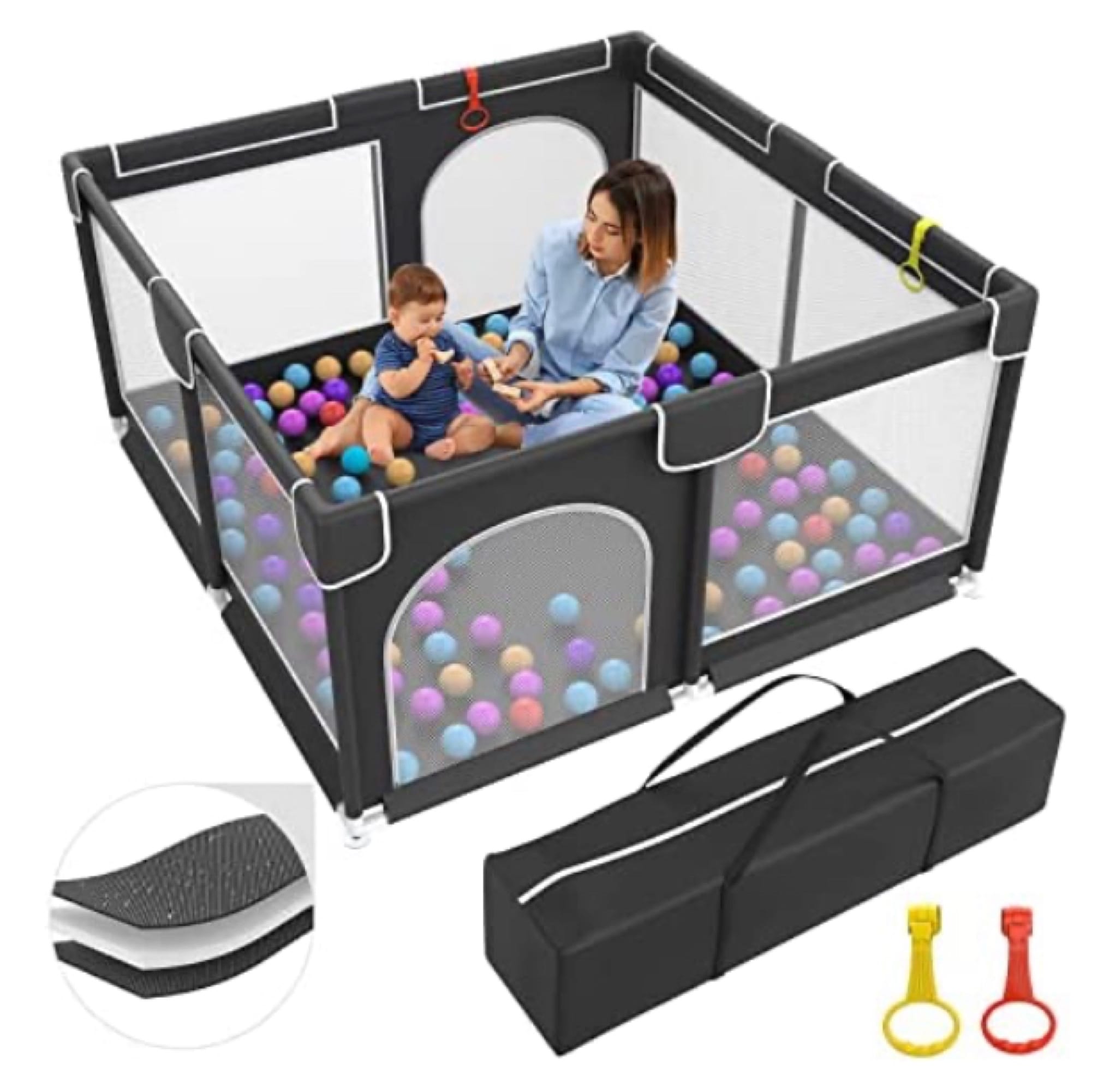 9080 TODALE Baby Playpen for Toddler, Large Baby Play Yard, Safe No Gaps Playpen for Babies,Baby Gate Playpen(Black,50”×50”)