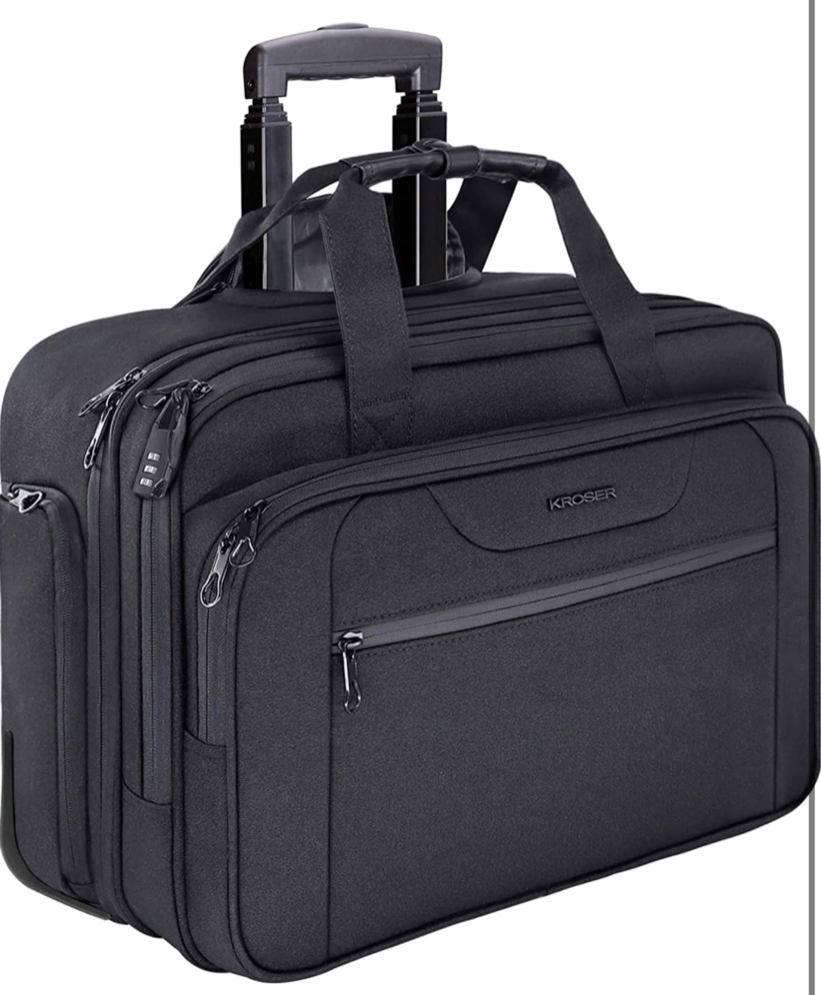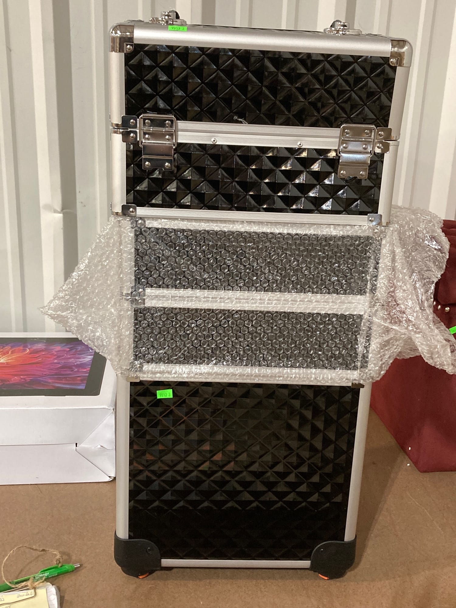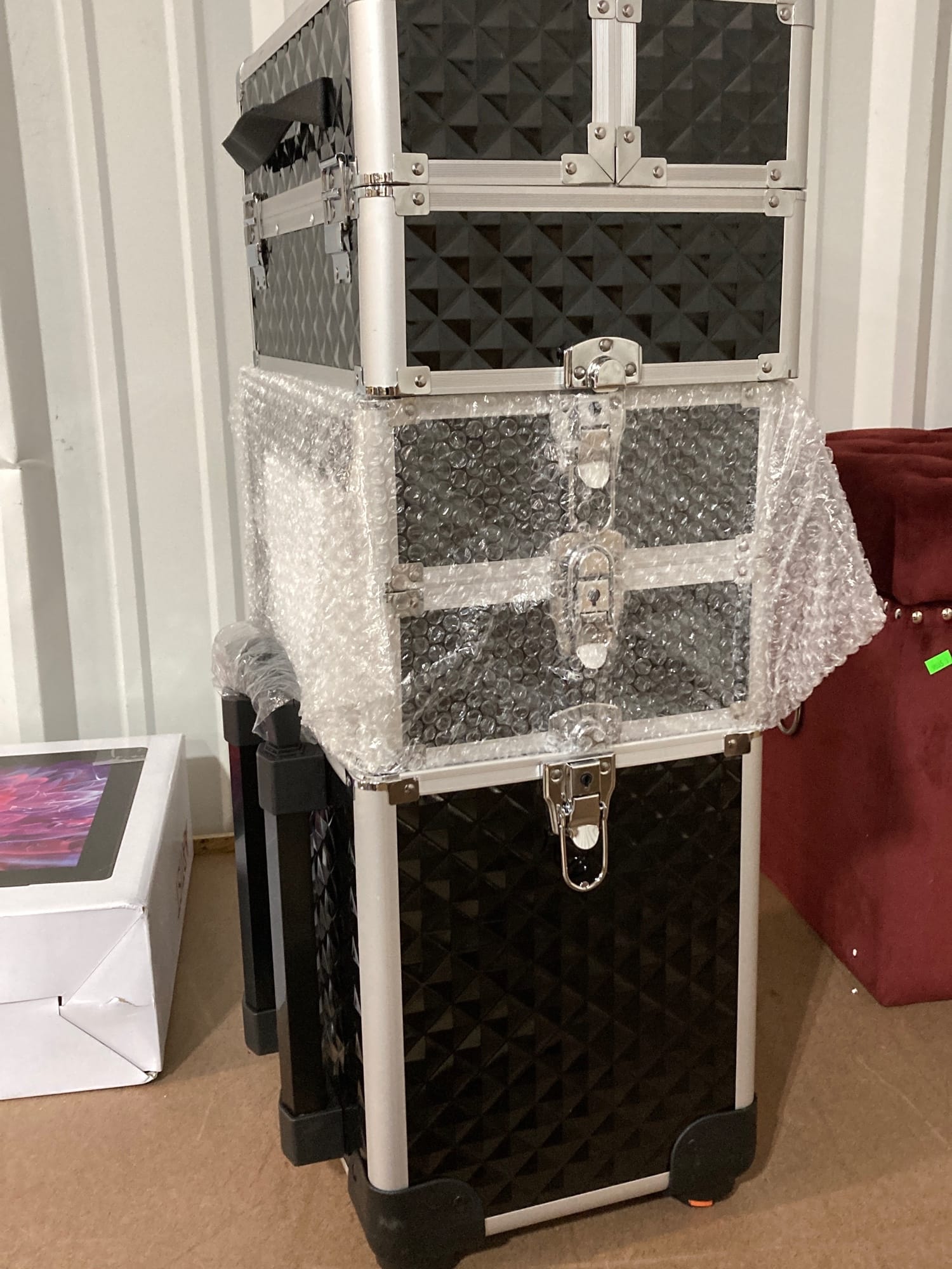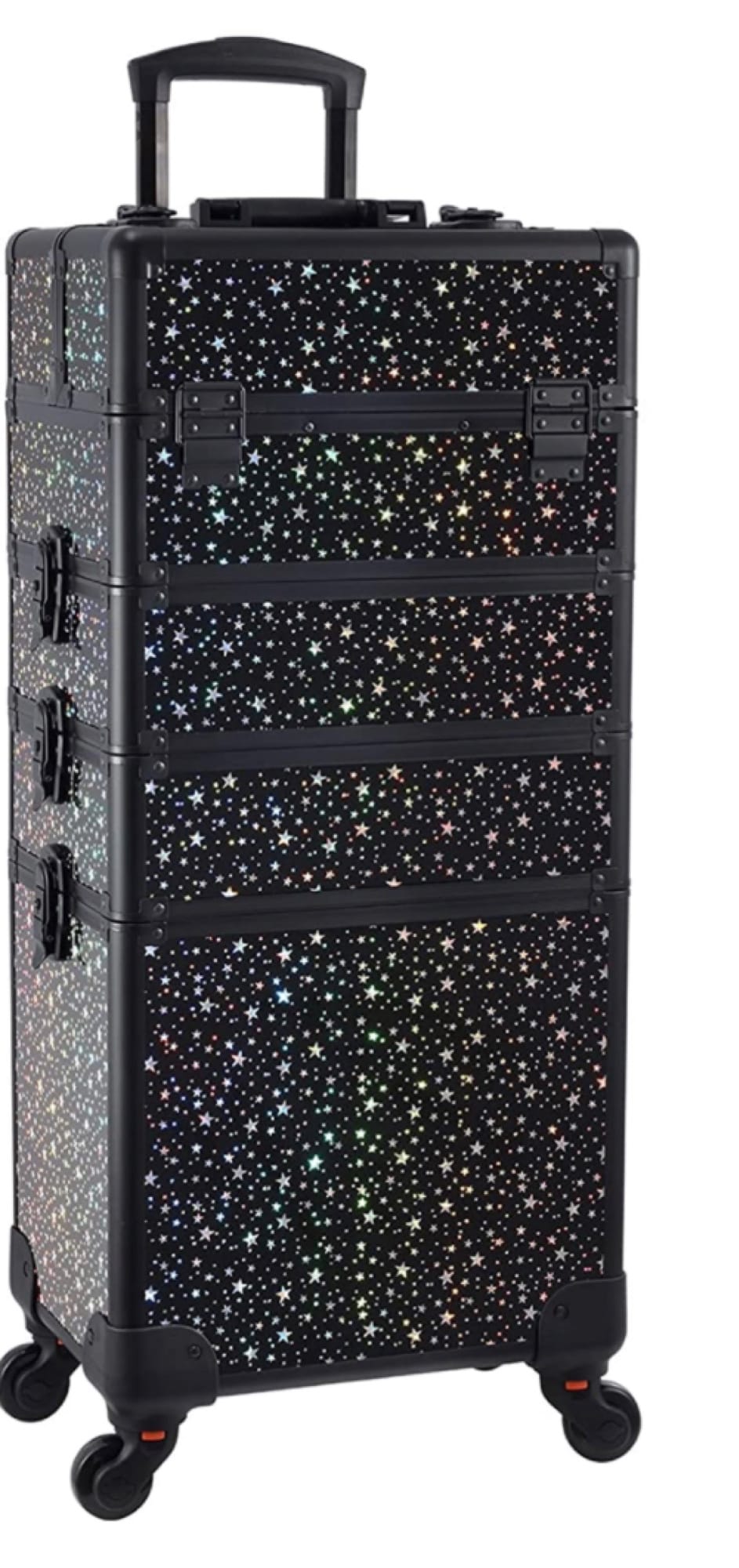 9053 Frenessa 3 in 1 Rolling Makeup Train Case Professional Cosmetic Trolley Large Storage with Keys Swivel Wheels Salon Barber Case Traveling Cart Trunk for Make Up Hairstylists Nail Tech, Vintage Black,Wheels Missing