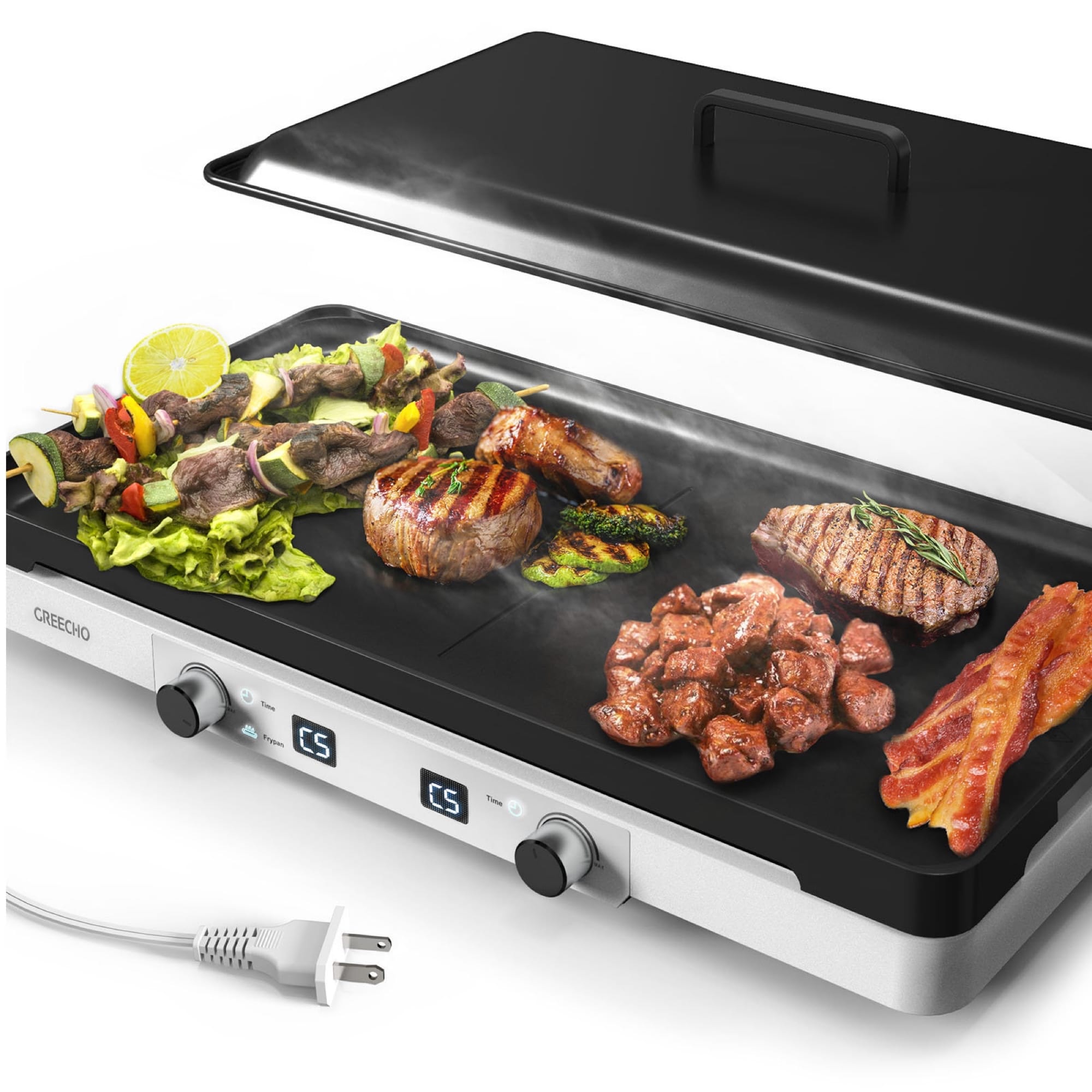 9045 Hot Plate, Techwood 1800W Portable Electric Stove for Cooking Countertop Dual Burner with Adjustable Temperature & Stay Cool Handles, 7.5” Cooktop for Home/RV/Camp, Compatible for All Cookwares, Silver