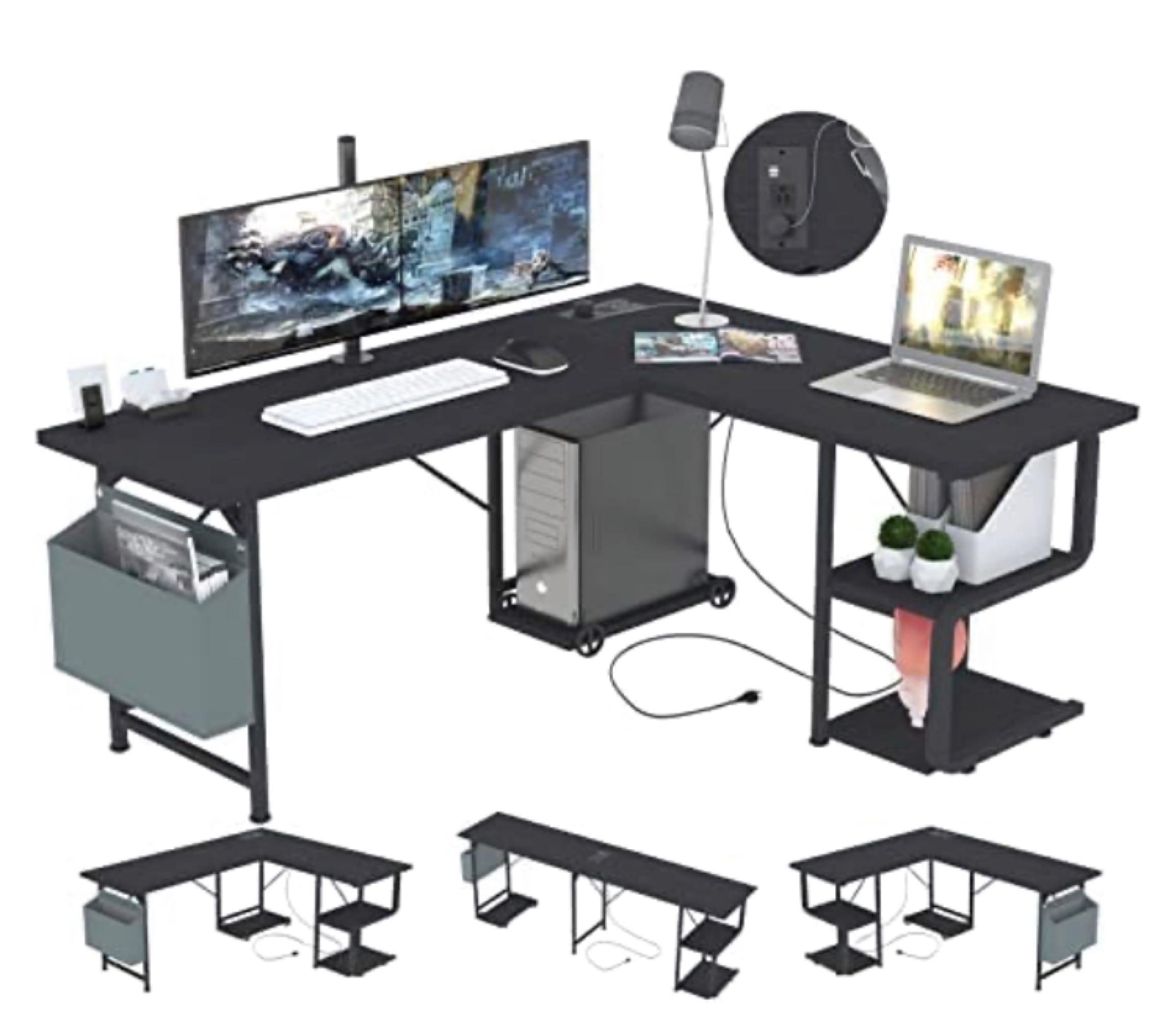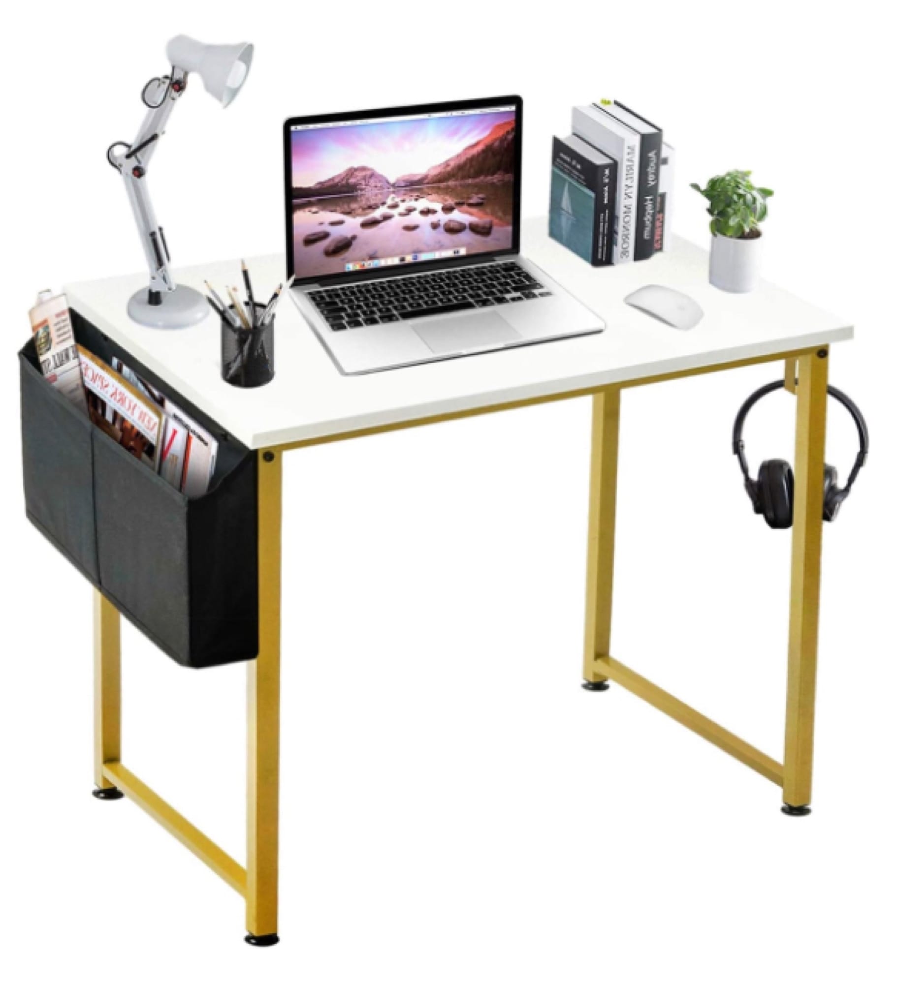 9042 LUFEIYA Small Computer Desk White Writing Table for Home Office Small Spaces 31 Inch Modern Student Study Laptop PC Desks with Gold Legs Storage Bag Headphone Hook,White Gold