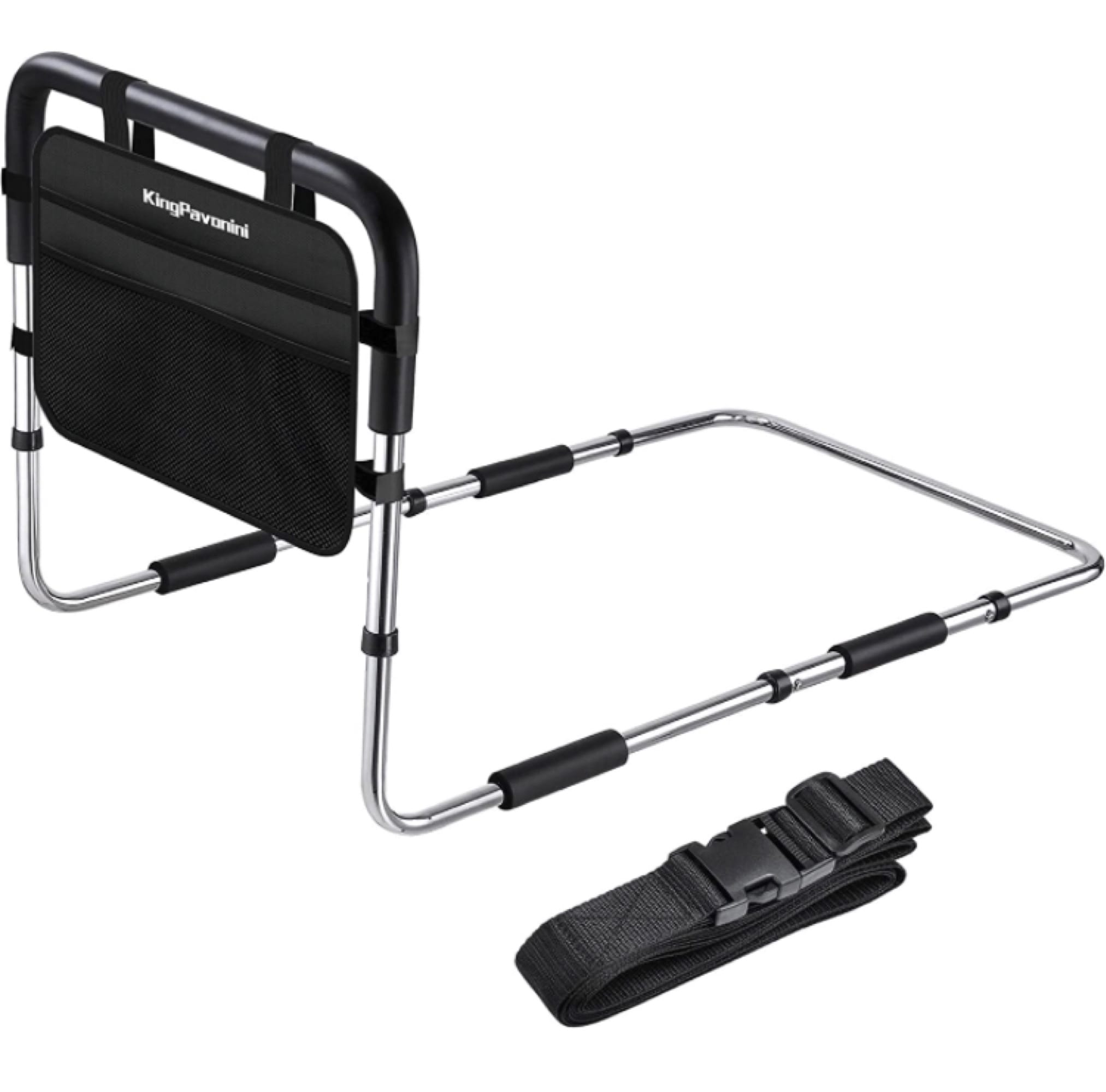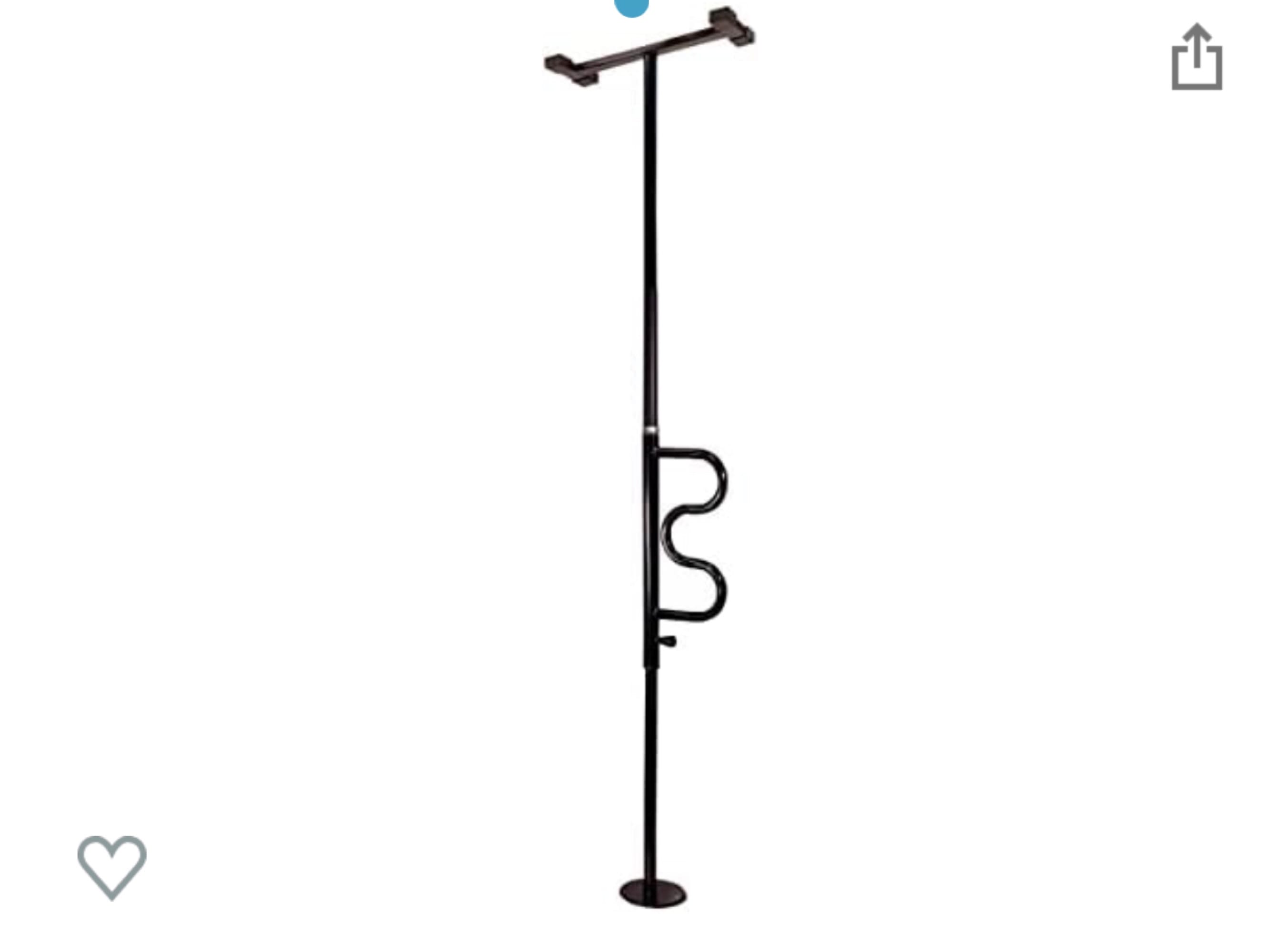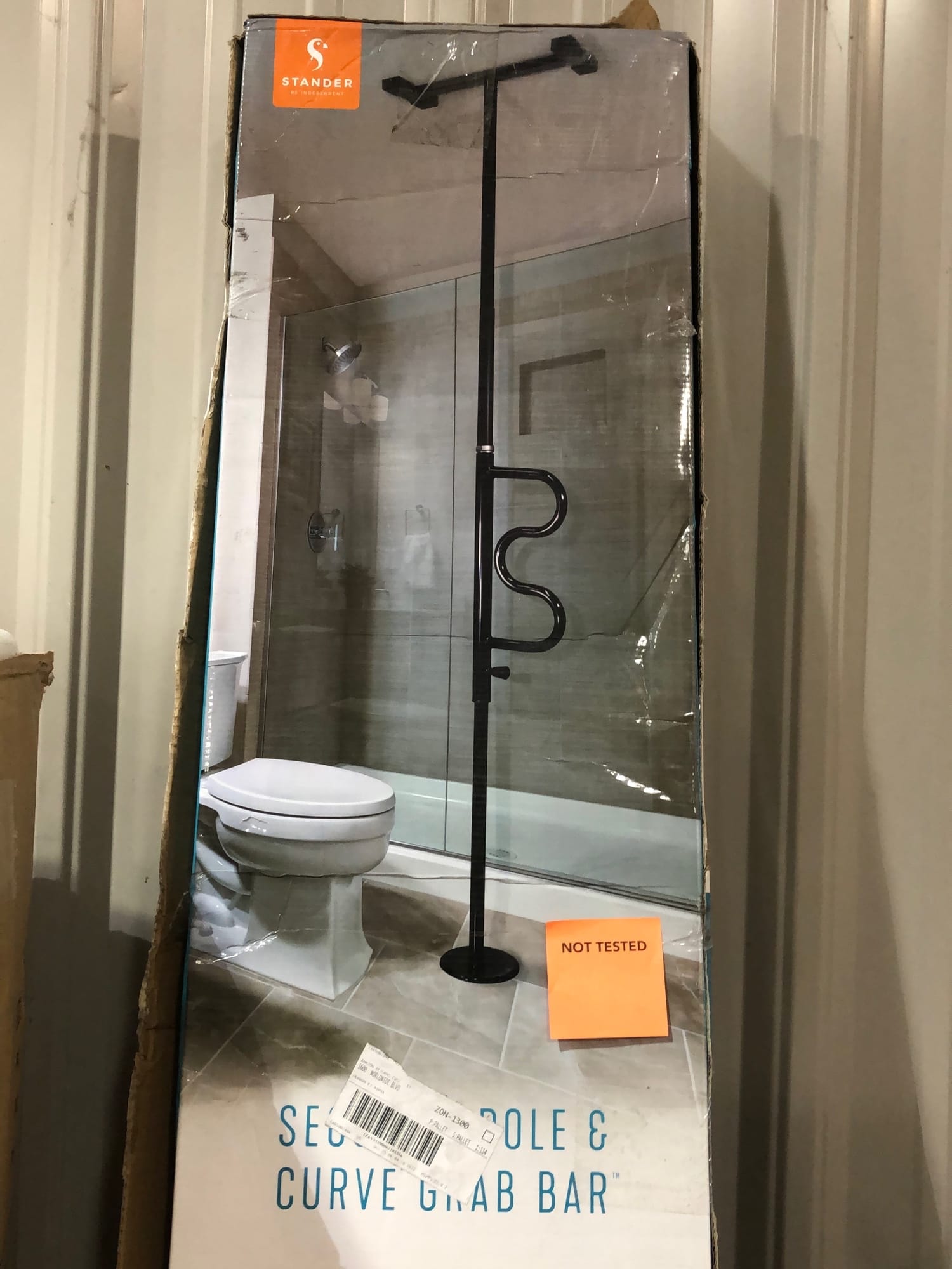 9517 Stander Security Pole and Curve Grab Bar, Elderly Tension Mounted Floor to Ceiling Transfer Pole, Bathroom Safety Assist and Stability Rail, Metallic Black