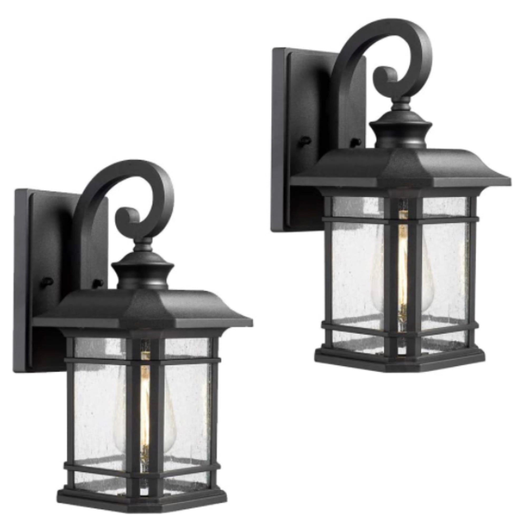 9047 Emliviar Outdoor Wall Lanterns 2 Pack, 1-Light Exterior Wall Mount Light, Black Finish with Clear Seedy Glass, 2084B-2 BK