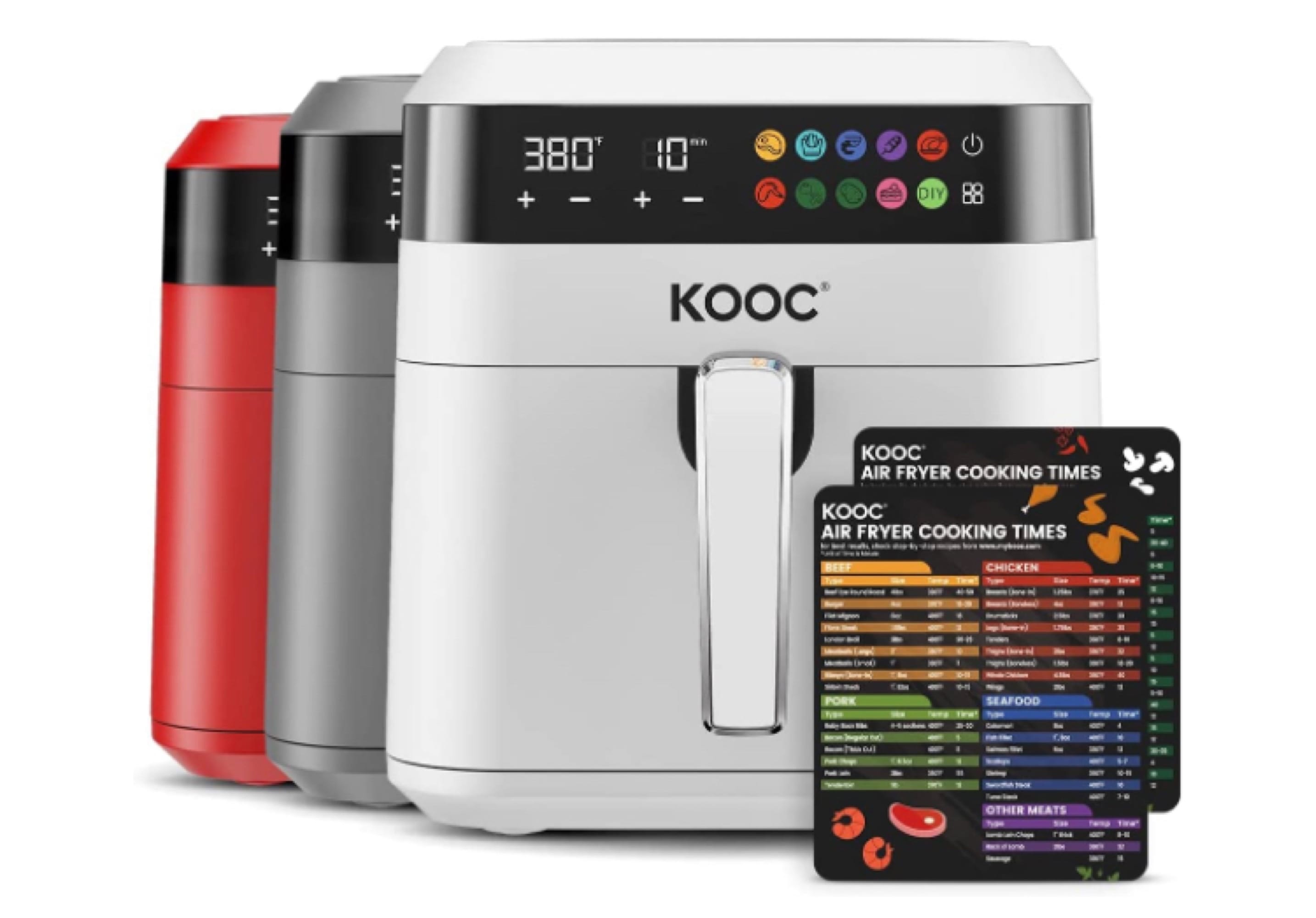 9048 KOOC XL Large Air Fryer, 6.5 Quart Electric Air Fryer Oven, Free Cheat Sheet for Quick Reference, 1700W, LED Touch Digital Screen, 10 in 1, Customized Temp/Time, Nonstick Basket, White