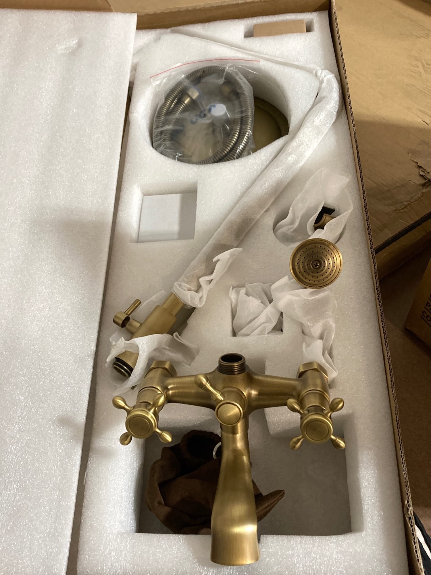 9059 3-Handle Claw Foot Freestanding Tub Faucet with Hand Shower in Brushed Gold