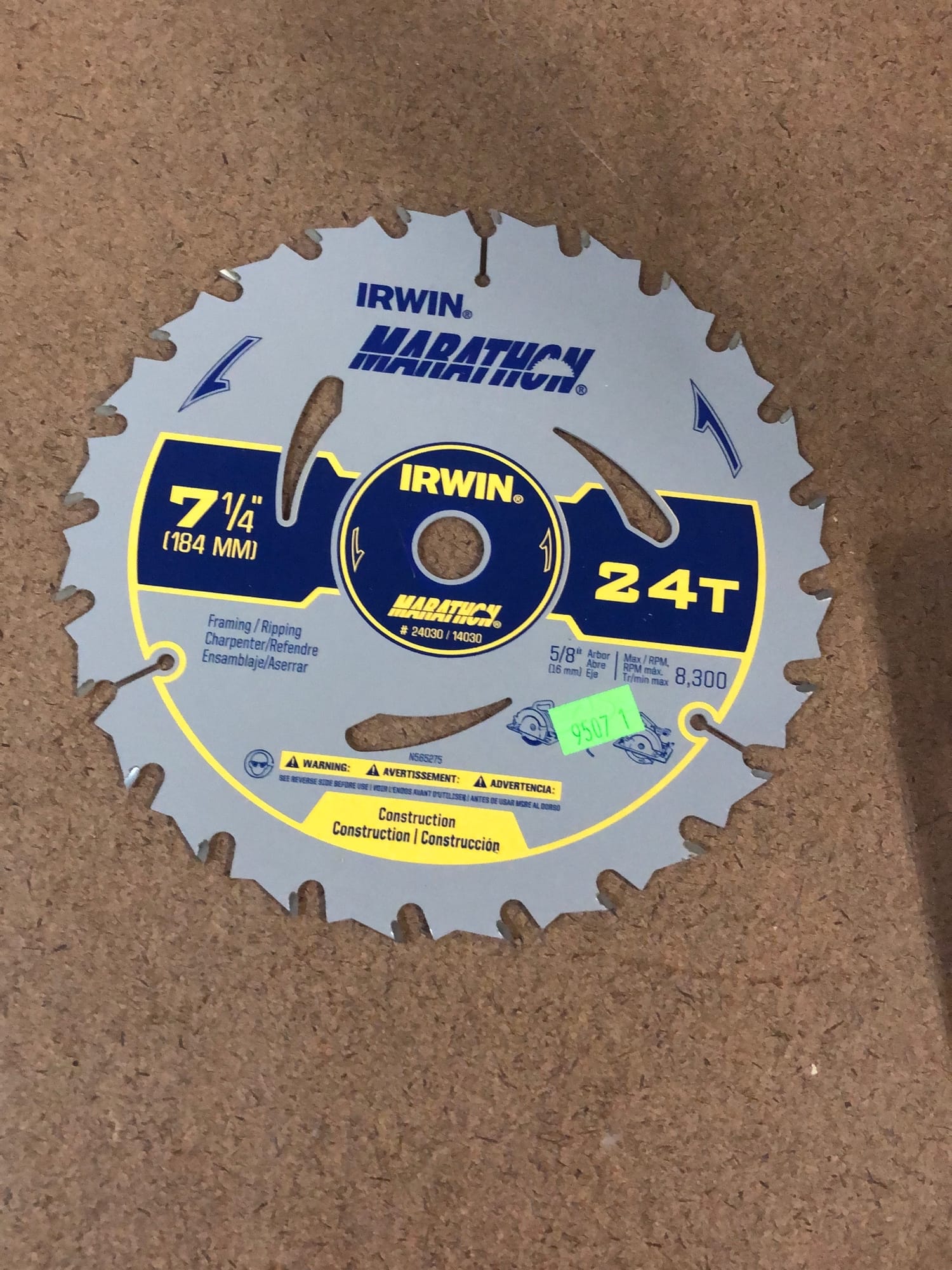 9509 Irwin marathon 7 1/4 framing ripping saw blade