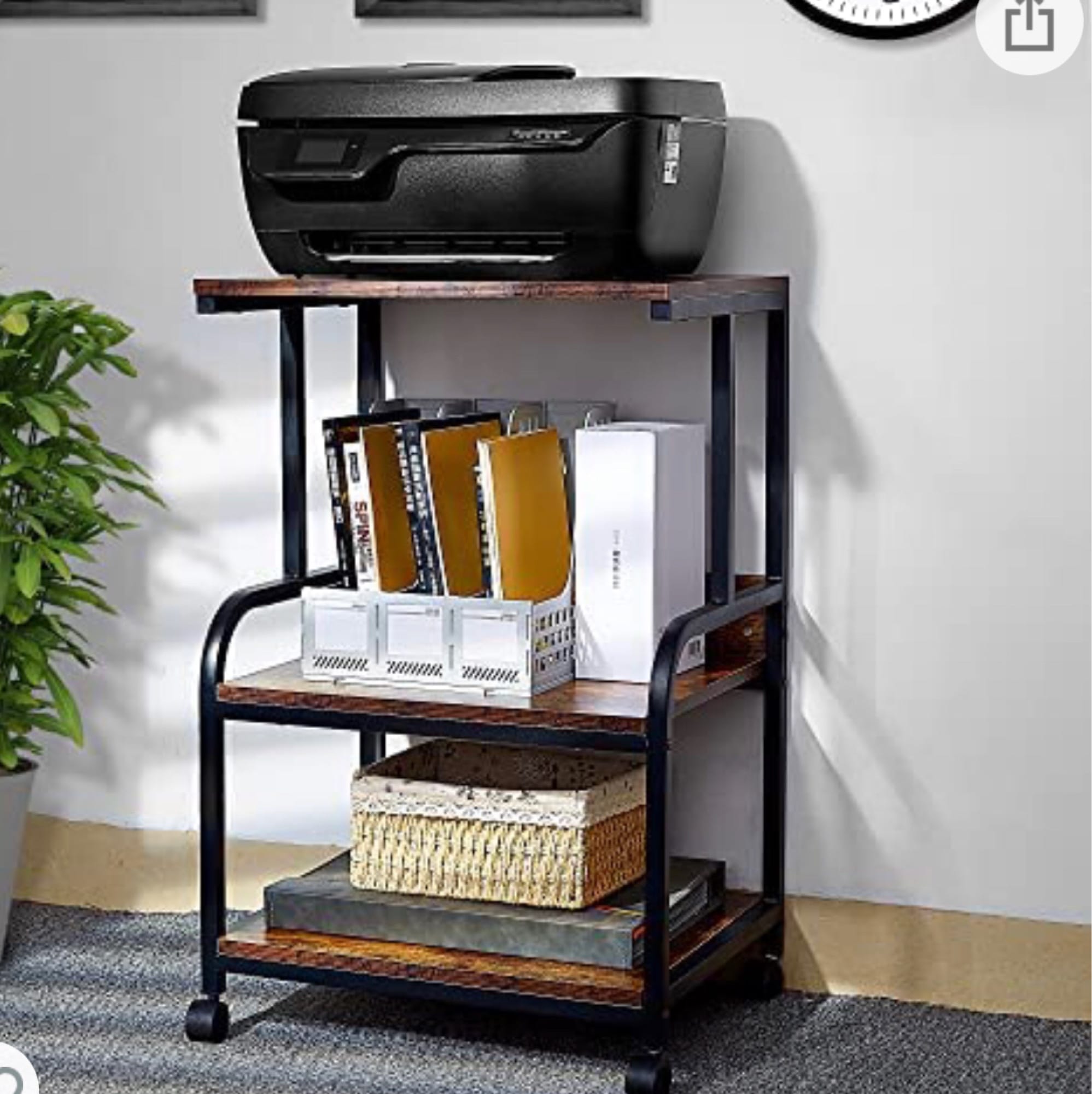 9515 3 Tier Printer Stand with Wheels Printer Desk, Multipurpose Office and Home Storage Rack, Removable and Fixed Printer Stand for Fax Machines, Scanners, Rolling Cart Stand Vintage Brown