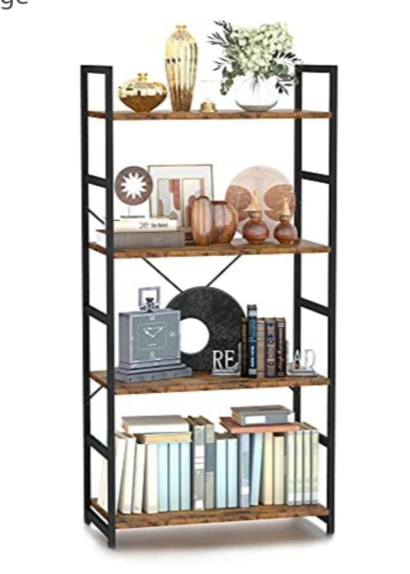 9518 NUMENN 4 Tier Bookshelf, Tall Bookcase Shelf Storage Organizer, Modern Book Shelf for Bedroom, Living Room and Home Office, Vintage