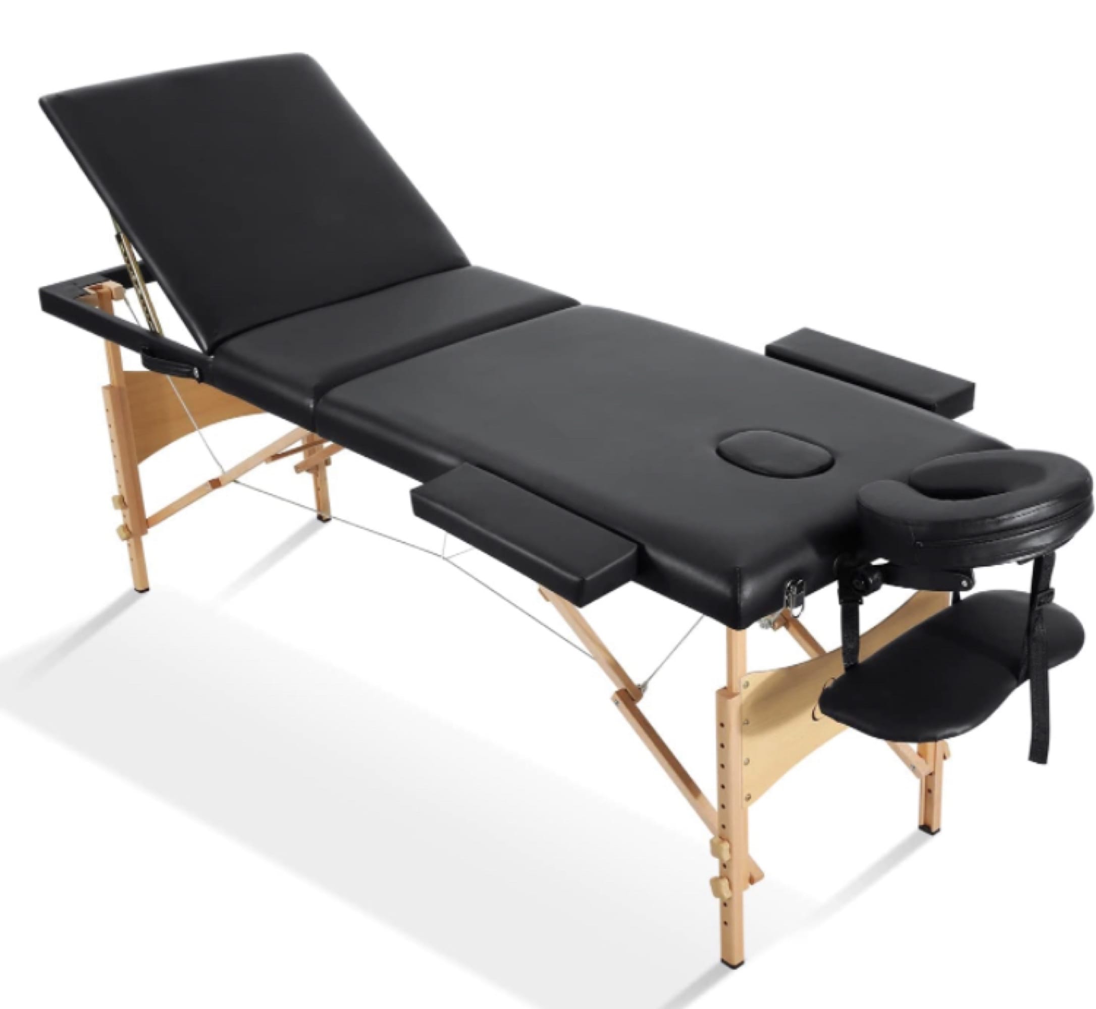9526 Careboda Professional Massage Table Portable Massage Bed, 3 Section Wooden Foldable Spa Salon Bed, Comes with Carrying Case & Full Accessories
