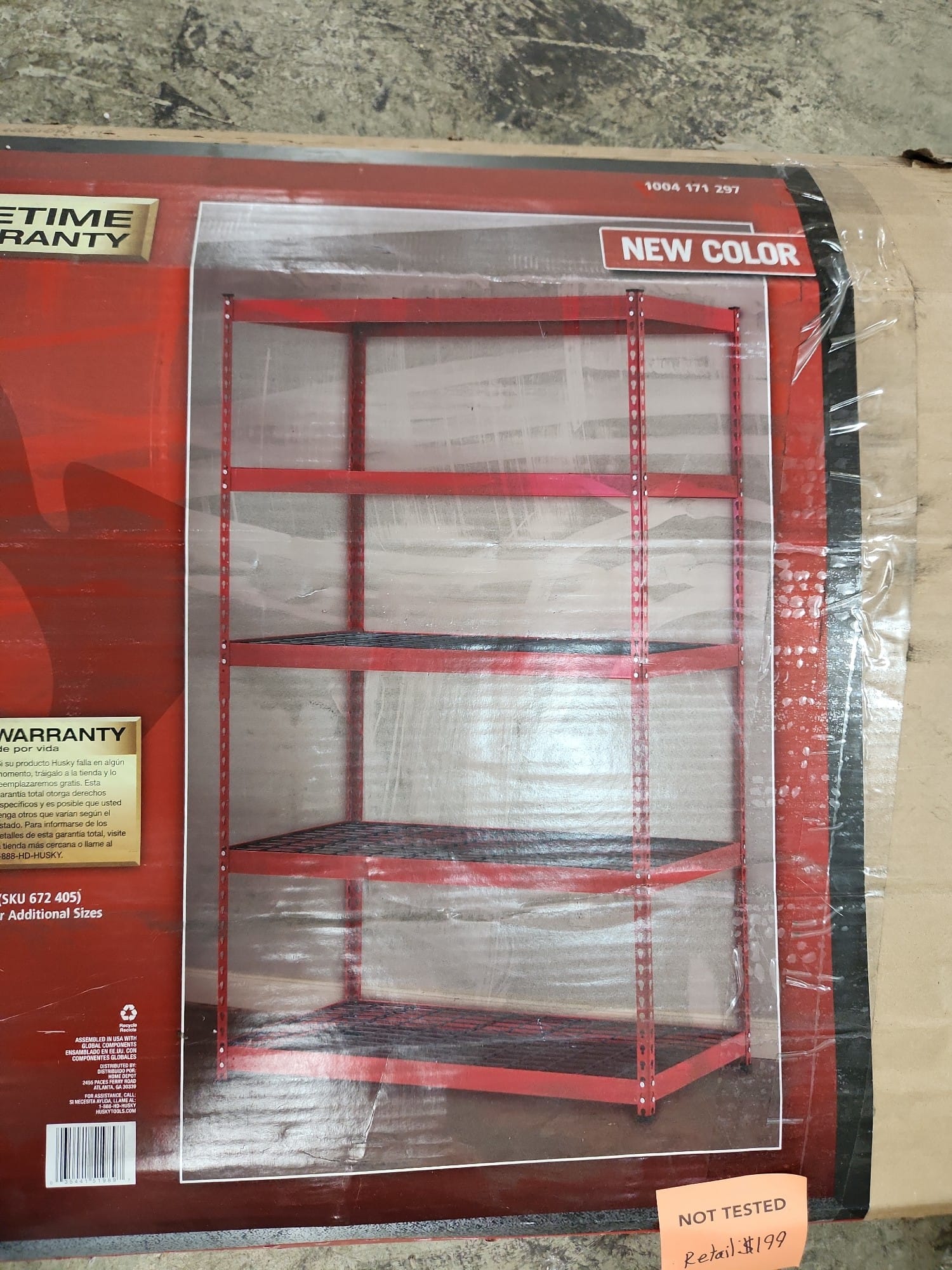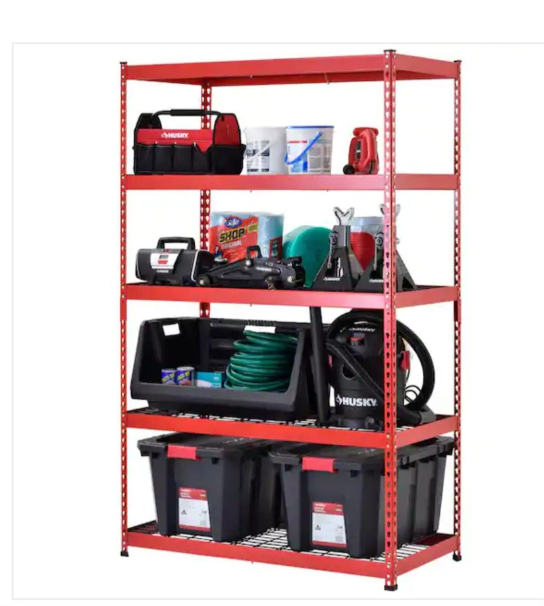 12001 "Husky 5-Tier Heavy Duty Steel Garage Storage Shelving Unit in Red (48 in. W x 78 in. H x 24 in. D)"